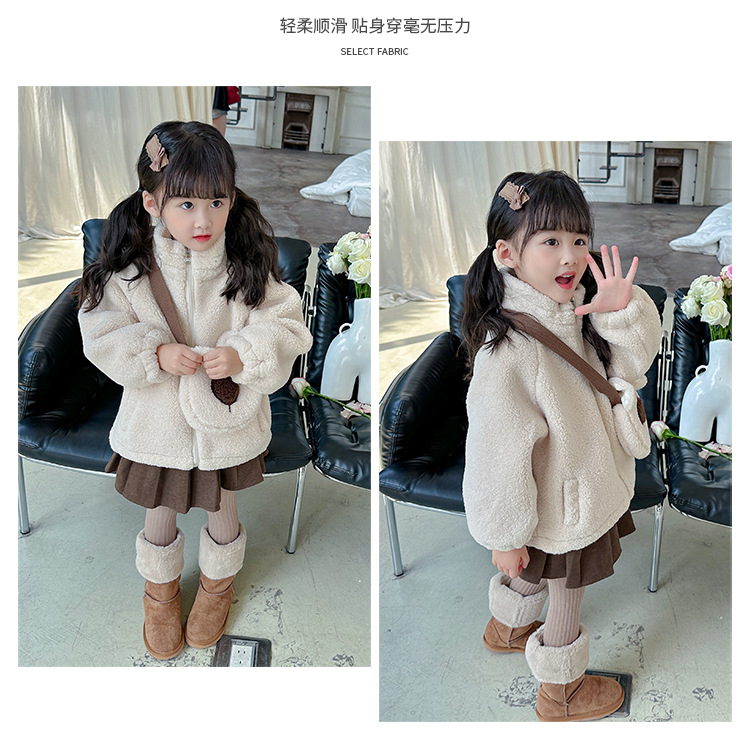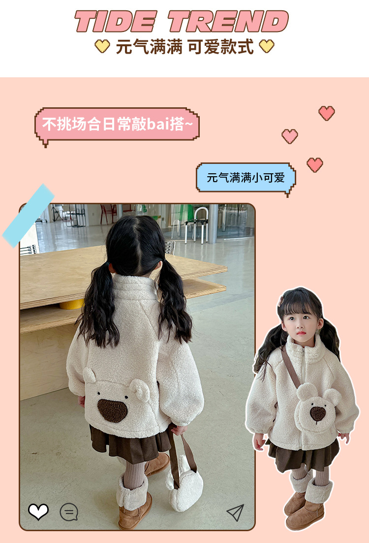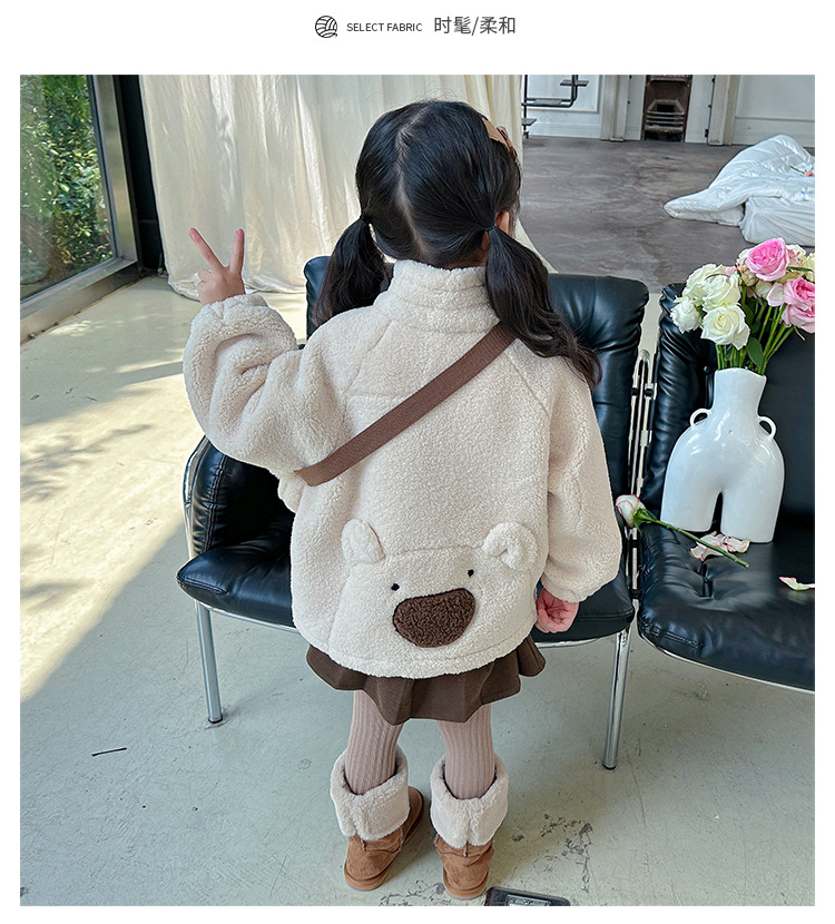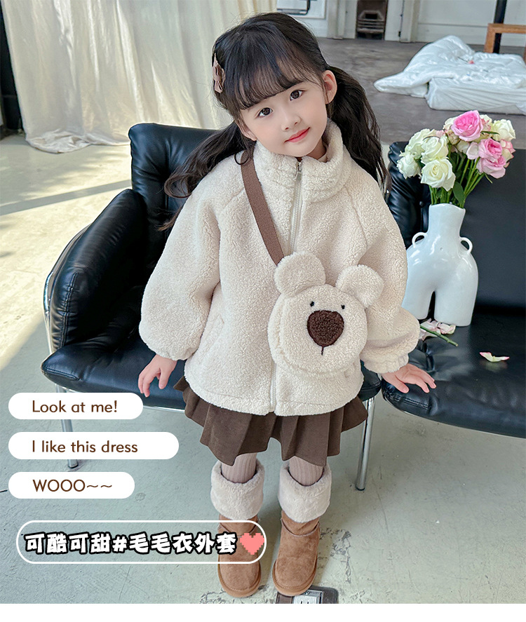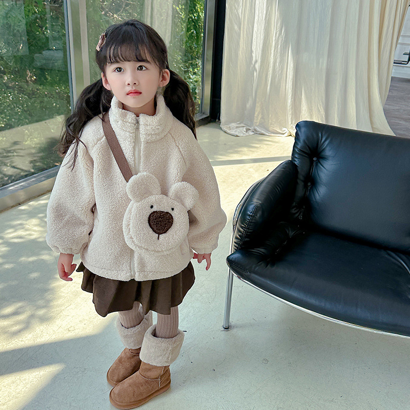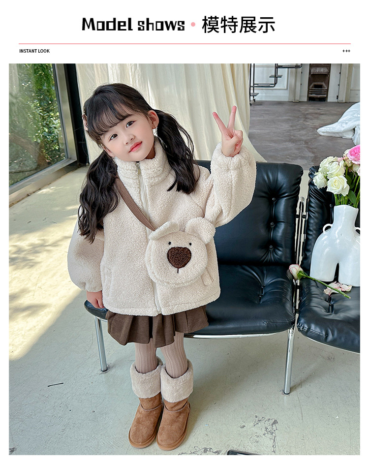 소녀 코트 2024 가을과 겨울 새로운 패션 작은 소녀 다시 곰 가방 마오 마오 기모 두꺼운 코트스토어 가기