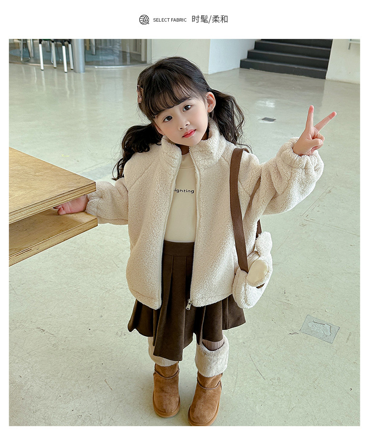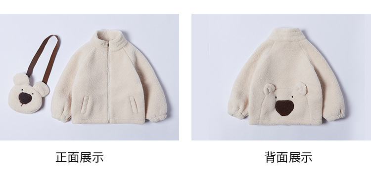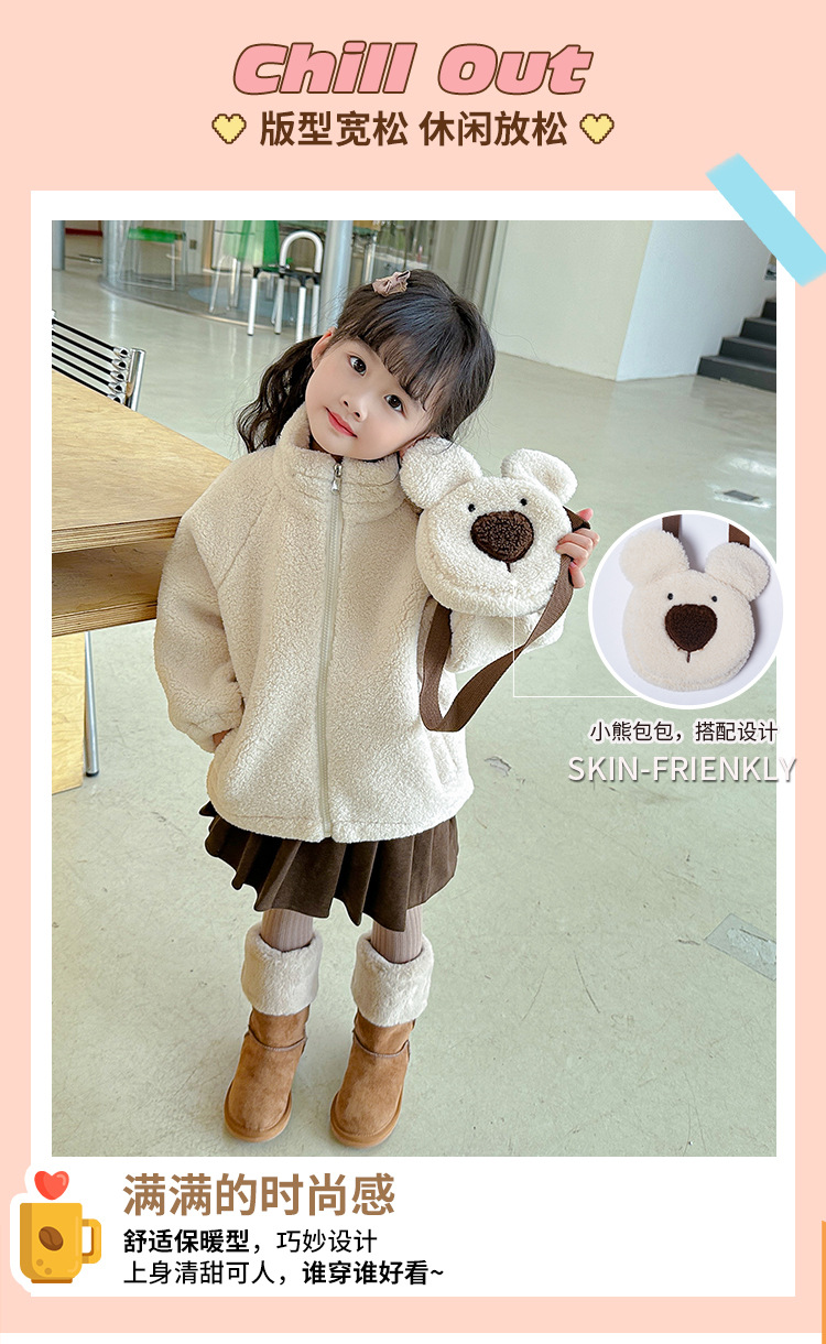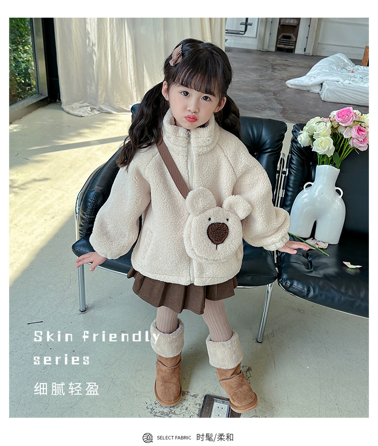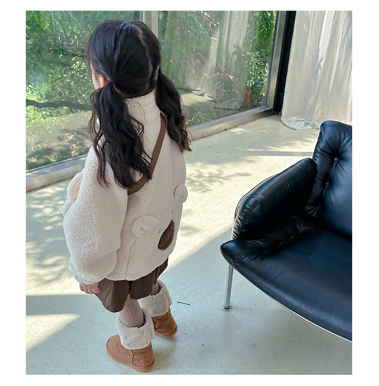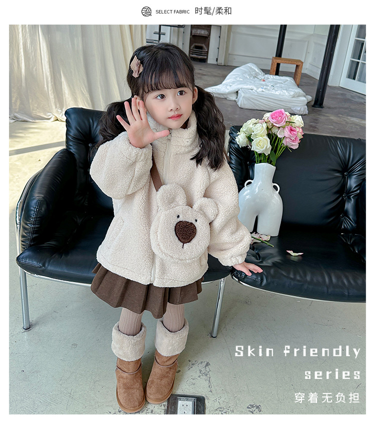 소녀 코트 2024 가을과 겨울 새로운 패션 작은 소녀 다시 곰 가방 마오 마오 기모 두꺼운 코트스토어 가기