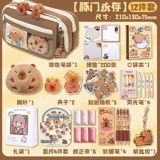 • 9겹 커피 필통 + 스티커 5개 + 브로치 1개 + 클립 2개 + 키체인 1개 + 젤펜 4개 + 스티커 메모 4개 + 수정테이프 6개 + 형광펜 4개 +