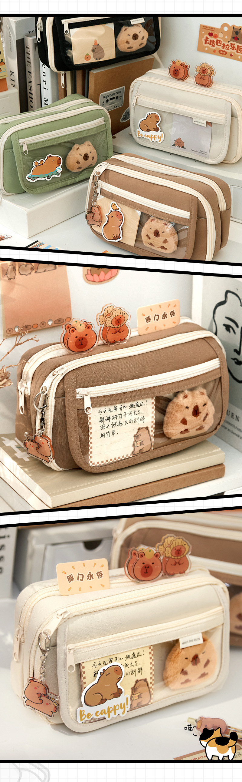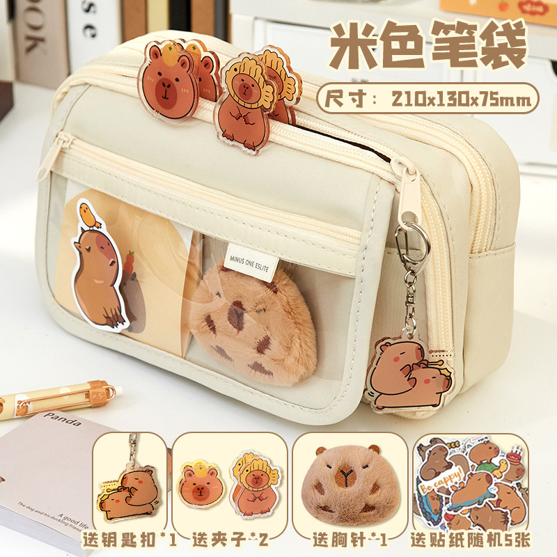 • 9겹 베이지 필통 + 스티커 5개 + 무료 카드 브로치