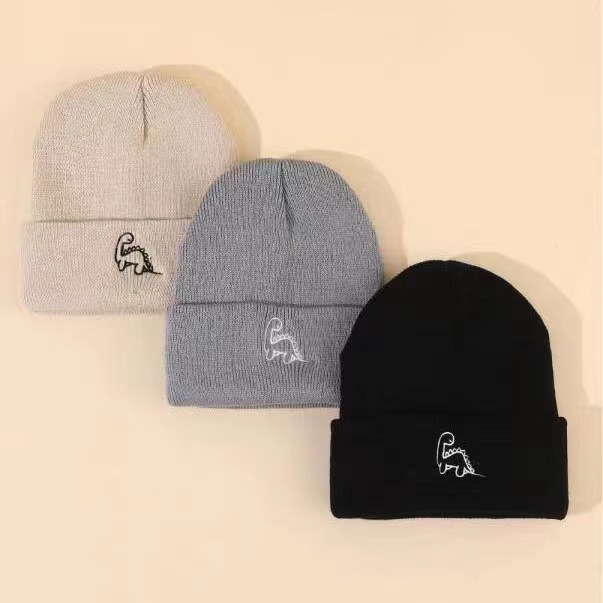 가을과 겨울 어린이 공룡 울 모자 아기 니트 모자 만화 아기 공룡 아기 귀 보호 모자 따뜻한 귀여운 모자