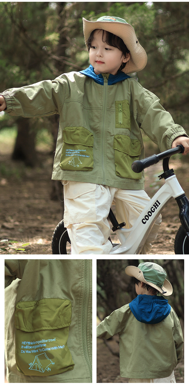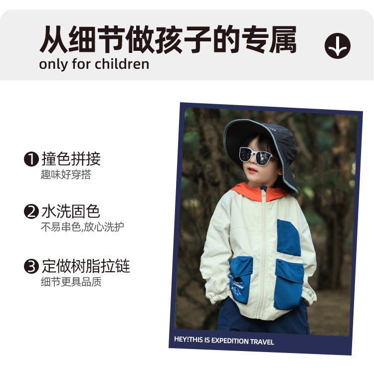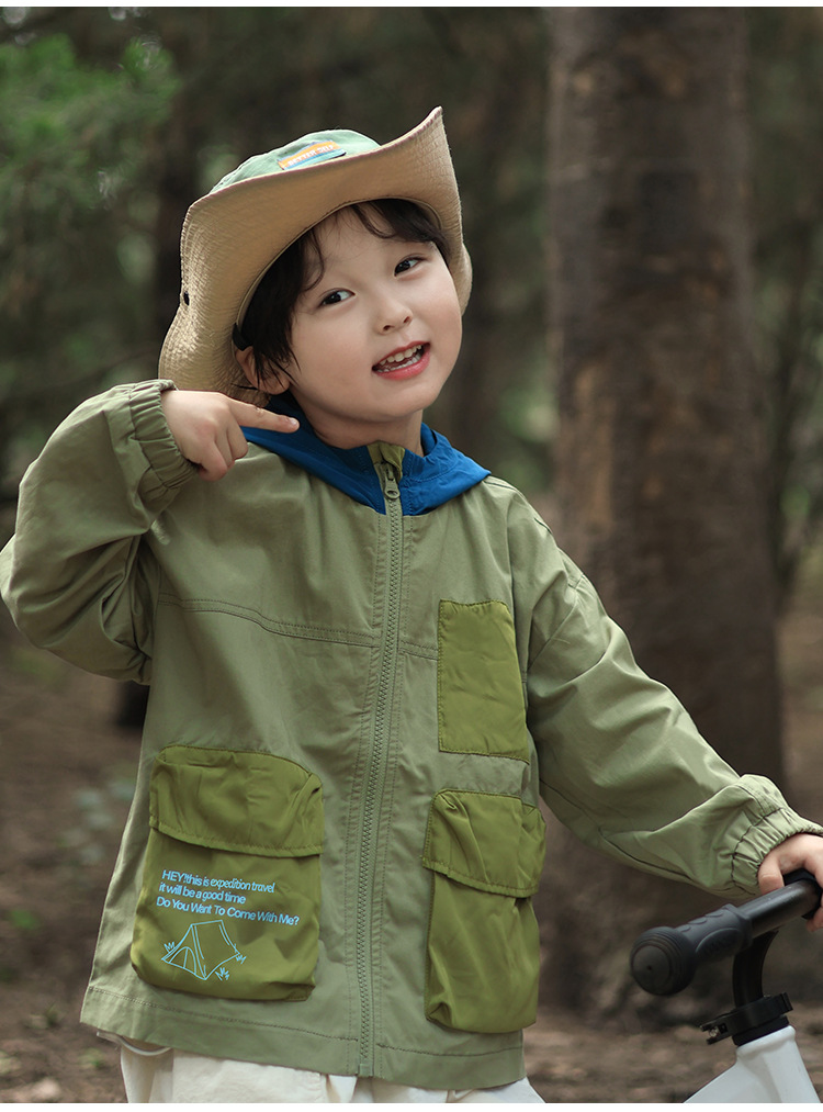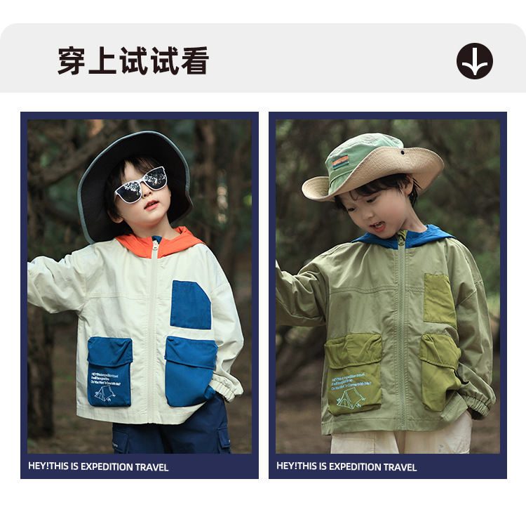 어린이 후드 재킷 2025 유럽과 미국의 봄, 가을 새로운 스타일 소년과 소녀 얇은 아동 의류 작업복 야외 스포츠상의스토어 가기