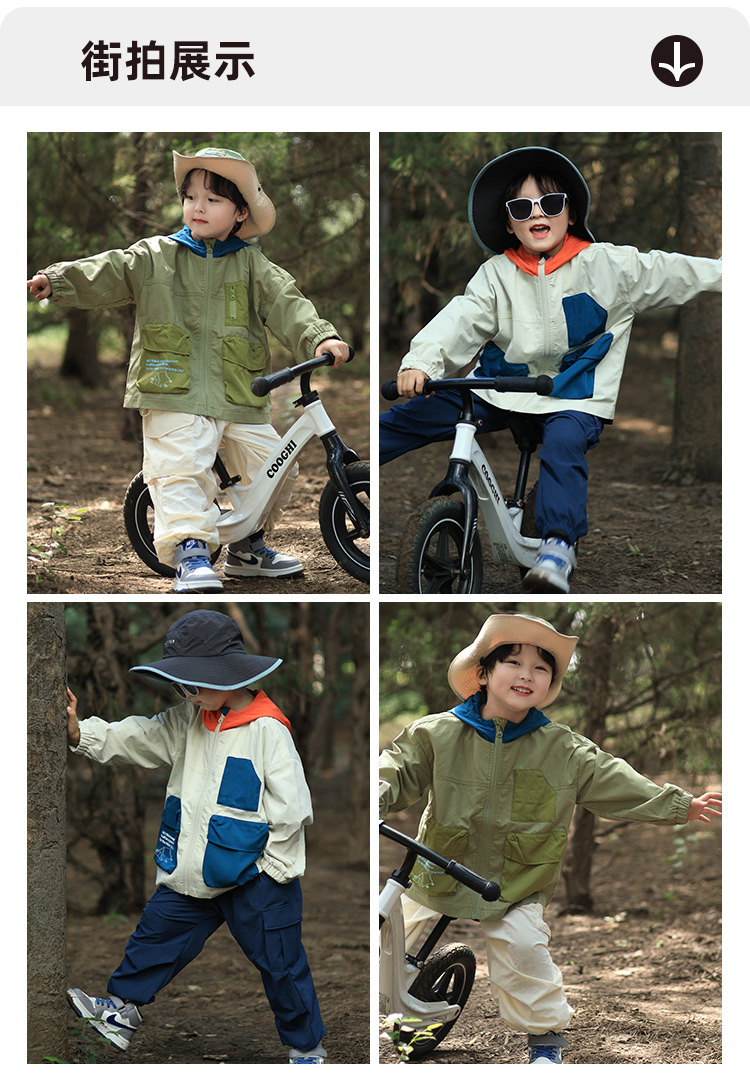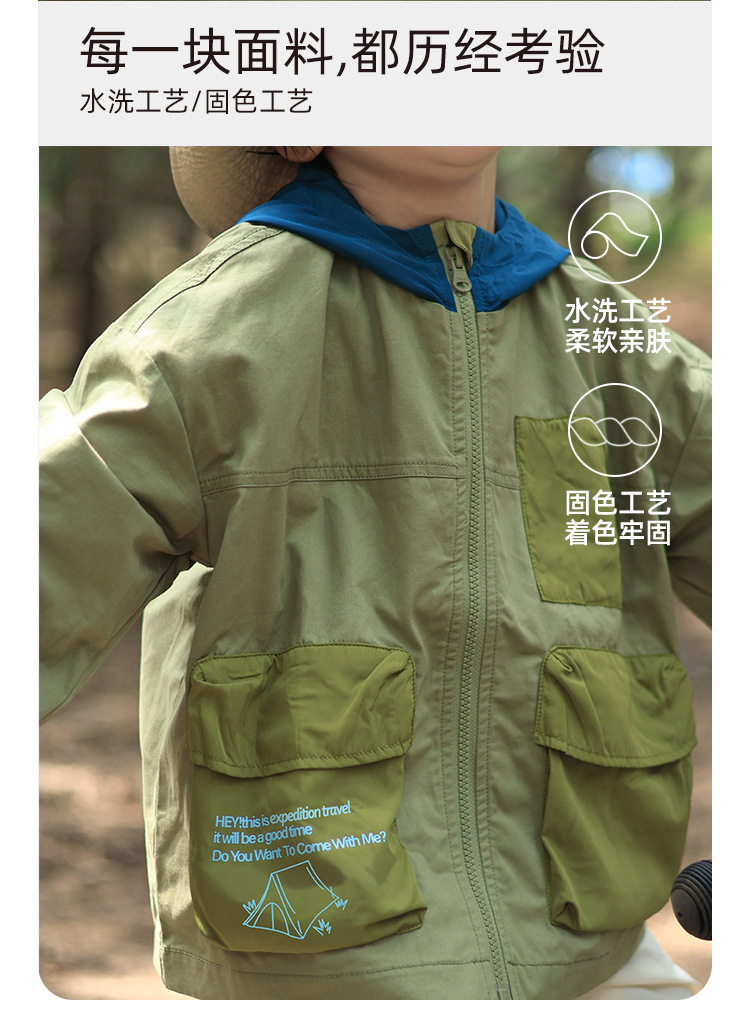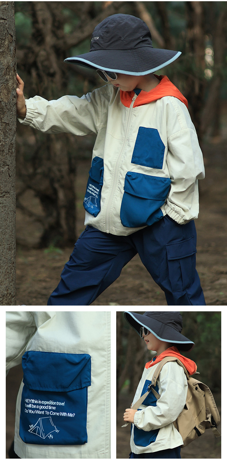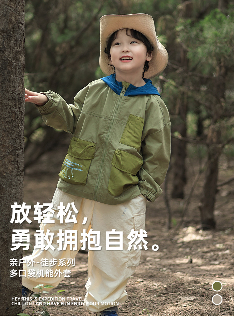 어린이 후드 재킷 2025 유럽과 미국의 봄, 가을 새로운 스타일 소년과 소녀 얇은 아동 의류 작업복 야외 스포츠상의스토어 가기