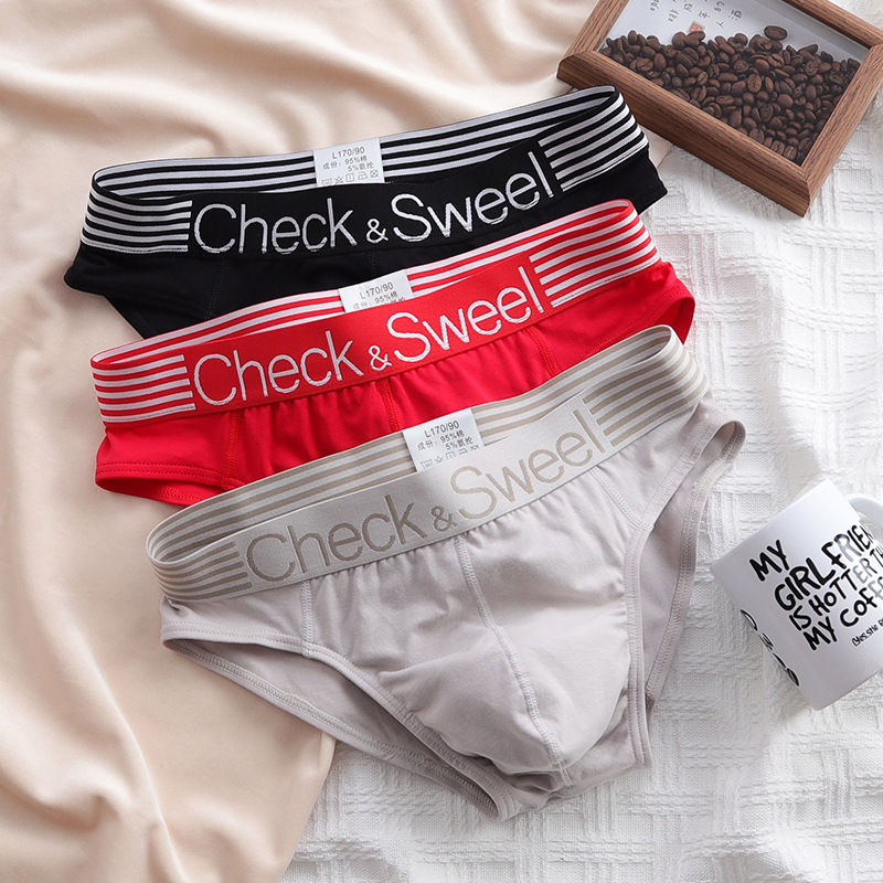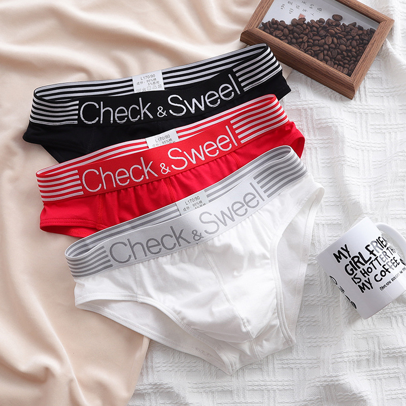 3 쌍 남성 속옷 남자의 순면 브리프 느슨한 편안한 통기성 십대 맞춤형 유행 남성 반바지