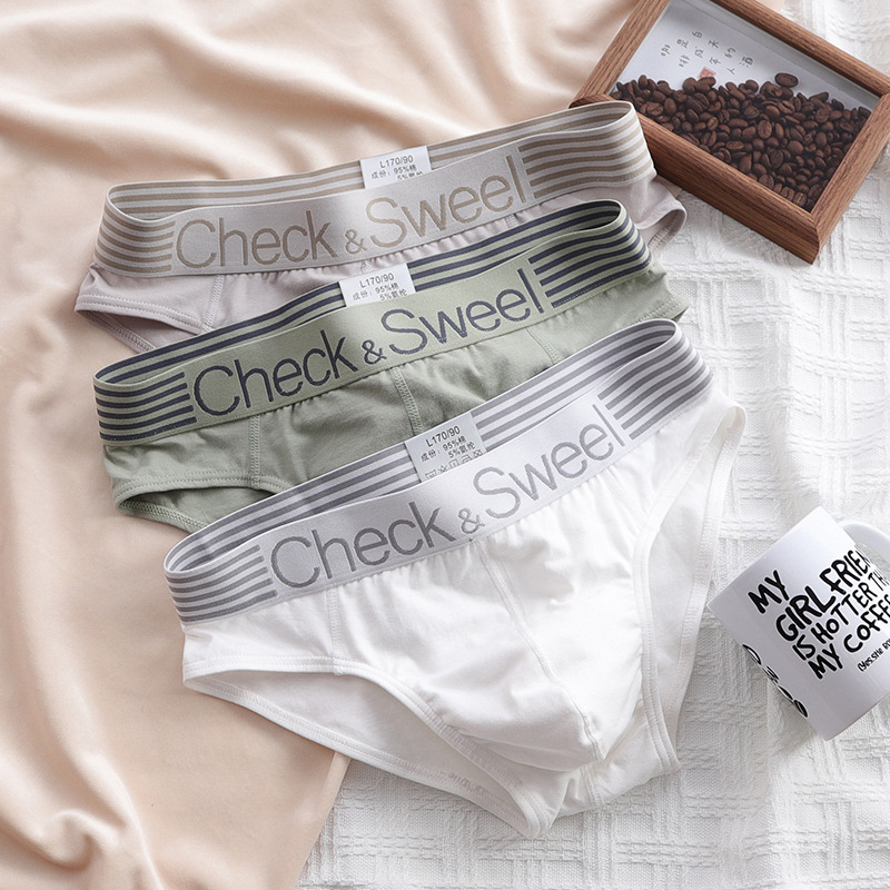 3 쌍 남성 속옷 남자의 순면 브리프 느슨한 편안한 통기성 십대 맞춤형 유행 남성 반바지스토어 가기
