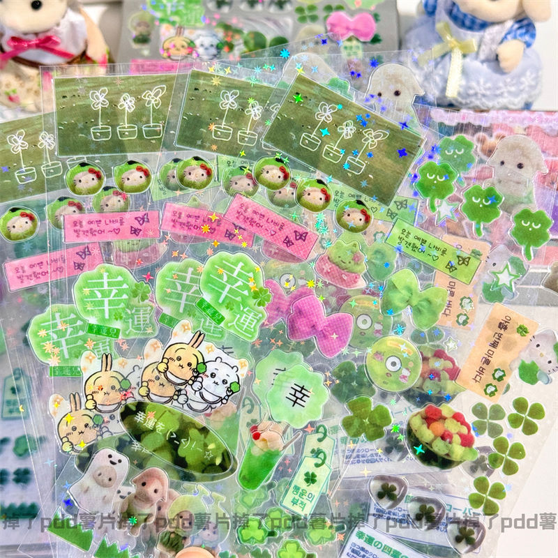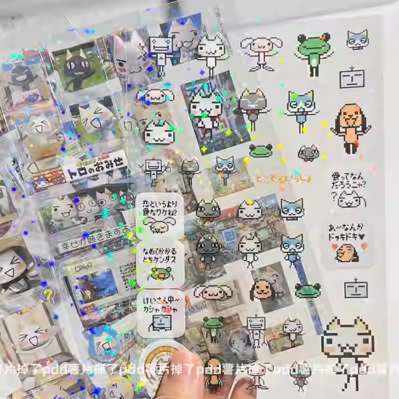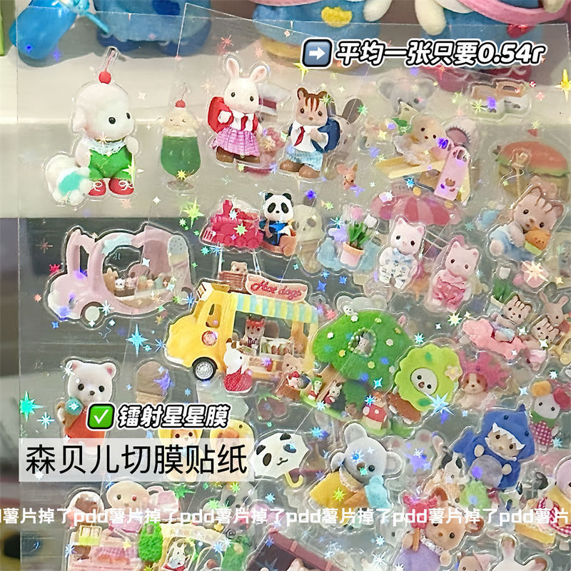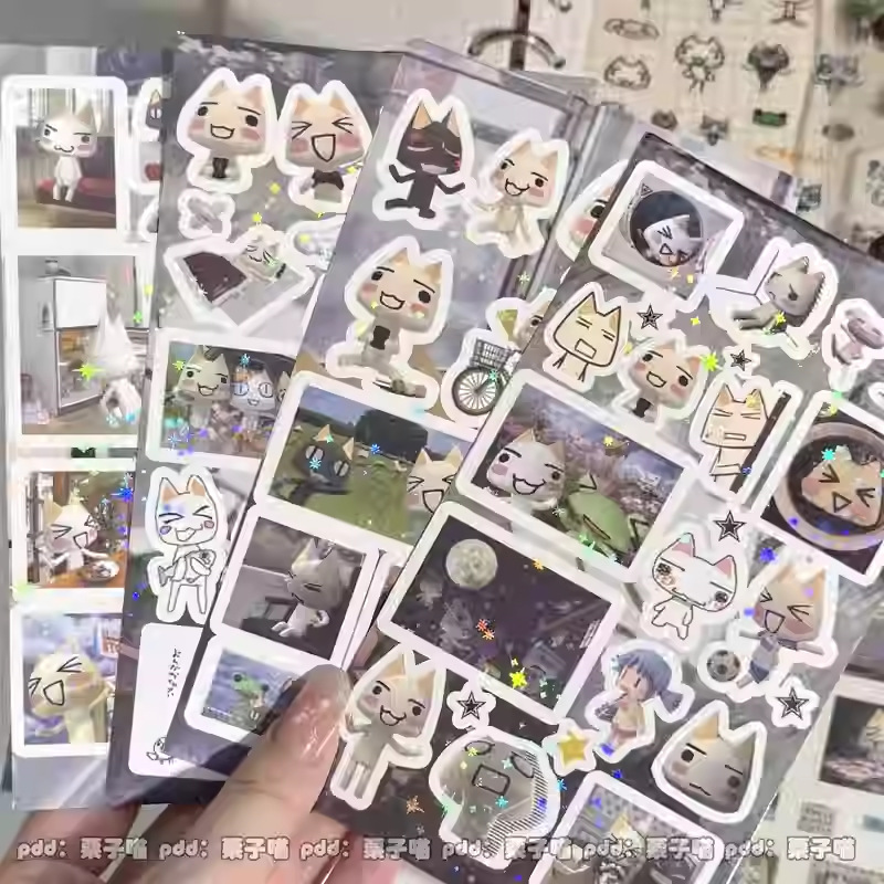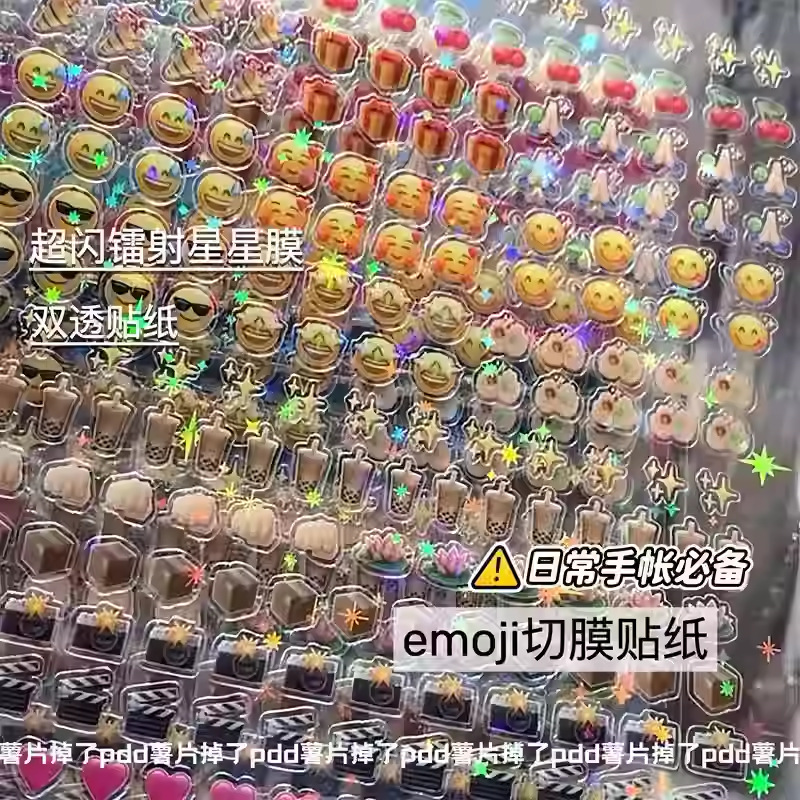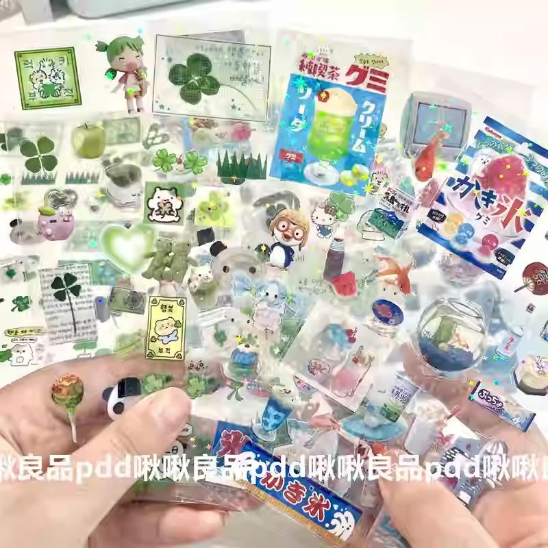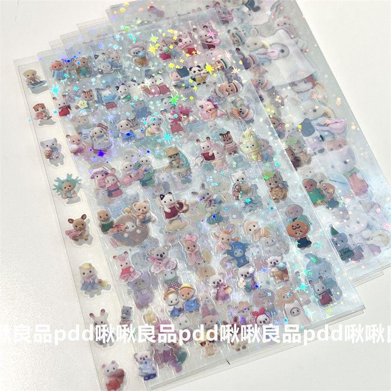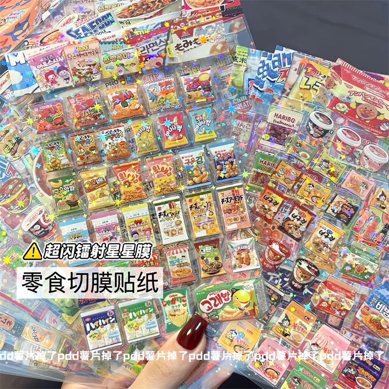 2024년 신상 고급스러운 스낵 스티커, 이중 투명 스티커, 레이저 스타 필름 핸드북 스티커스토어 가기