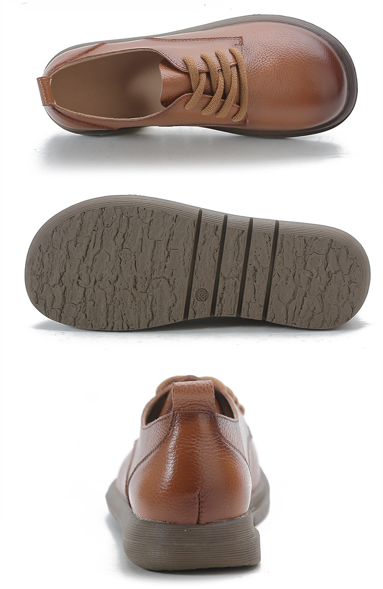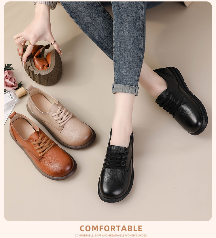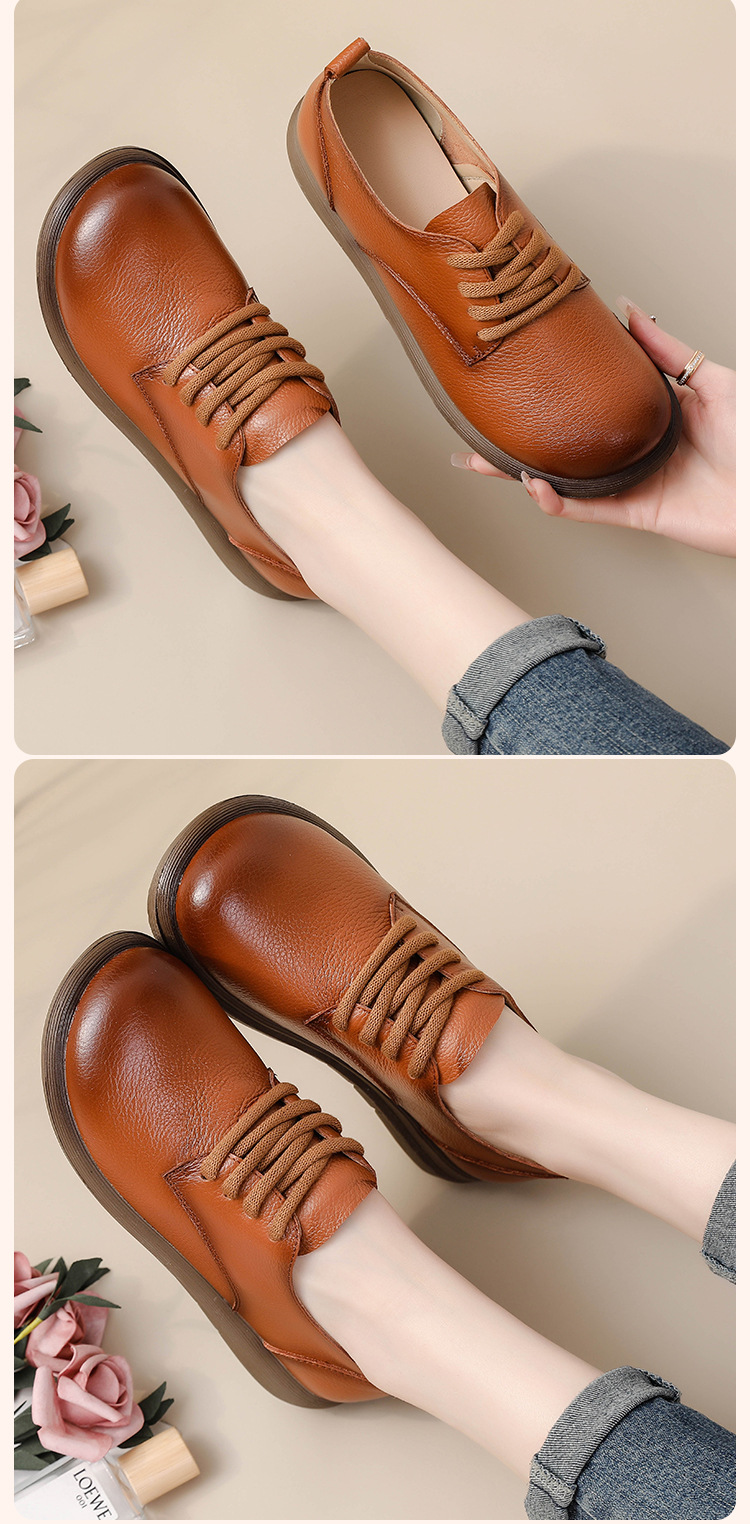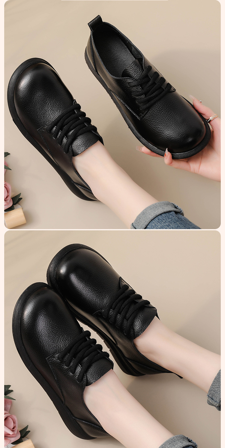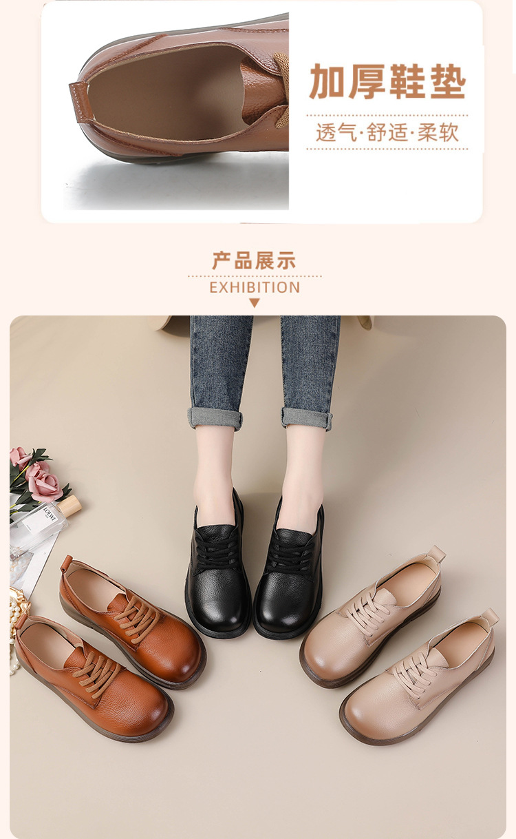 탑 레이어 Cowhide 빈티지 영국 스타일 라운드 발가락 신발 플랫폼 신발 여성 레이스 업 정품 가죽 싱글 레이어 신발 가죽 어머니 신발스토어 가기