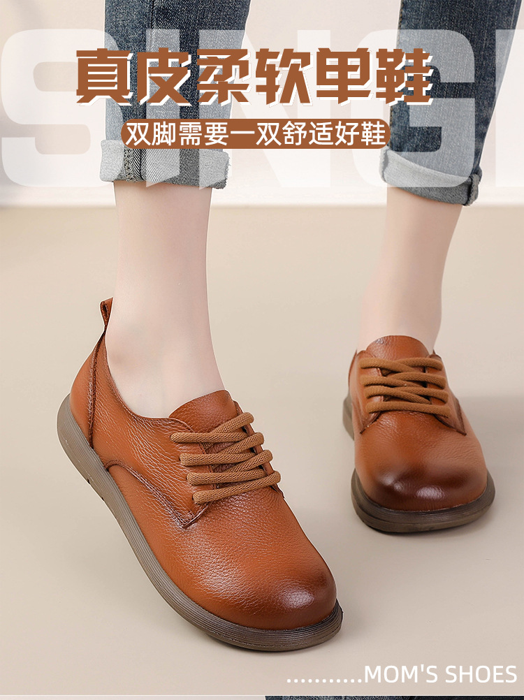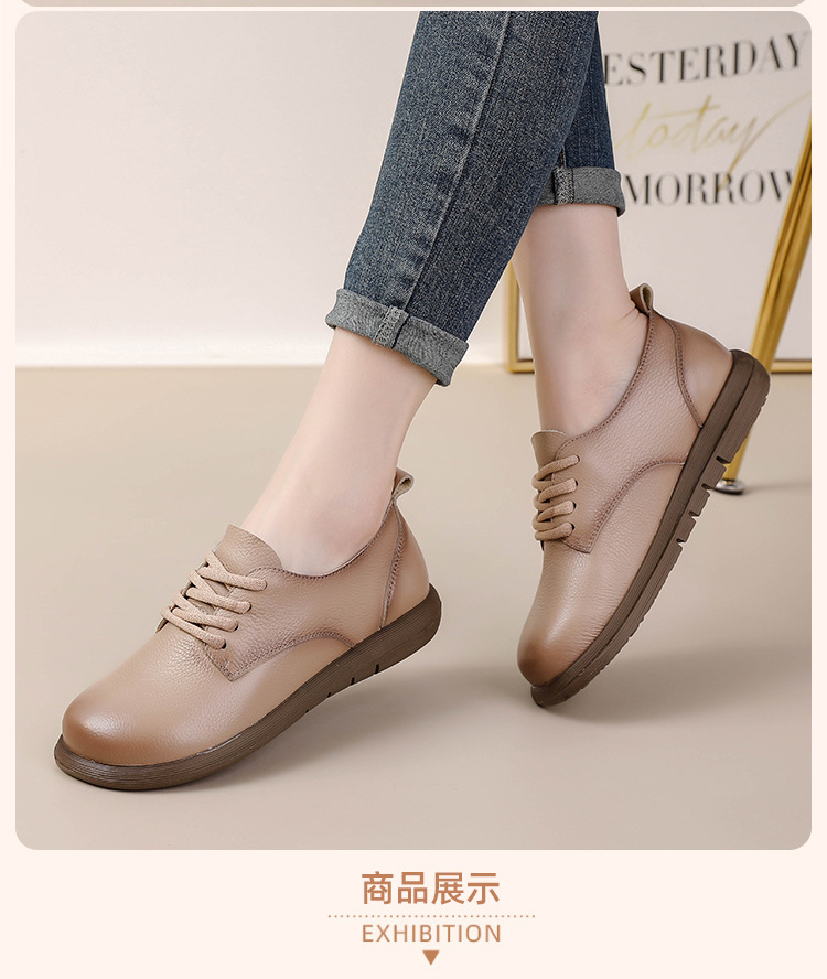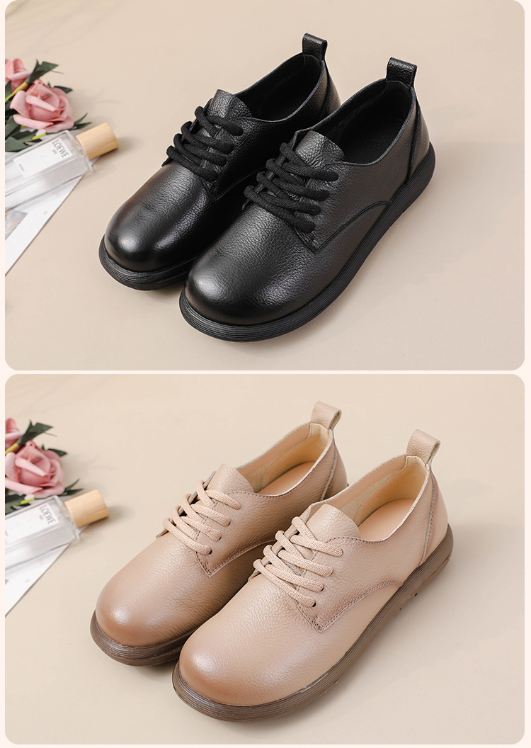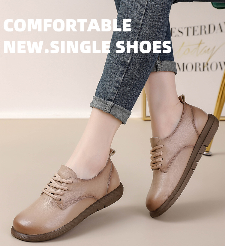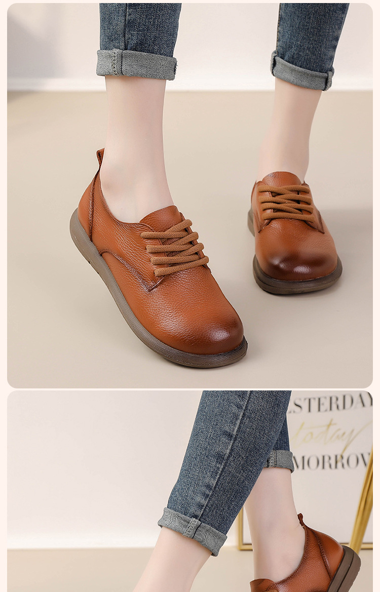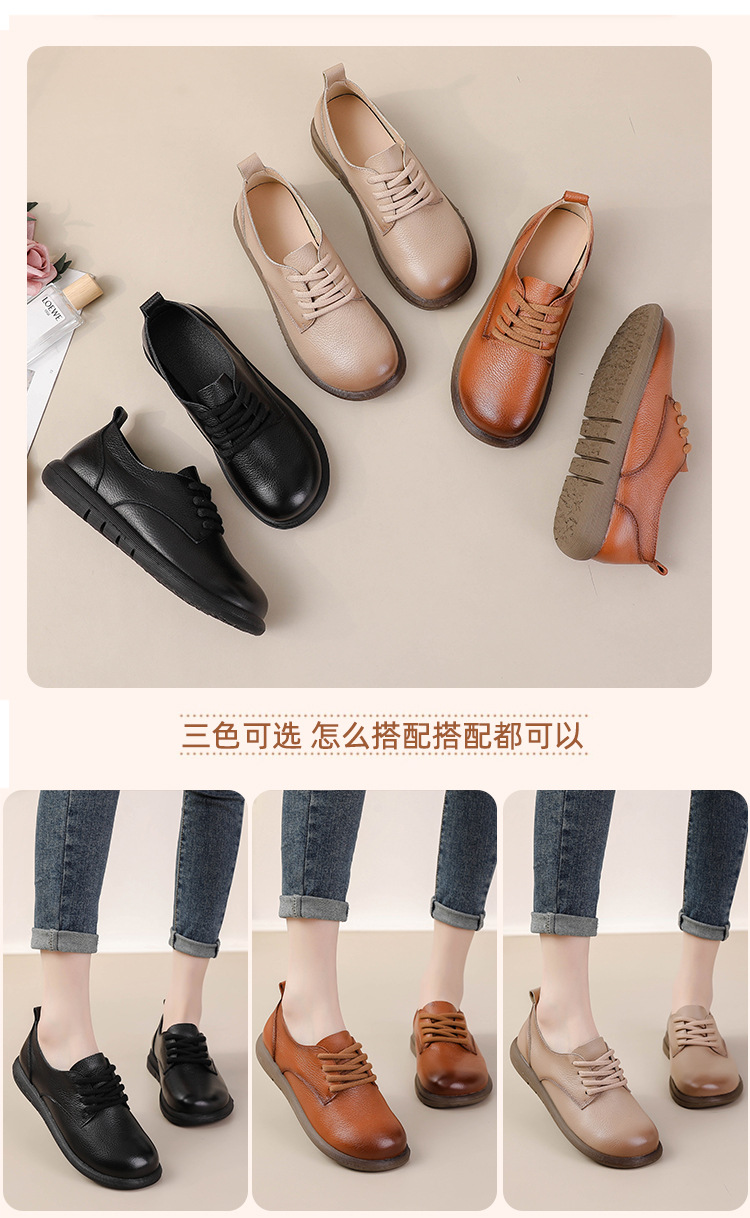 탑 레이어 Cowhide 빈티지 영국 스타일 라운드 발가락 신발 플랫폼 신발 여성 레이스 업 정품 가죽 싱글 레이어 신발 가죽 어머니 신발스토어 가기