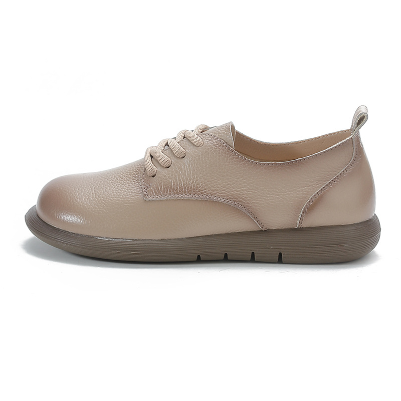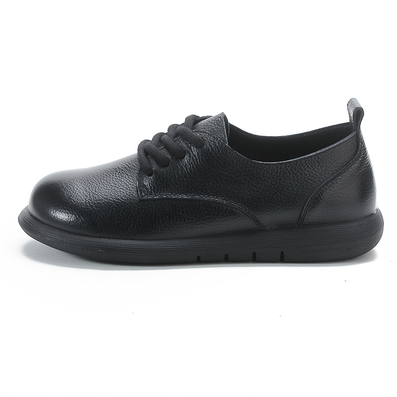 탑 레이어 Cowhide 빈티지 영국 스타일 라운드 발가락 신발 플랫폼 신발 여성 레이스 업 정품 가죽 싱글 레이어 신발 가죽 어머니 신발