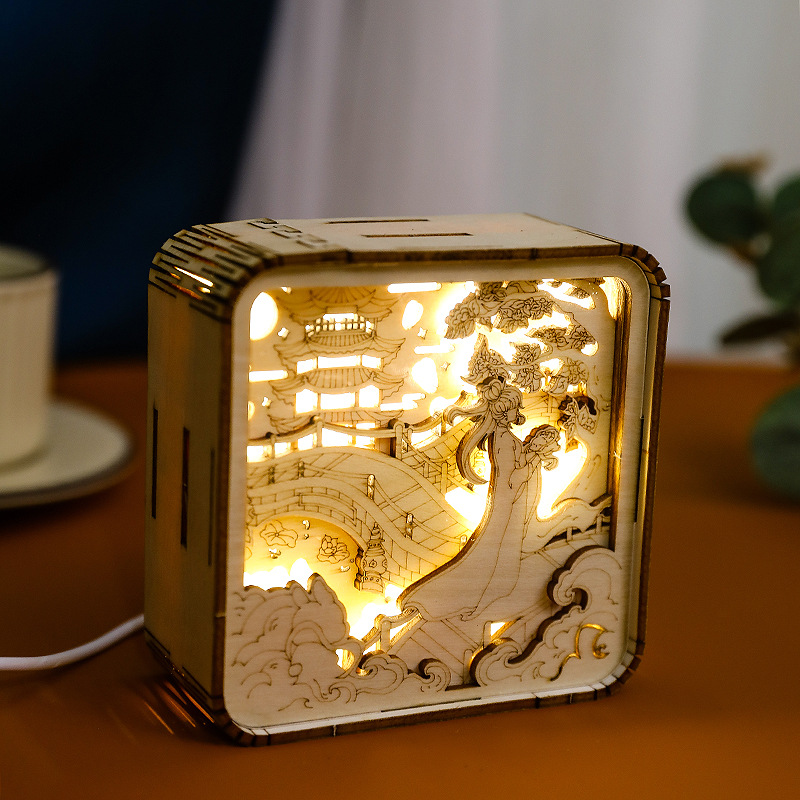 중추절 나무 조각 나이트 라이트 조각 스테레오 창조적 인 장식품 관광 사업 창조적 인 동반 행사 Wenchuang 침실 램프