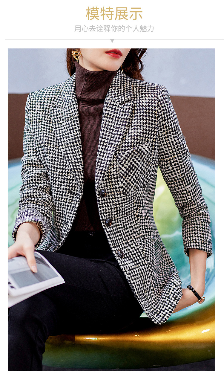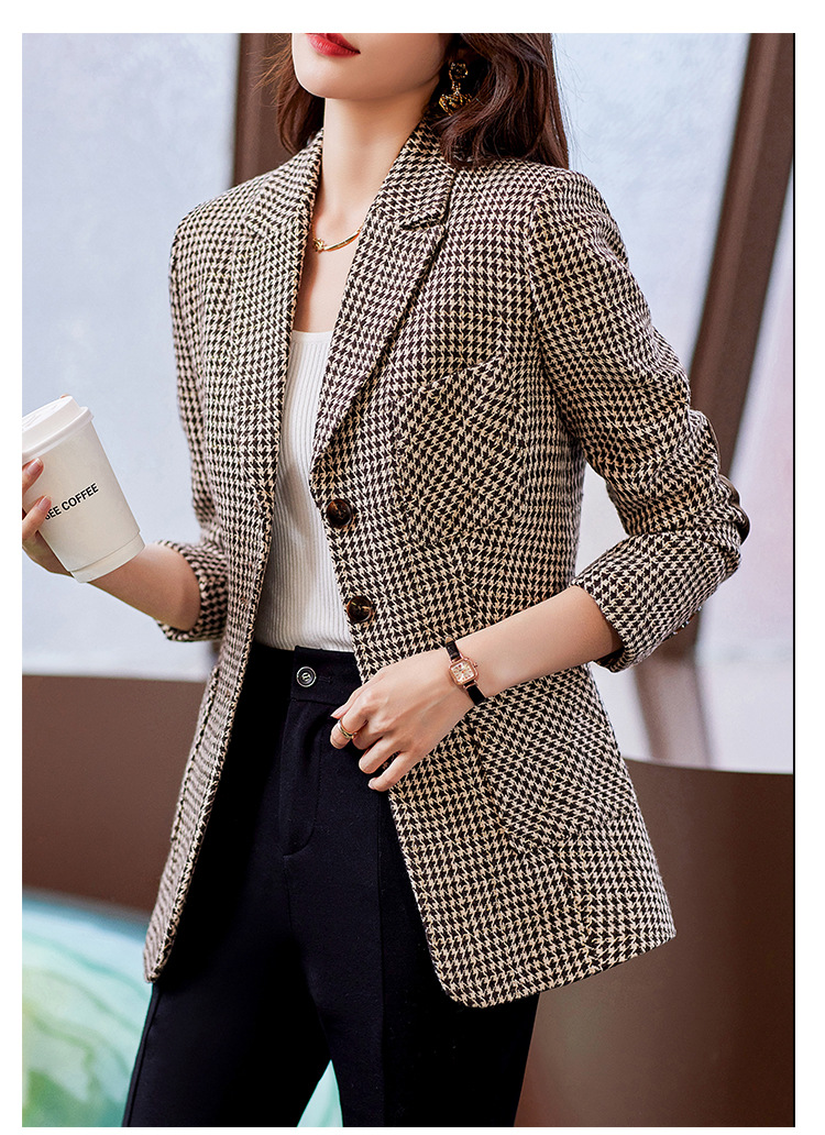 Houndstooth 세트 재킷 여자 가을 및 겨울 2024 새로운 서양식 올 매치 하이 엔드 센스 영국식 캐주얼 세트 탑