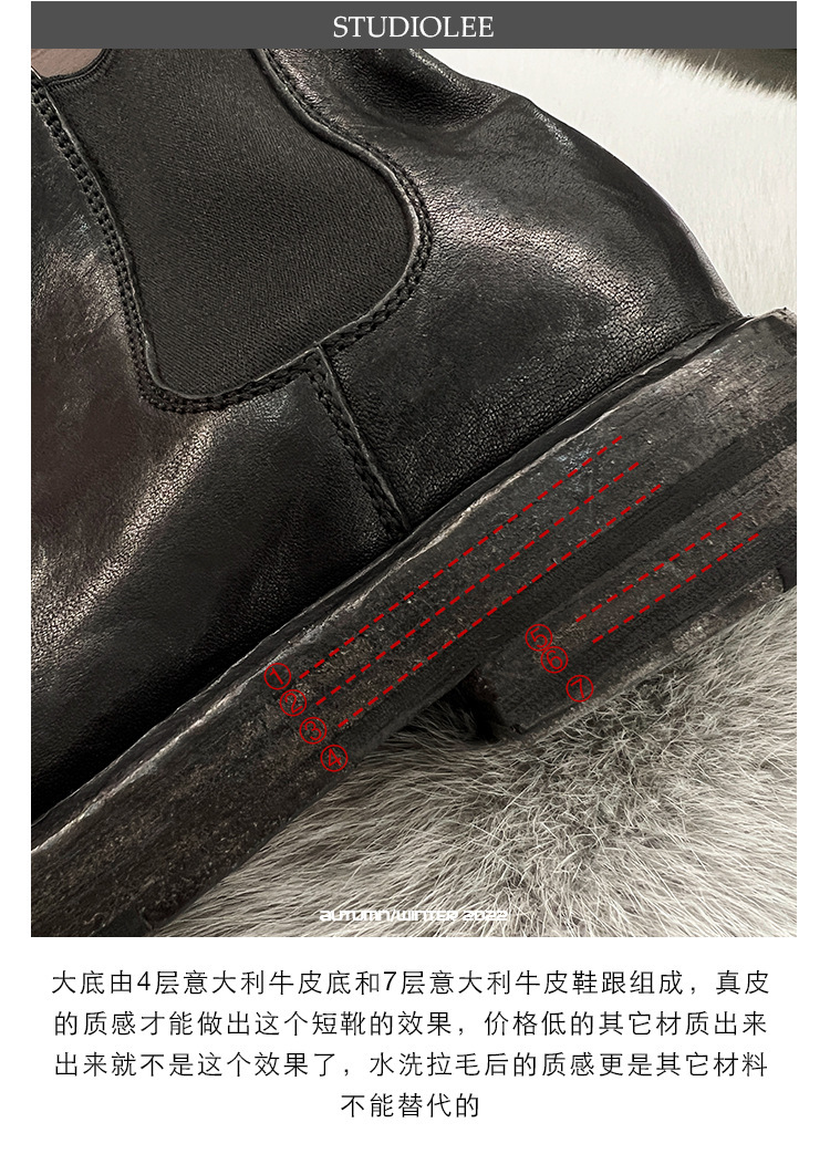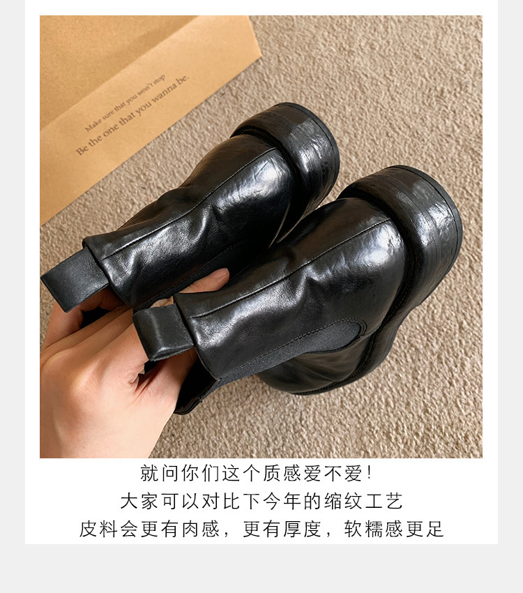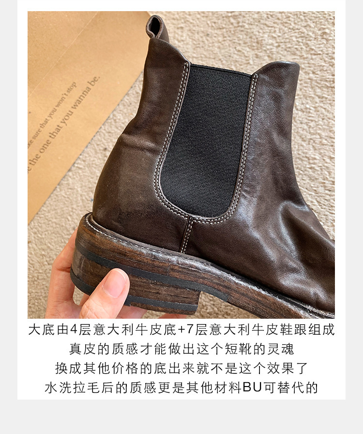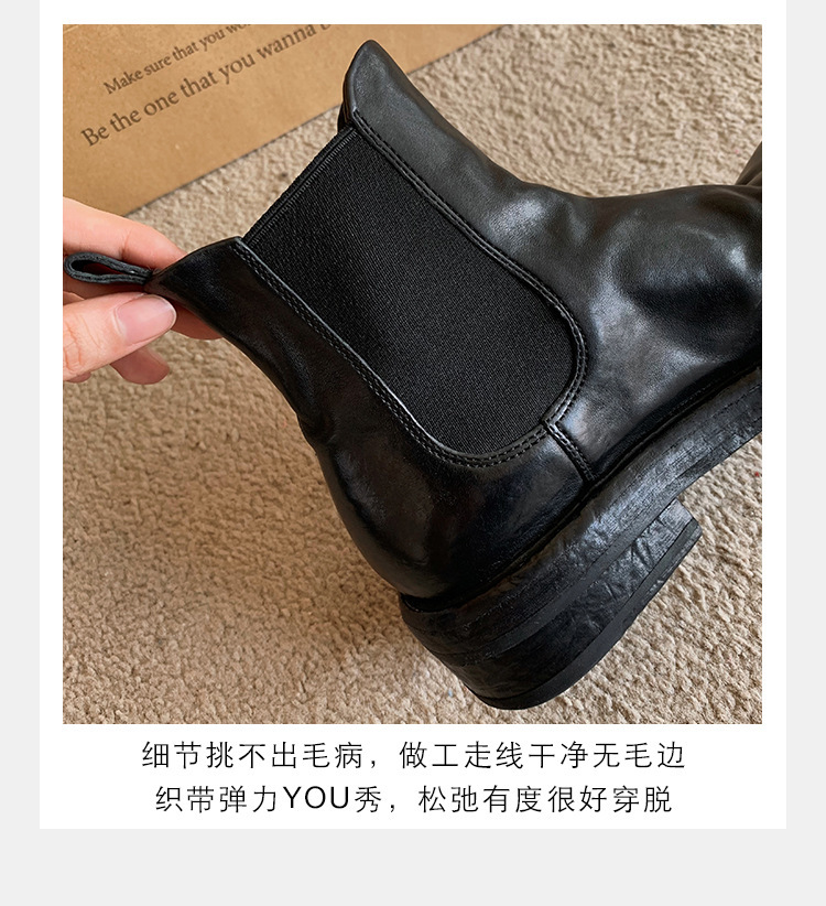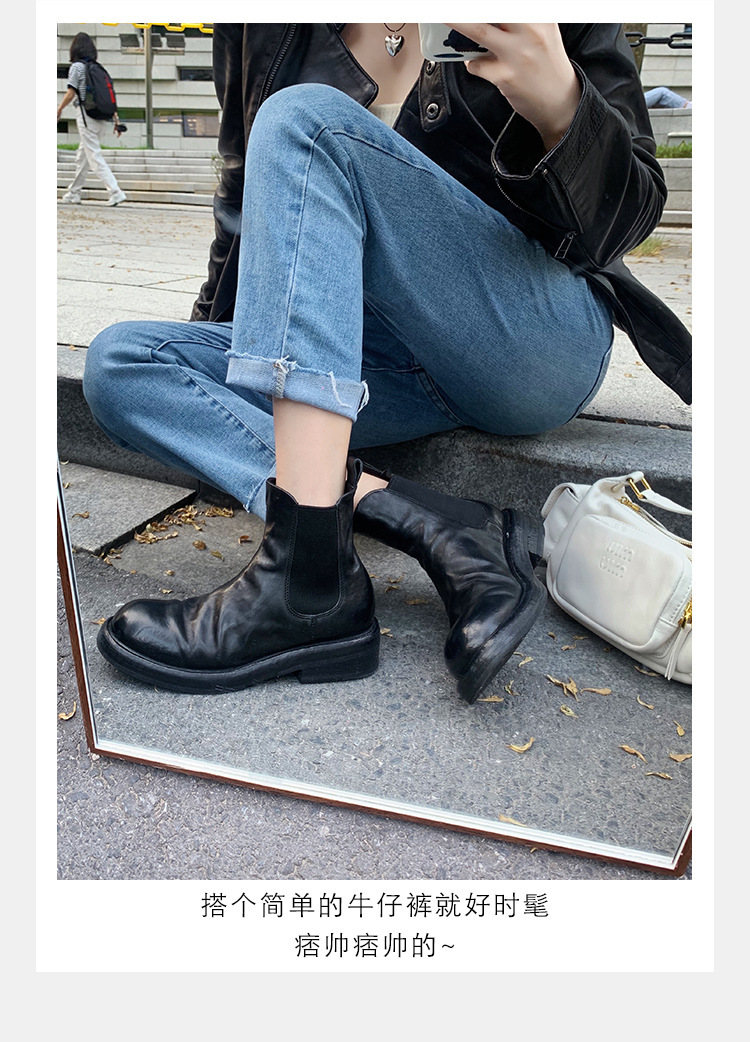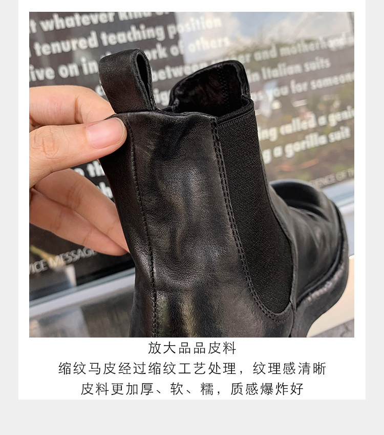 전체 소가죽 포도색 천연 가죽 마틴 부츠 여성용 워싱 말가죽 주름 스모크 튜브 탄성 첼시 부츠 숏부츠 여성용스토어 가기