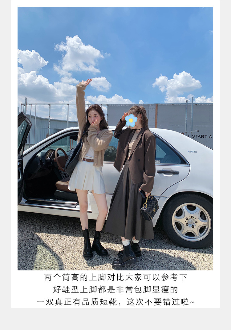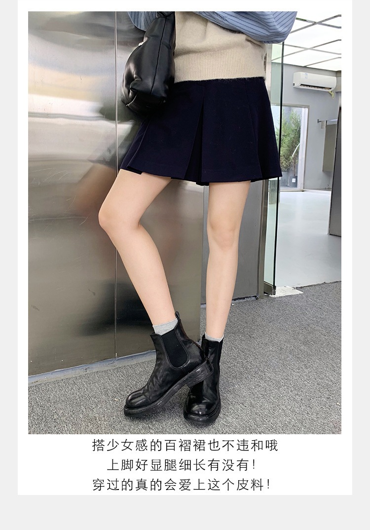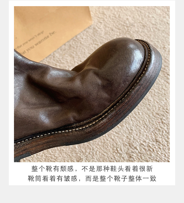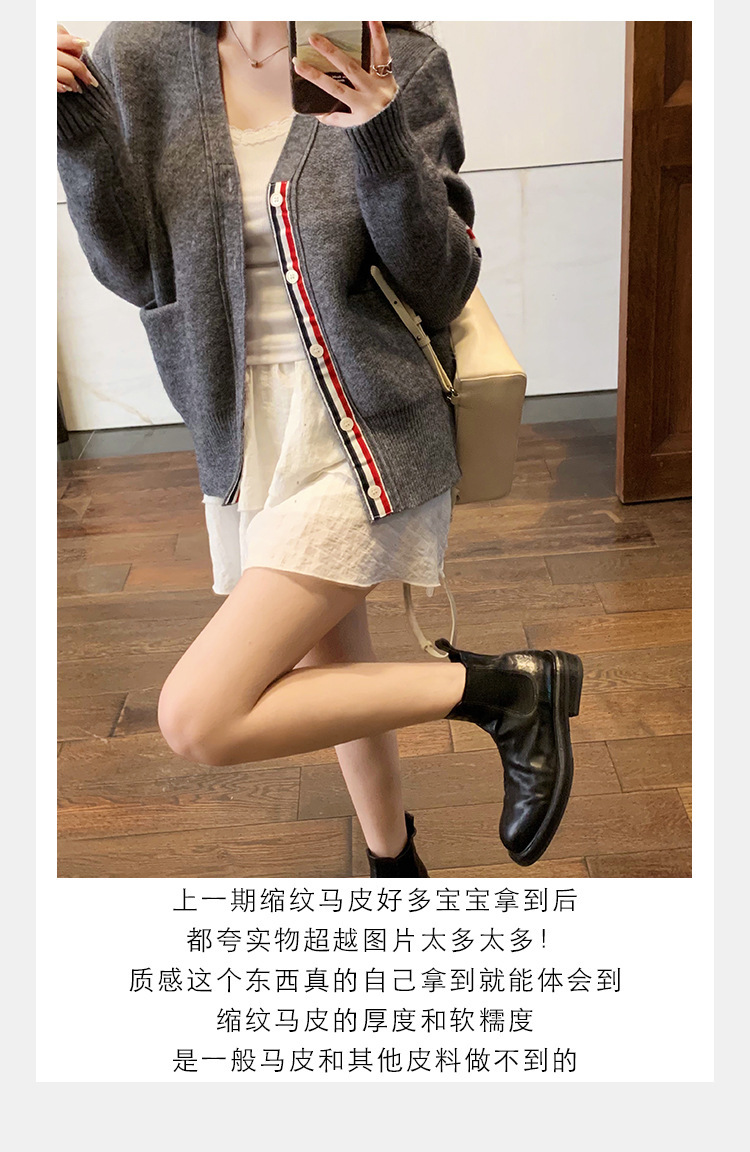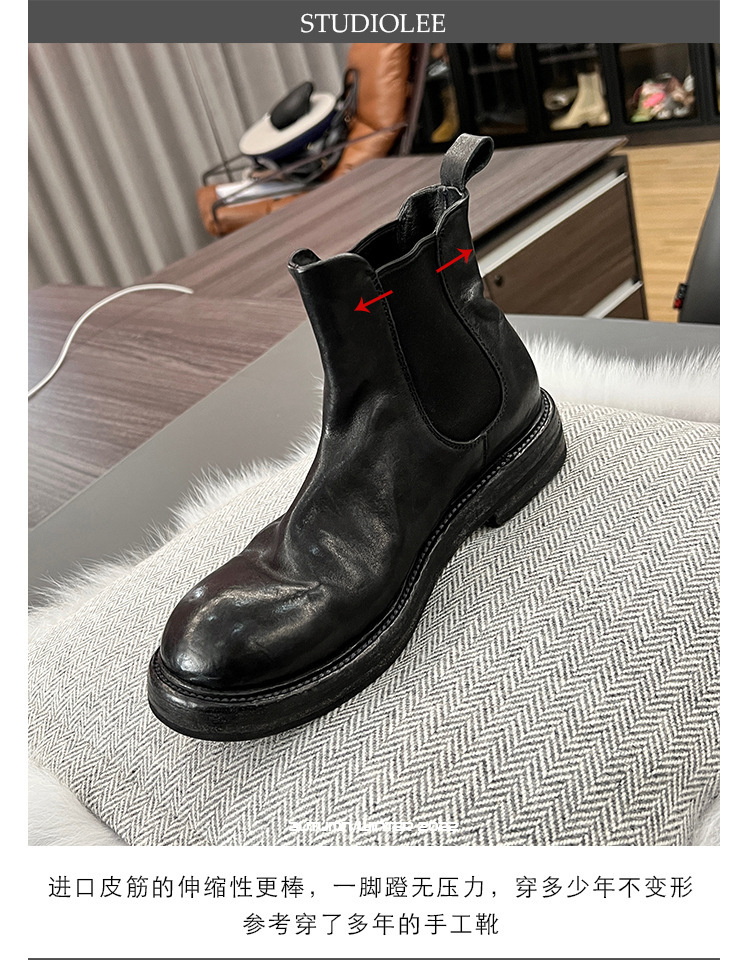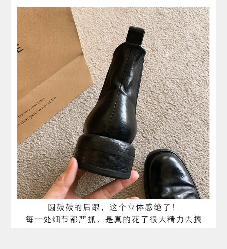 전체 소가죽 포도색 천연 가죽 마틴 부츠 여성용 워싱 말가죽 주름 스모크 튜브 탄성 첼시 부츠 숏부츠 여성용스토어 가기
