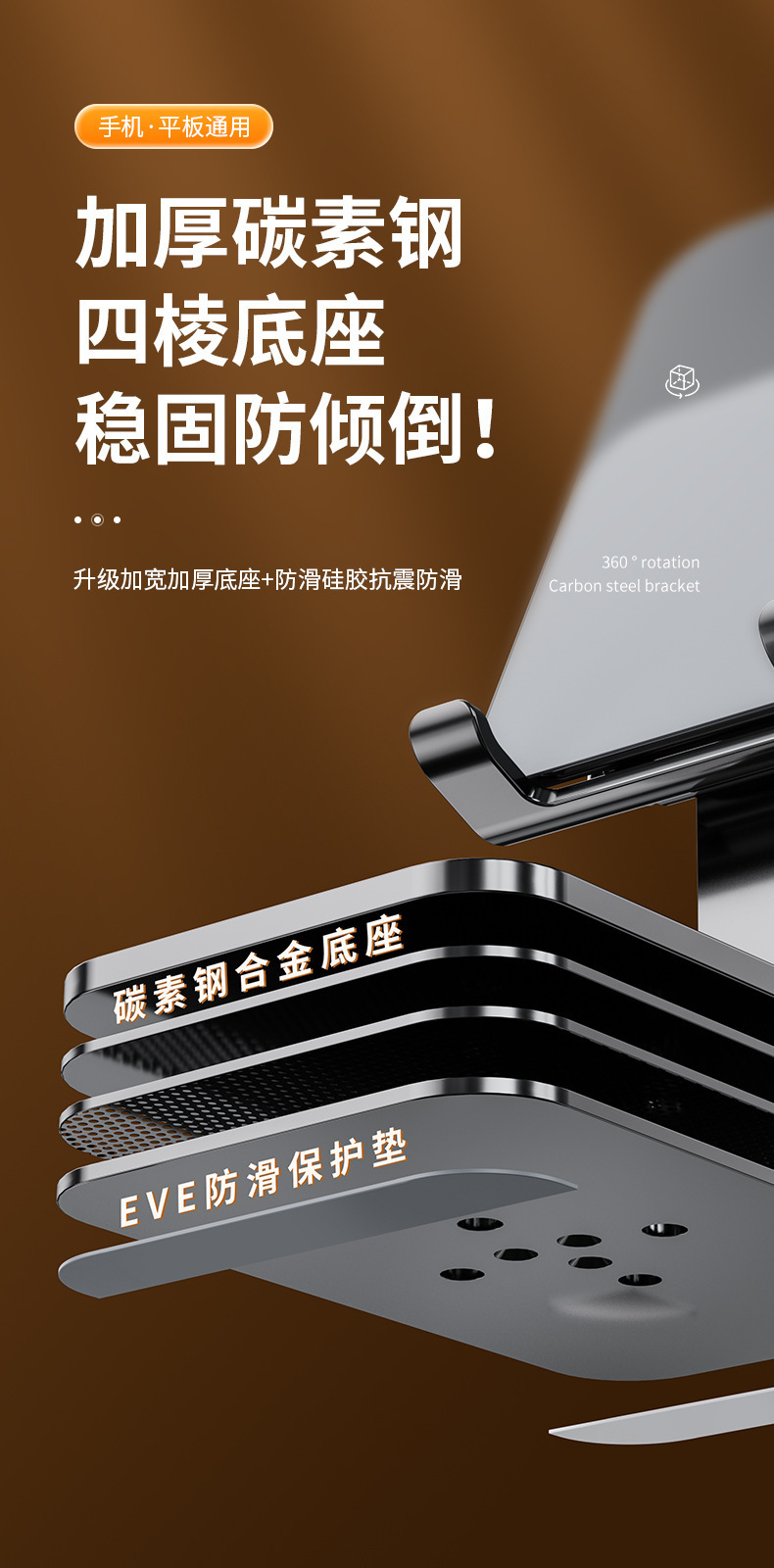 爆款便携式全金属手机支架桌面 360度旋转可折叠手机支架礼品批发