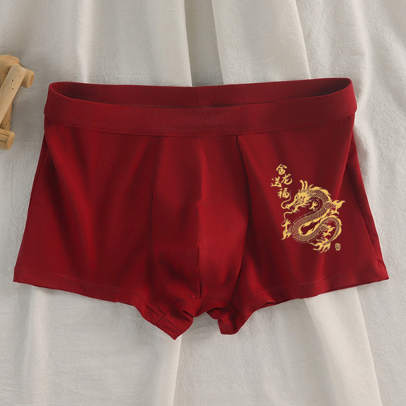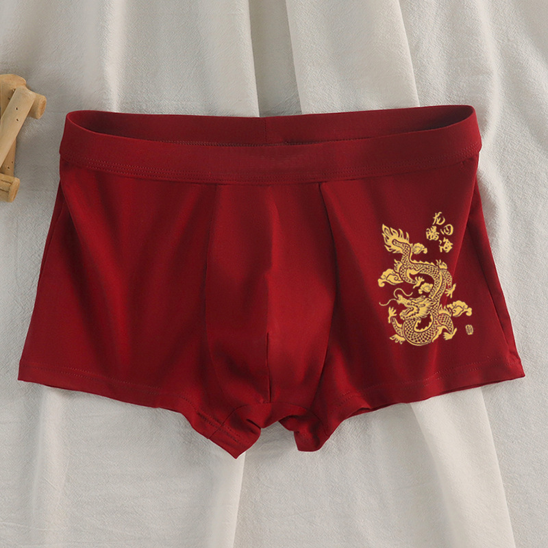 용의 해 남자 속옷 버건디 편안한 통기성 항균 복서 웨딩 보이즈 반바지 머리