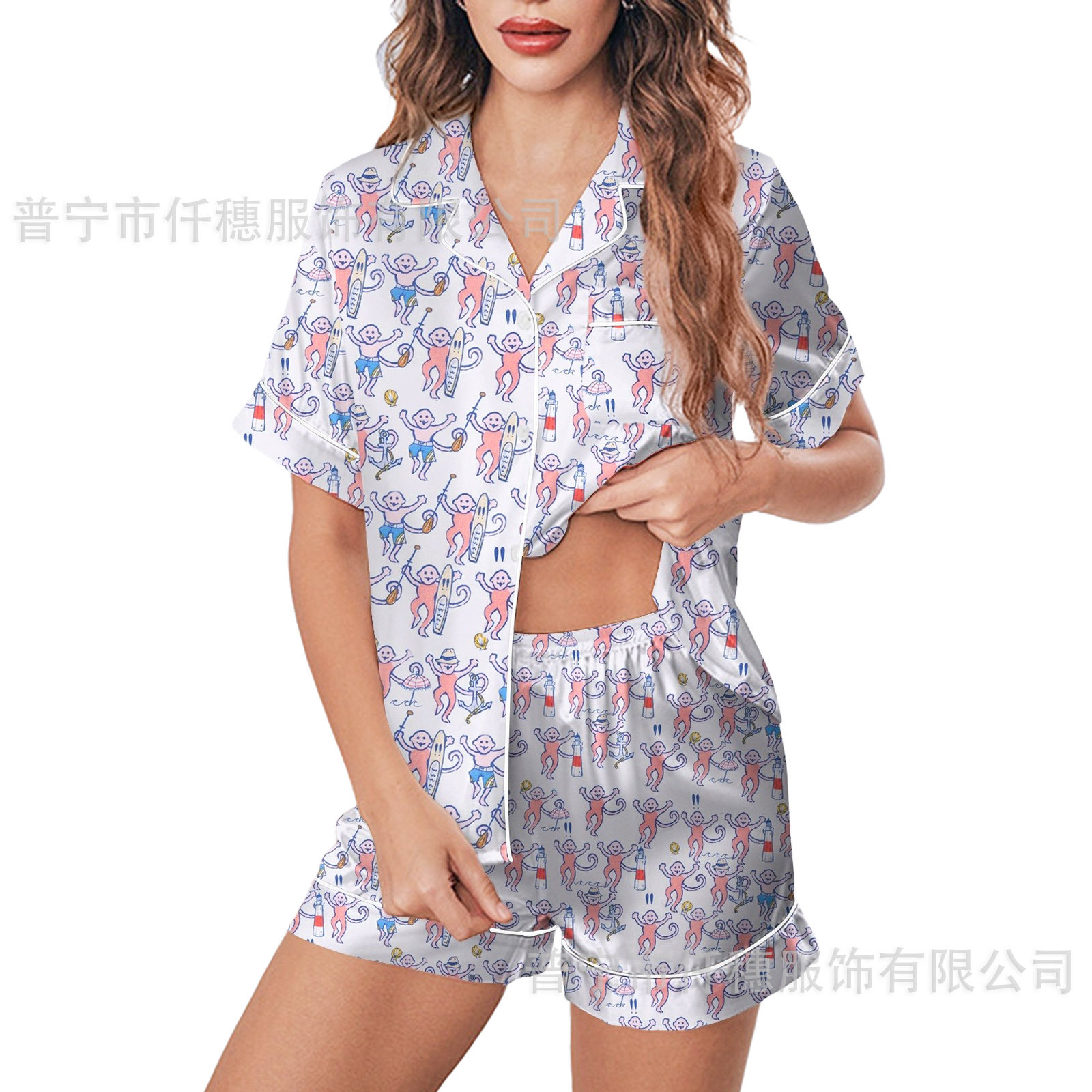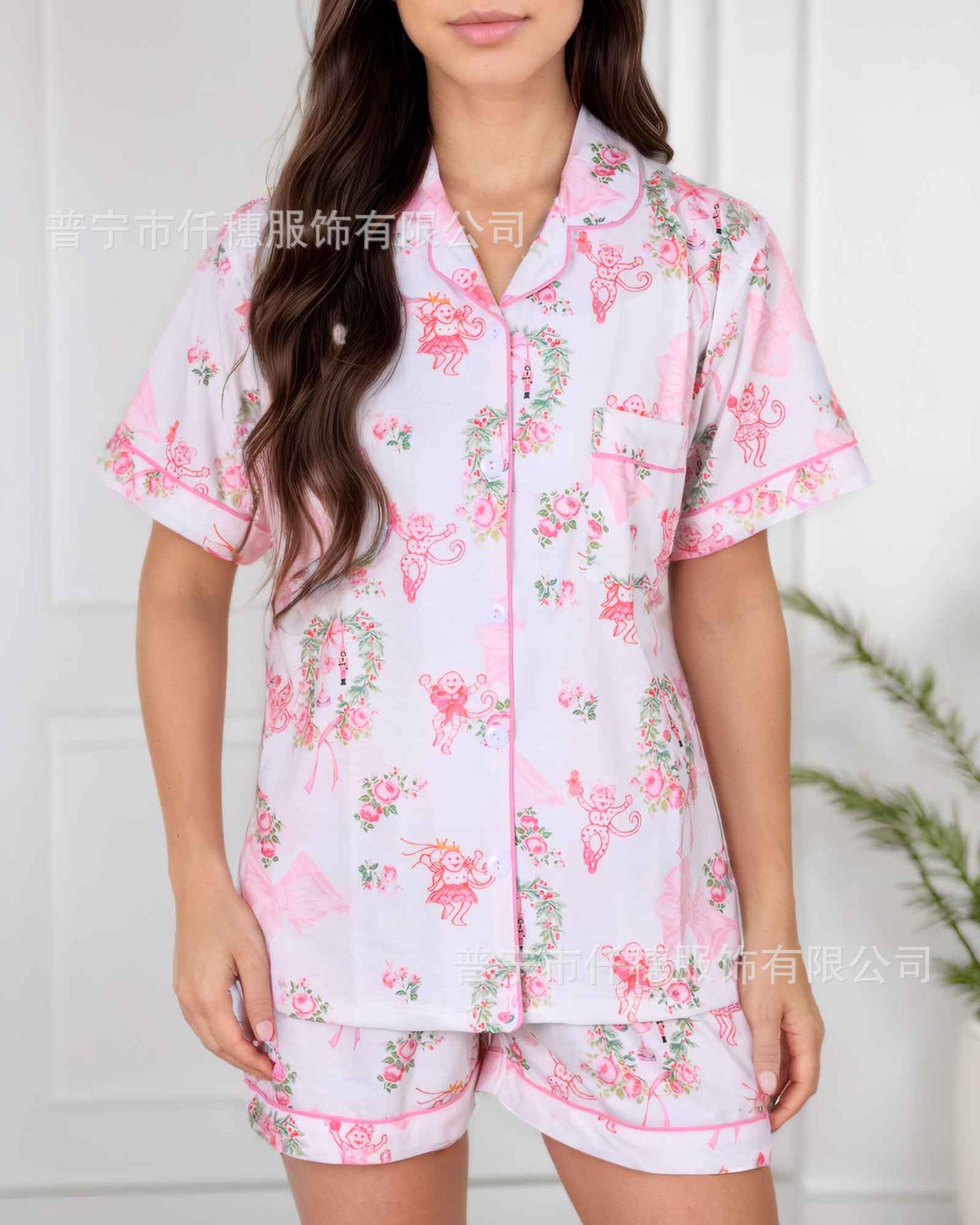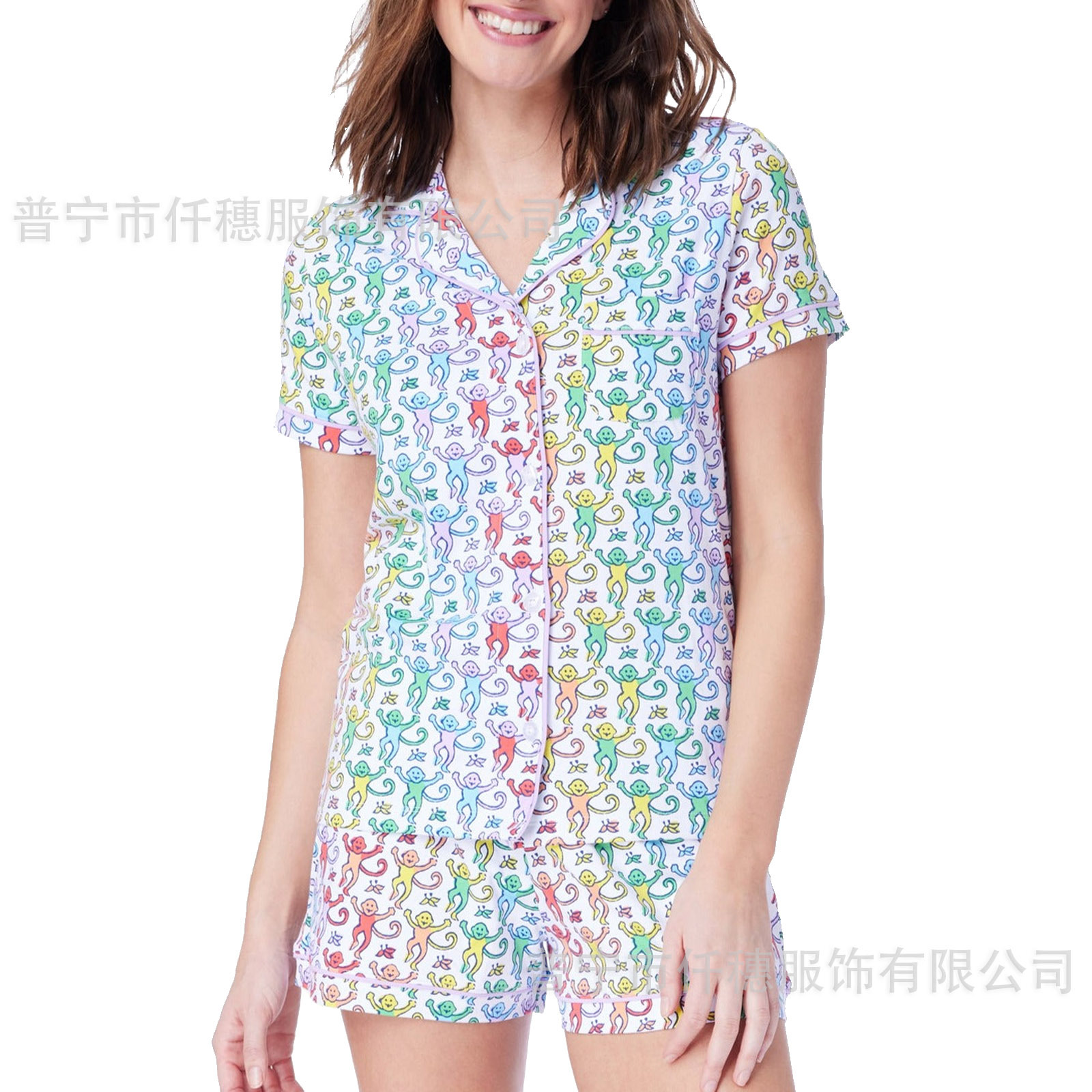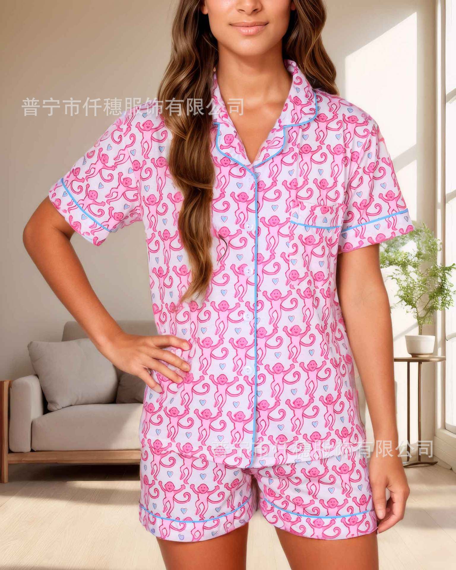 국경 간 폭발 여름 원숭이 인쇄 세트 여성 잠옷 플러스 사이즈 기질 가족 및 가족 생활 의류 아마존