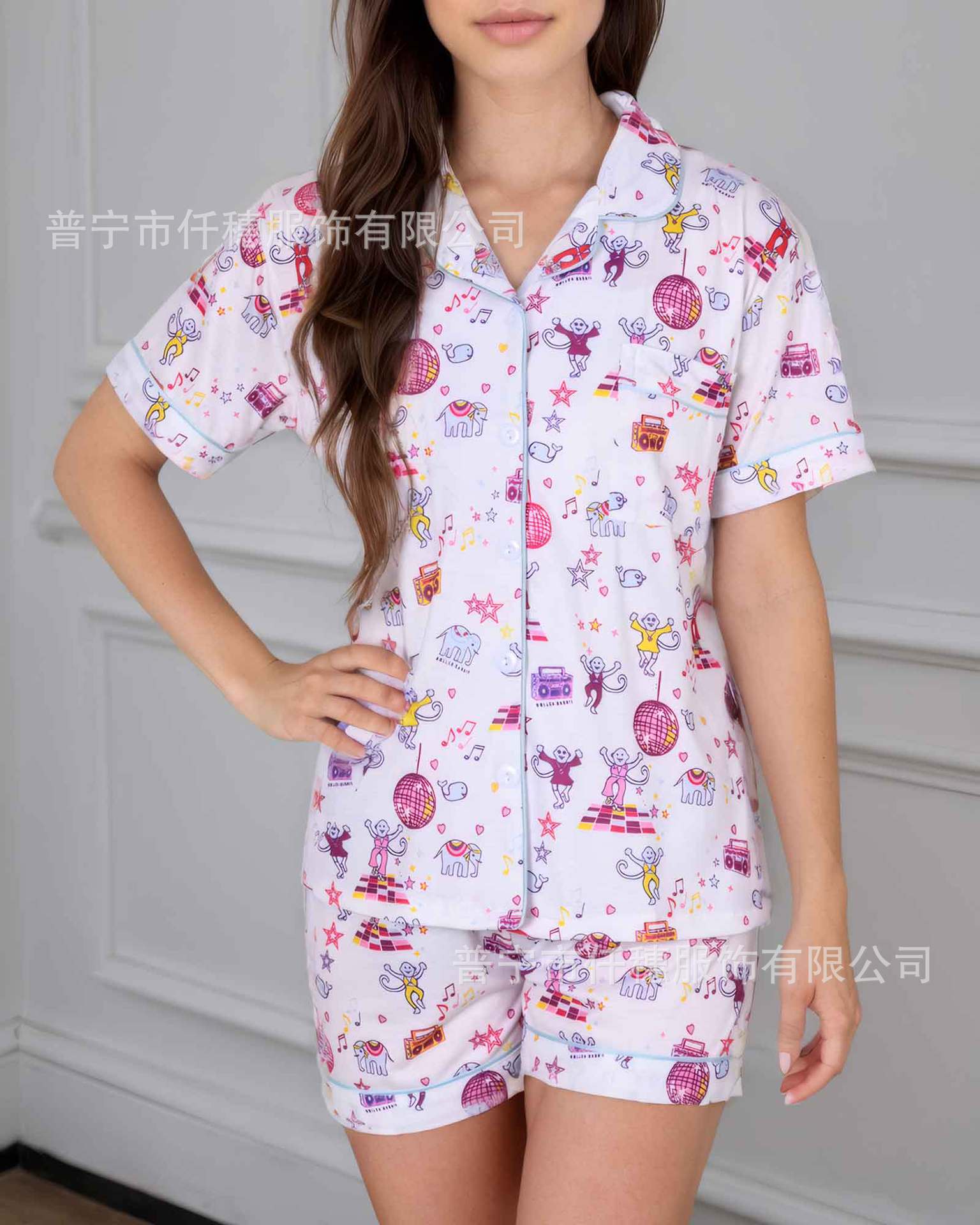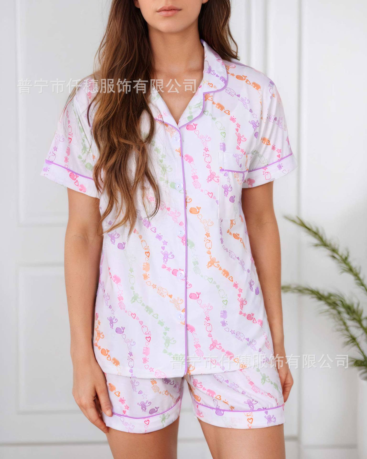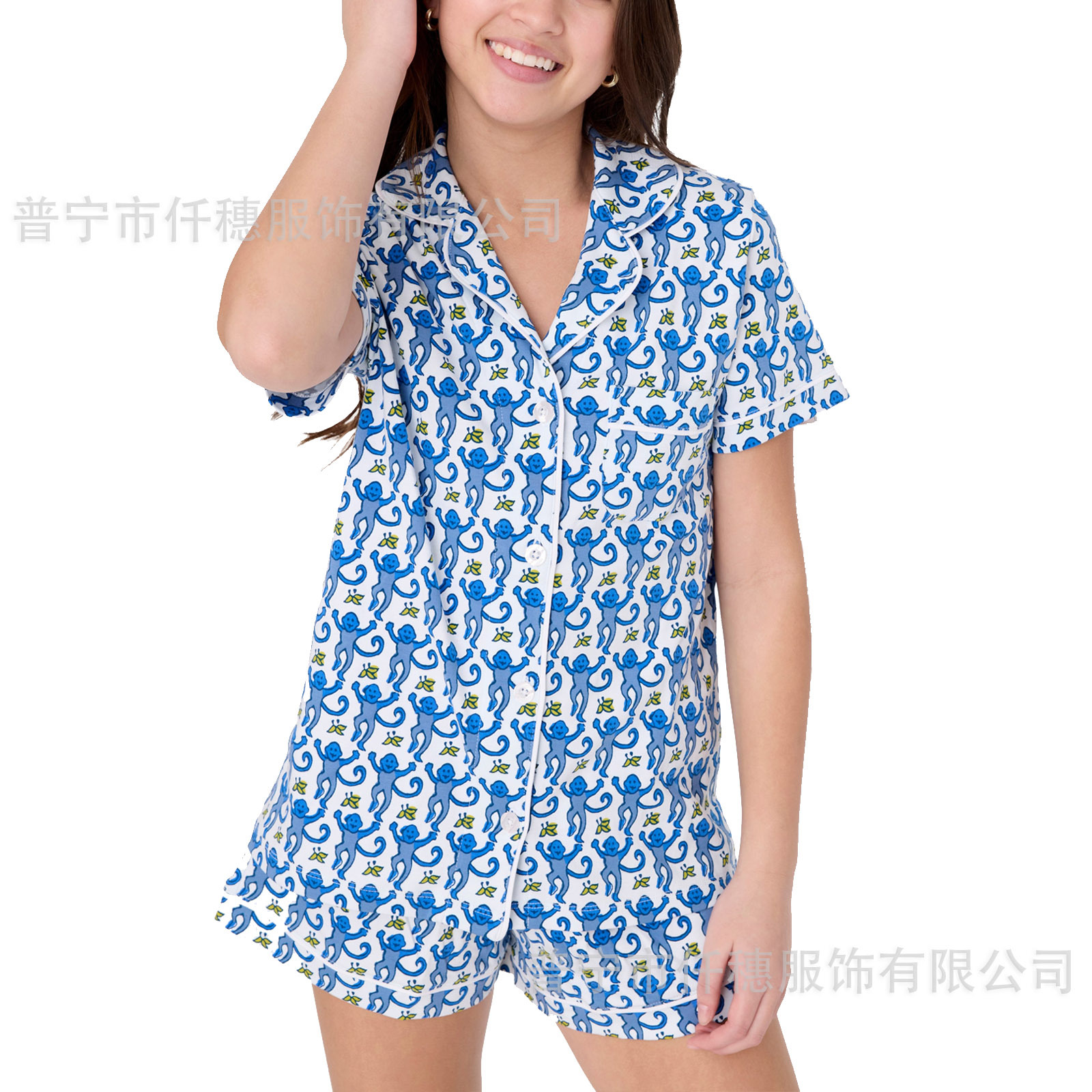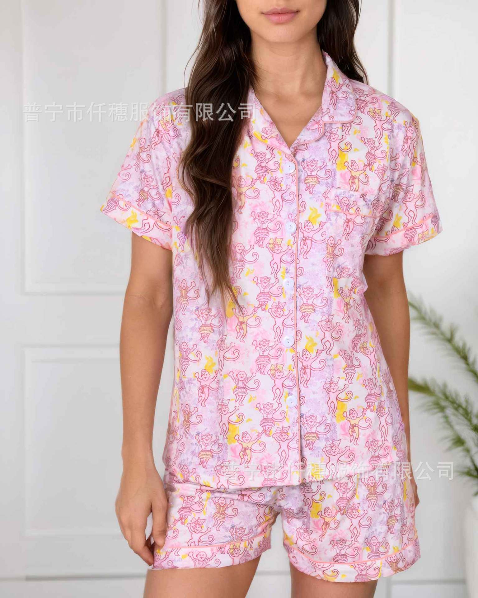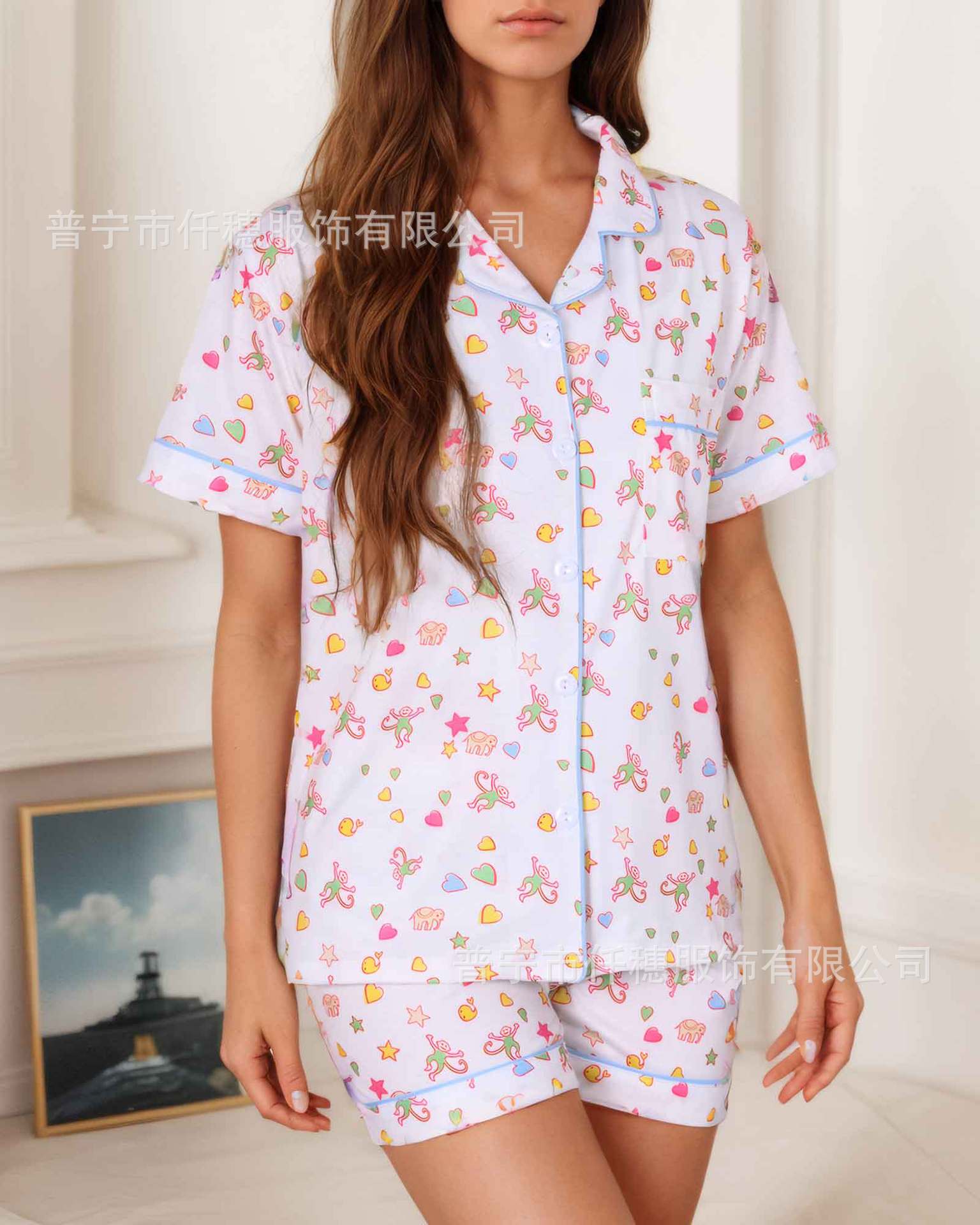 국경 간 폭발 여름 원숭이 인쇄 세트 여성 잠옷 플러스 사이즈 기질 가족 및 가족 생활 의류 아마존