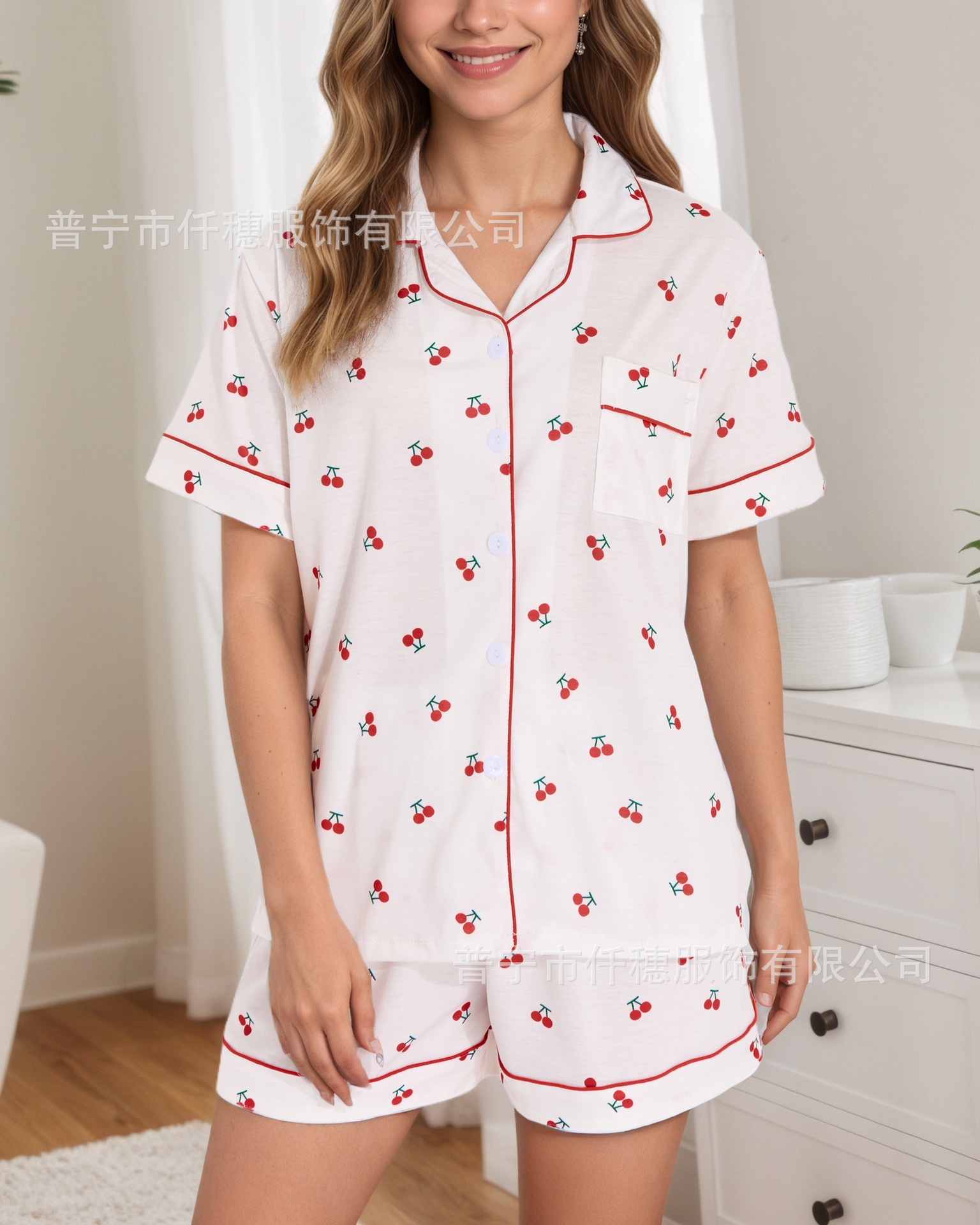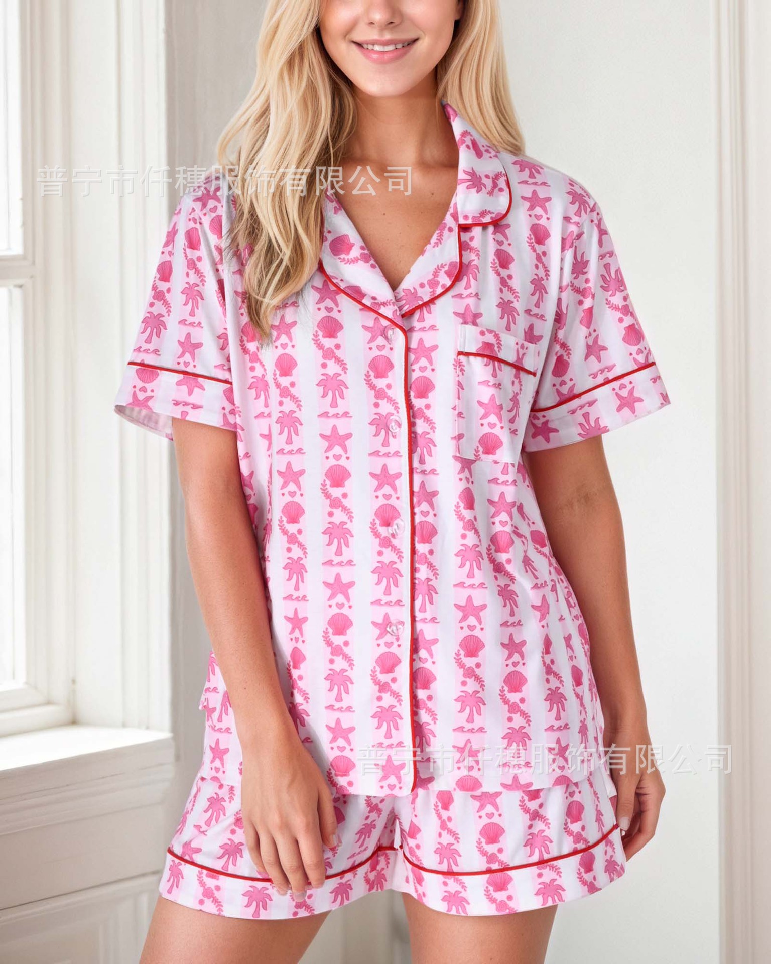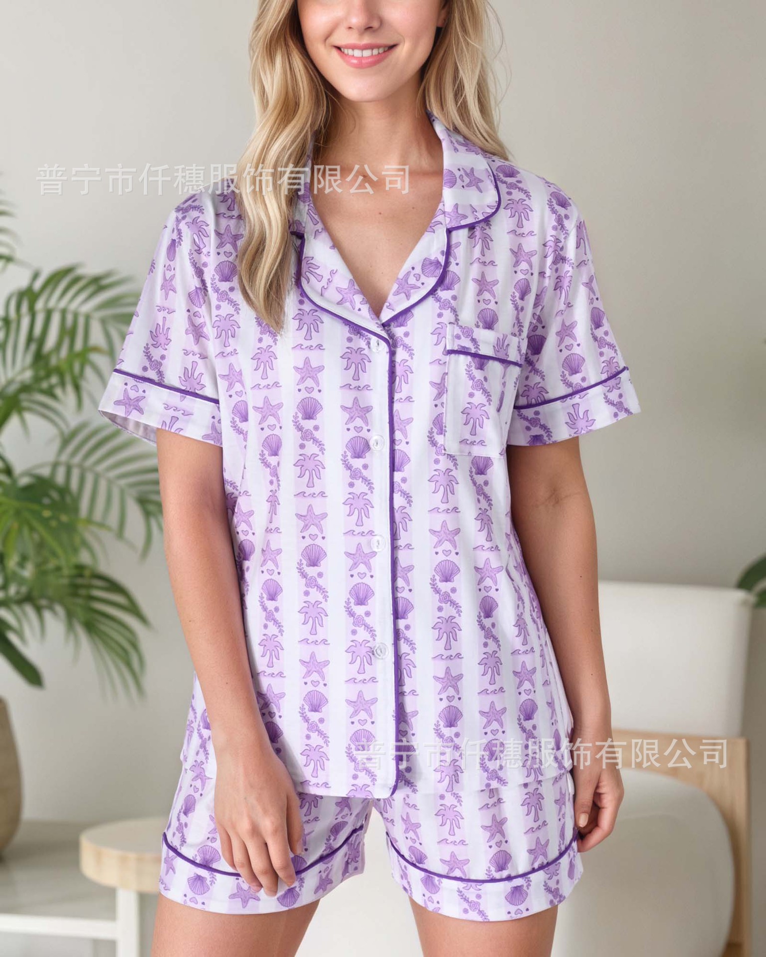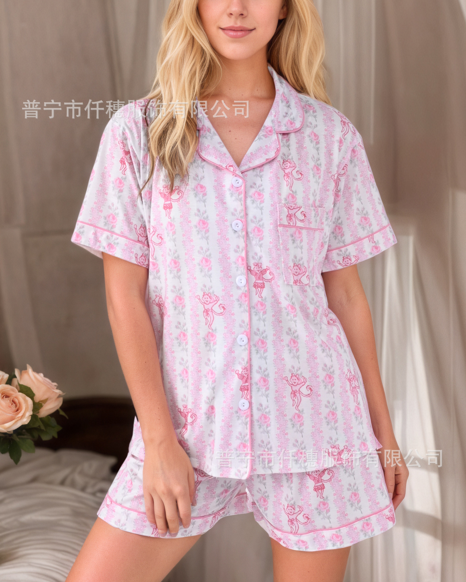 국경 간 폭발 여름 원숭이 인쇄 세트 여성 잠옷 플러스 사이즈 기질 가족 및 가족 생활 의류 아마존