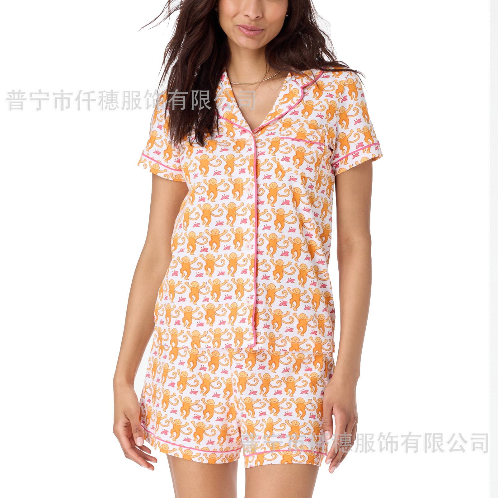 국경 간 폭발 여름 원숭이 인쇄 세트 여성 잠옷 플러스 사이즈 기질 가족 및 가족 생활 의류 아마존스토어 가기