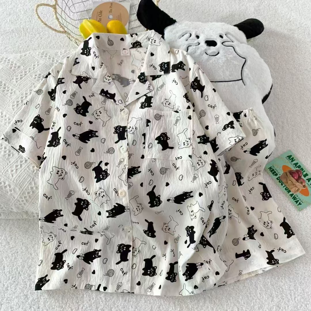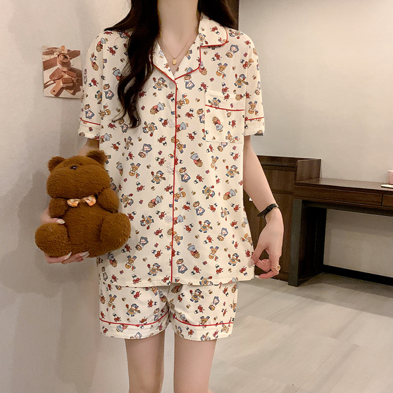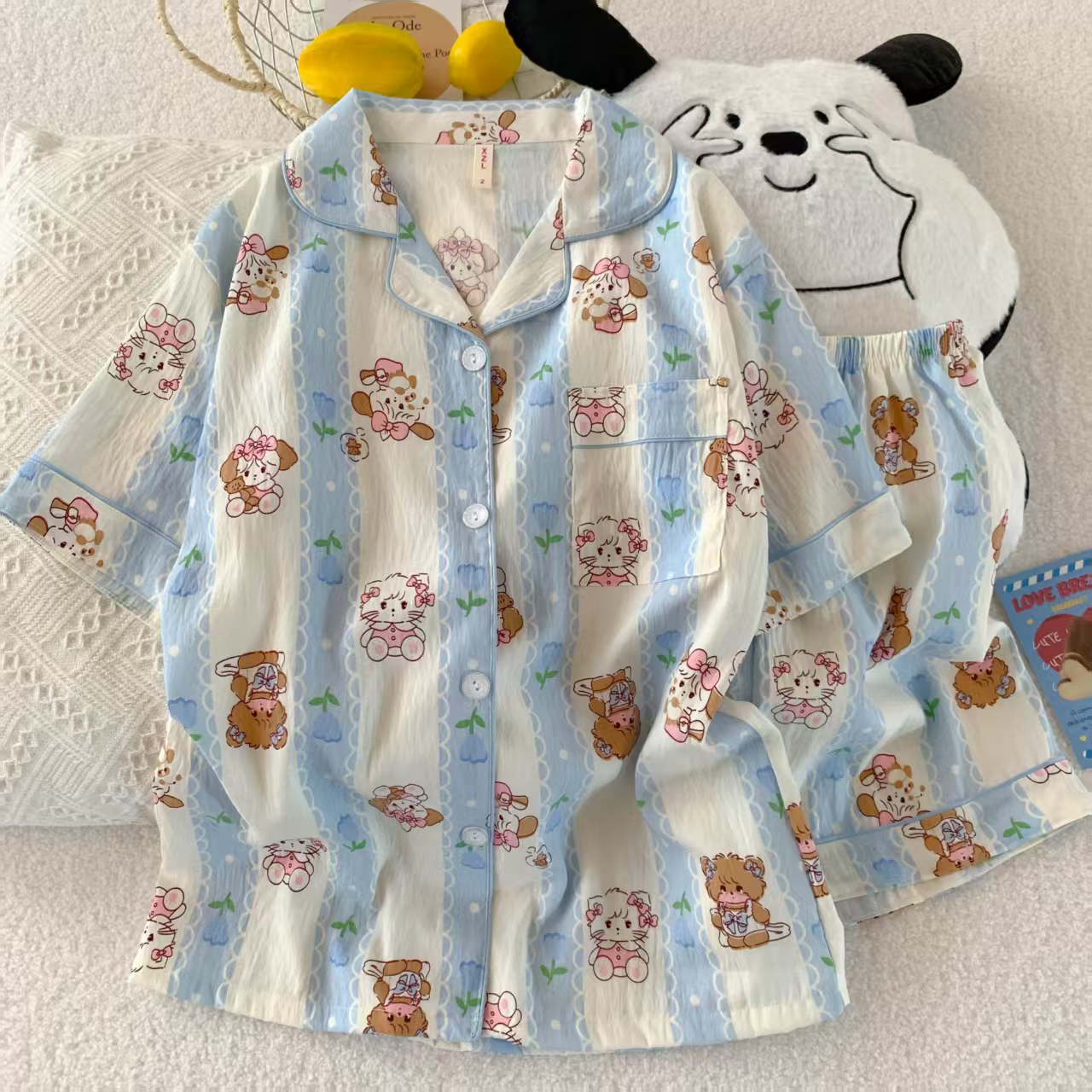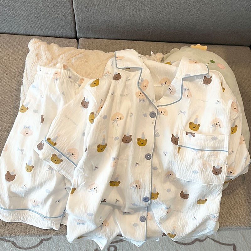 소스 공장 국경 간 폭발 여름 잠옷 여성 구름면 카디건 반팔 반바지 일본식 귀여운 스위트 홈