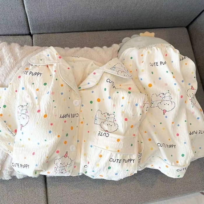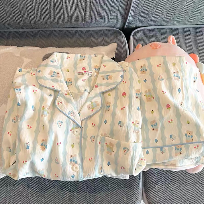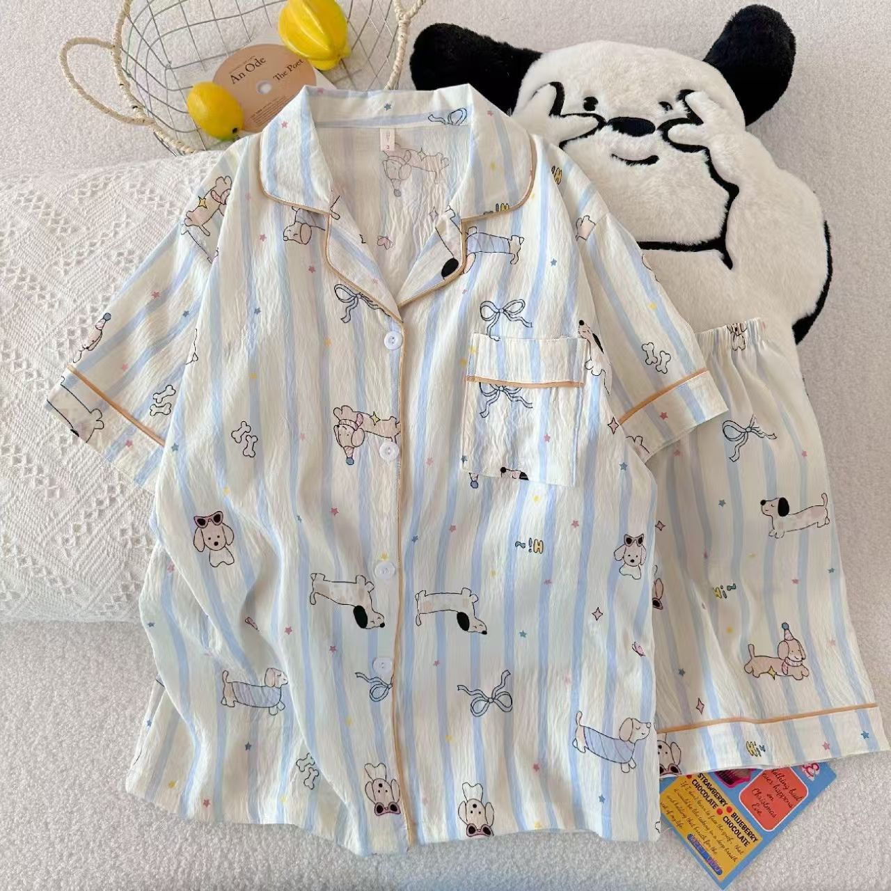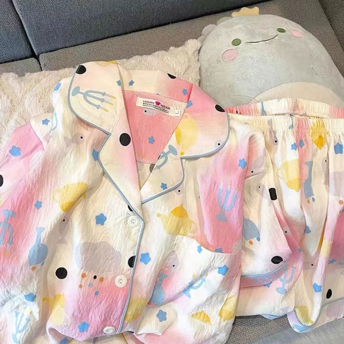 소스 공장 국경 간 폭발 여름 잠옷 여성 구름면 카디건 반팔 반바지 일본식 귀여운 스위트 홈