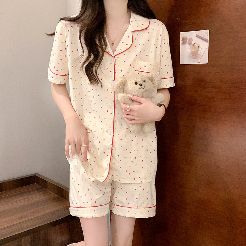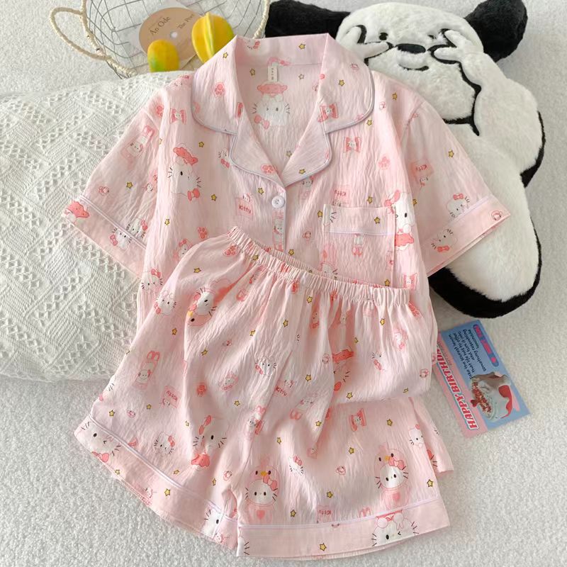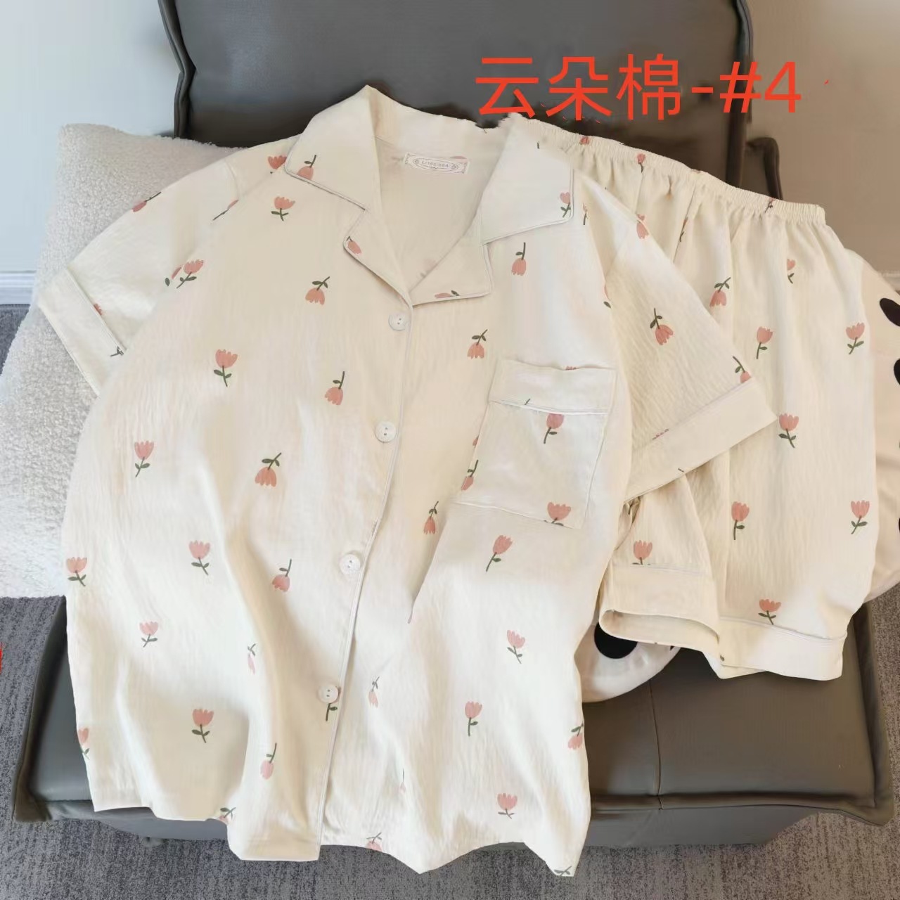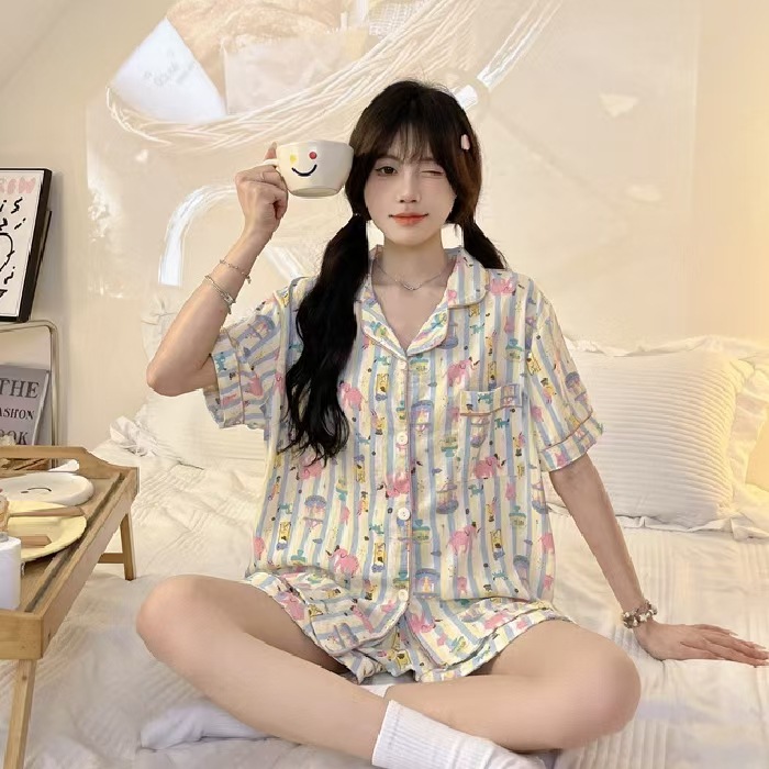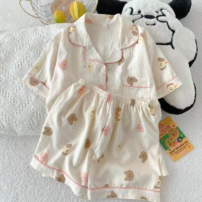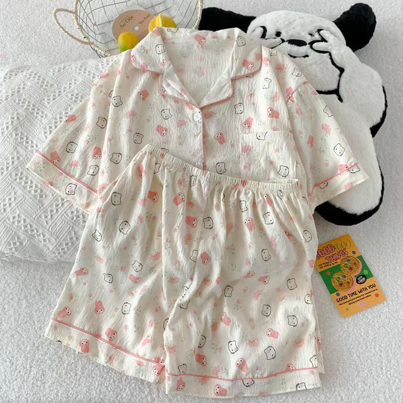 소스 공장 국경 간 폭발 여름 잠옷 여성 구름면 카디건 반팔 반바지 일본식 귀여운 스위트 홈스토어 가기