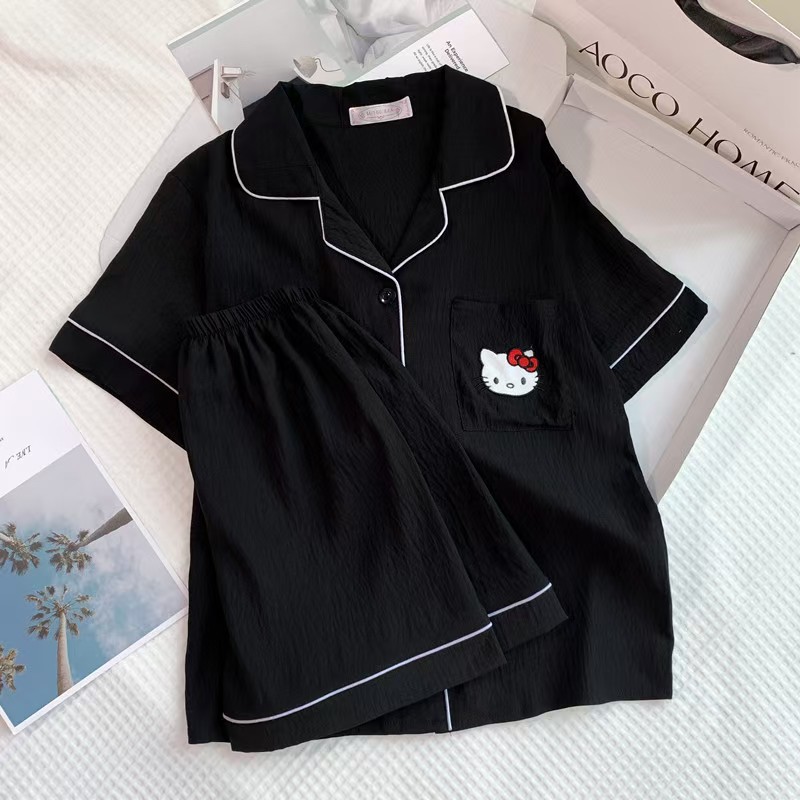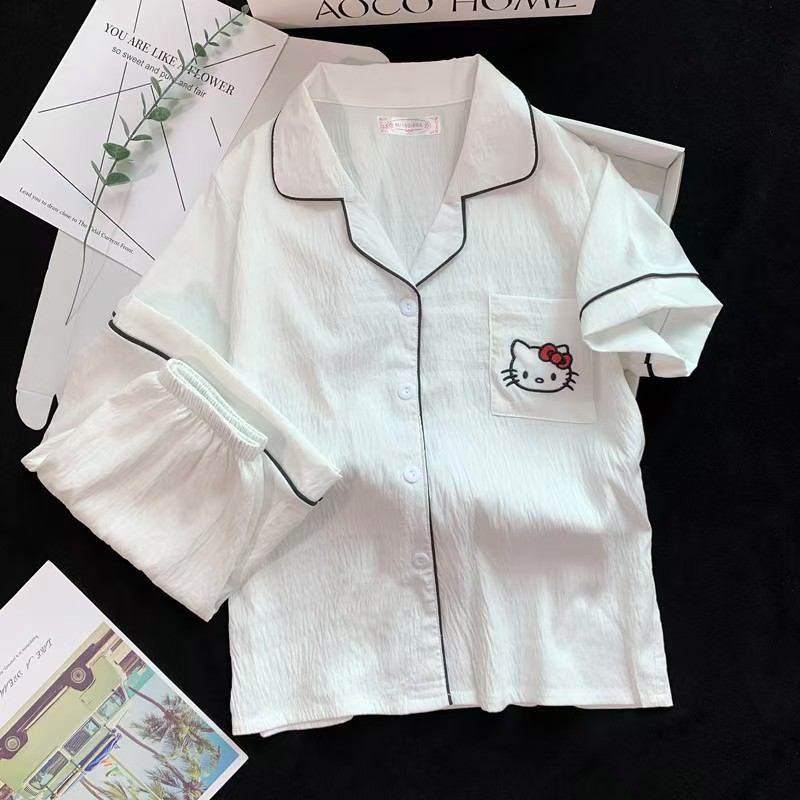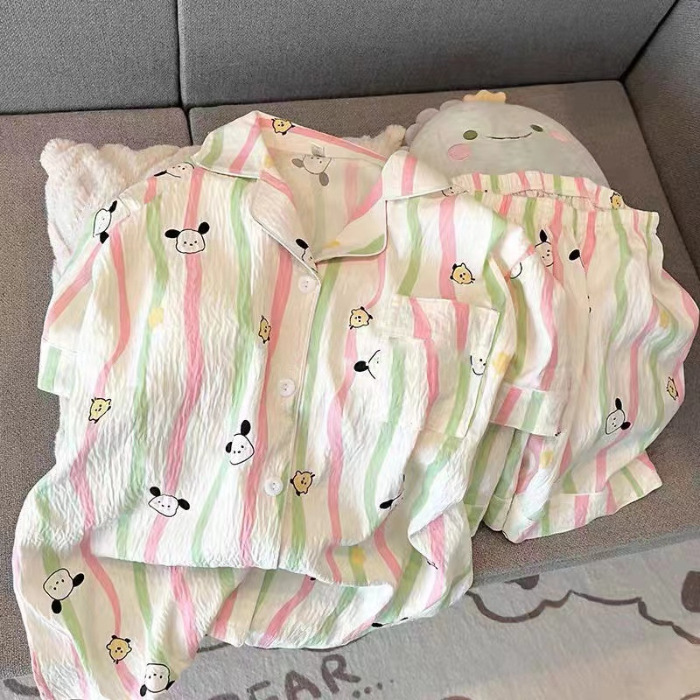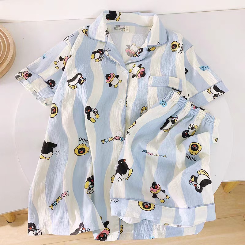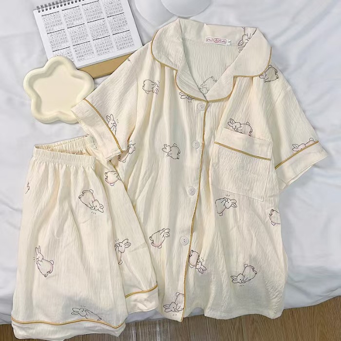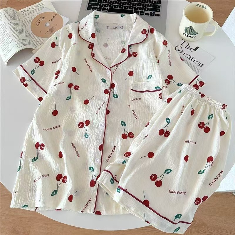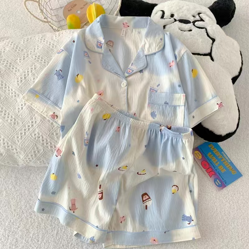 소스 공장 국경 간 폭발 여름 잠옷 여성 구름면 카디건 반팔 반바지 일본식 귀여운 스위트 홈스토어 가기