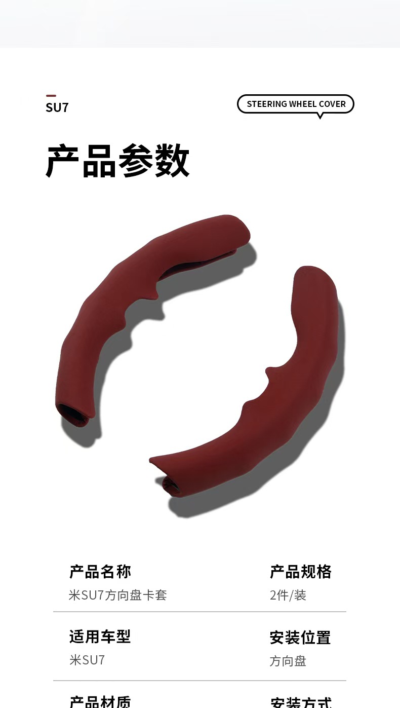 • 무광 가죽 트와일라잇 레드 미 SU7 핸들 1쌍