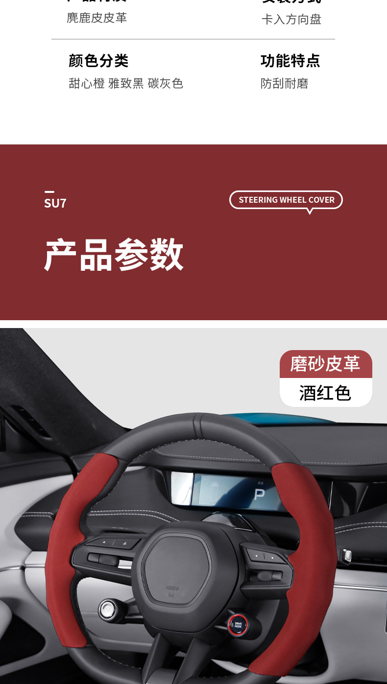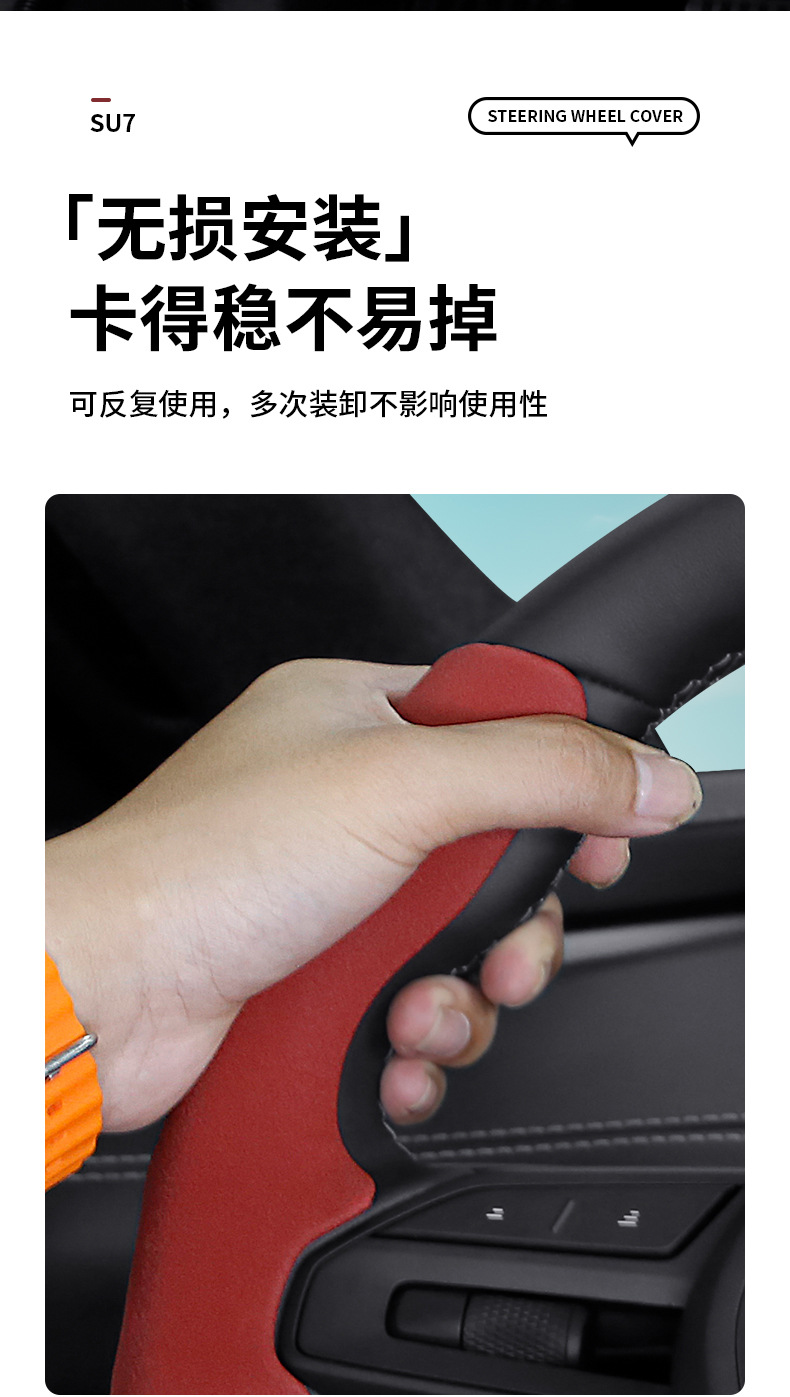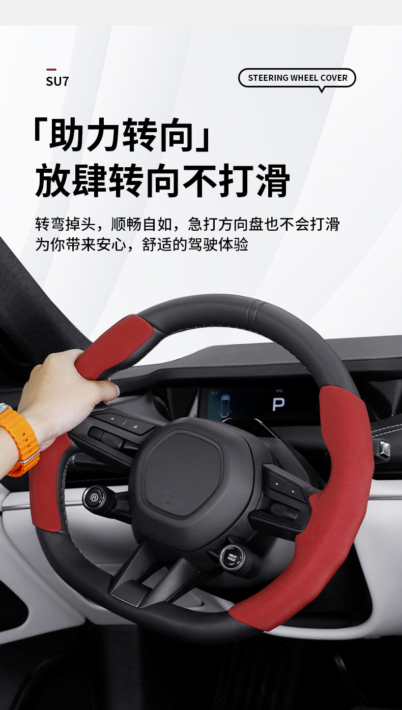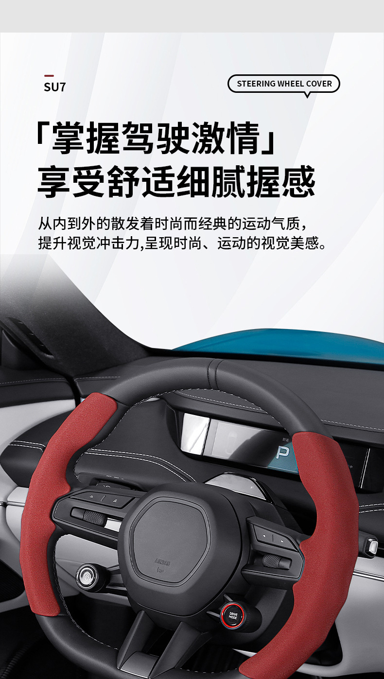 기장 SU7 스포츠 땀 흡수 카드 세트 자동차 핸들 세트 사계절 유니버설 스웨이드 자동차 스티어링 휠 세트에 적합스토어 가기