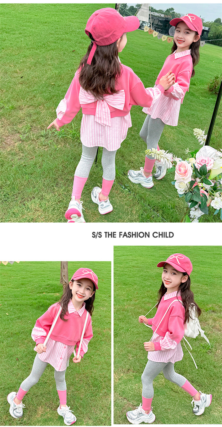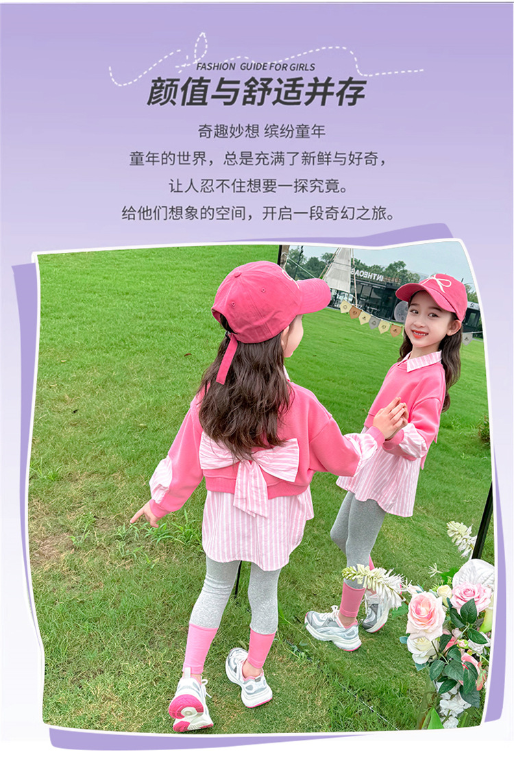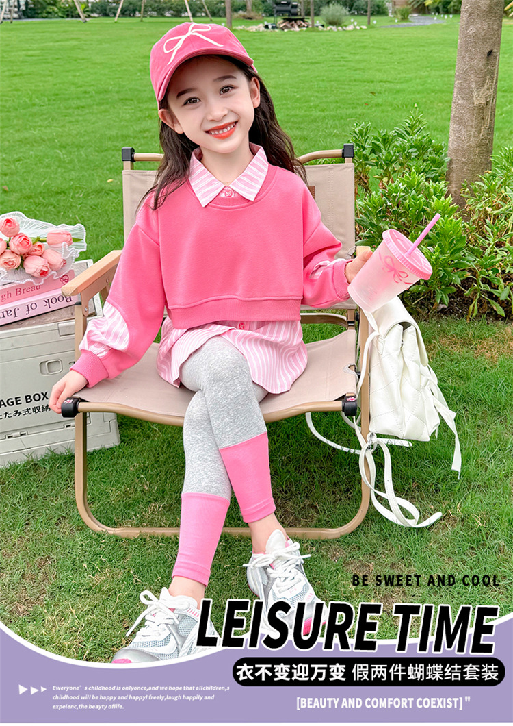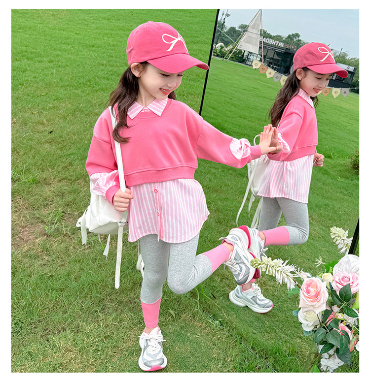 소녀 세트 봄과 가을 2024 새로운 패션 어린 소녀 스포츠 다시 활 가짜 두 조각 세트스토어 가기