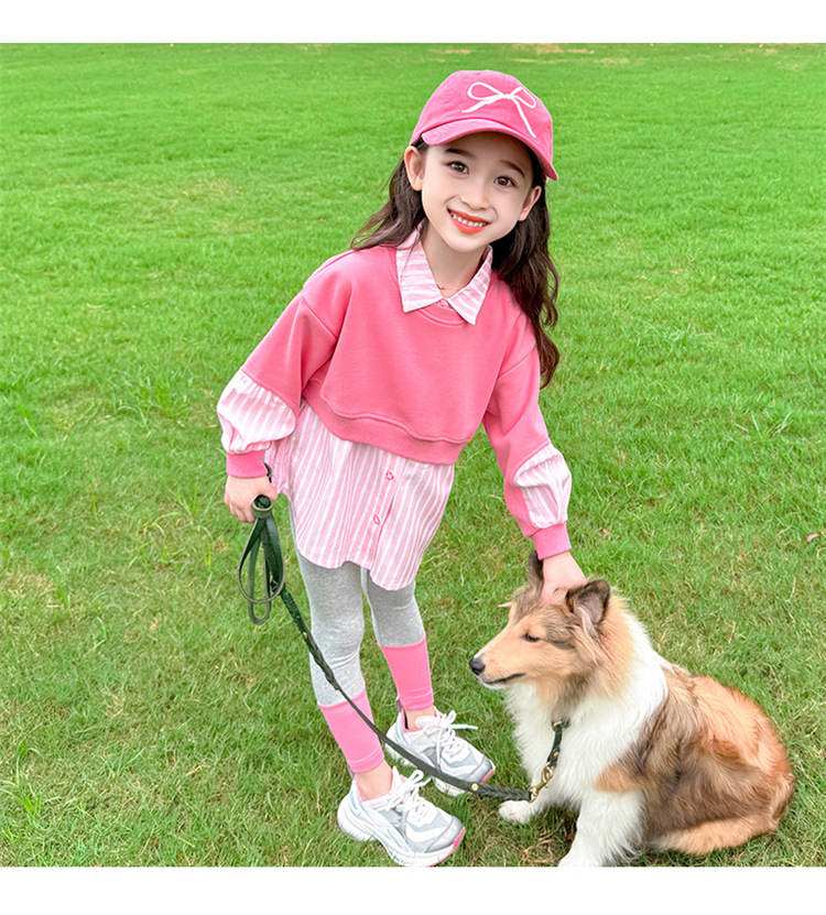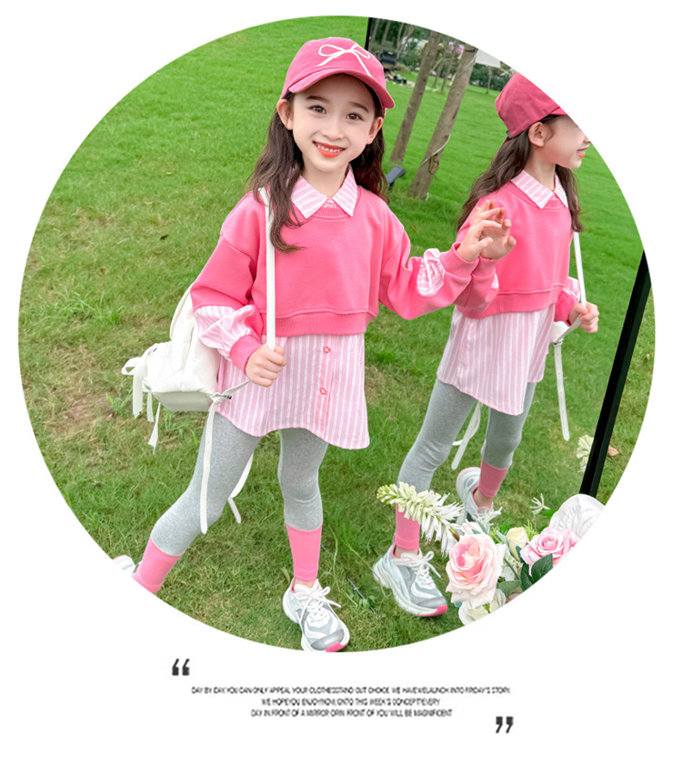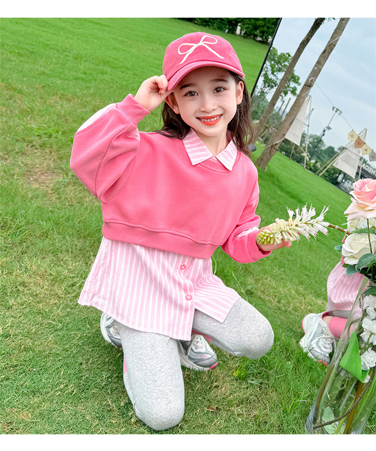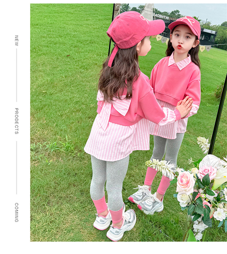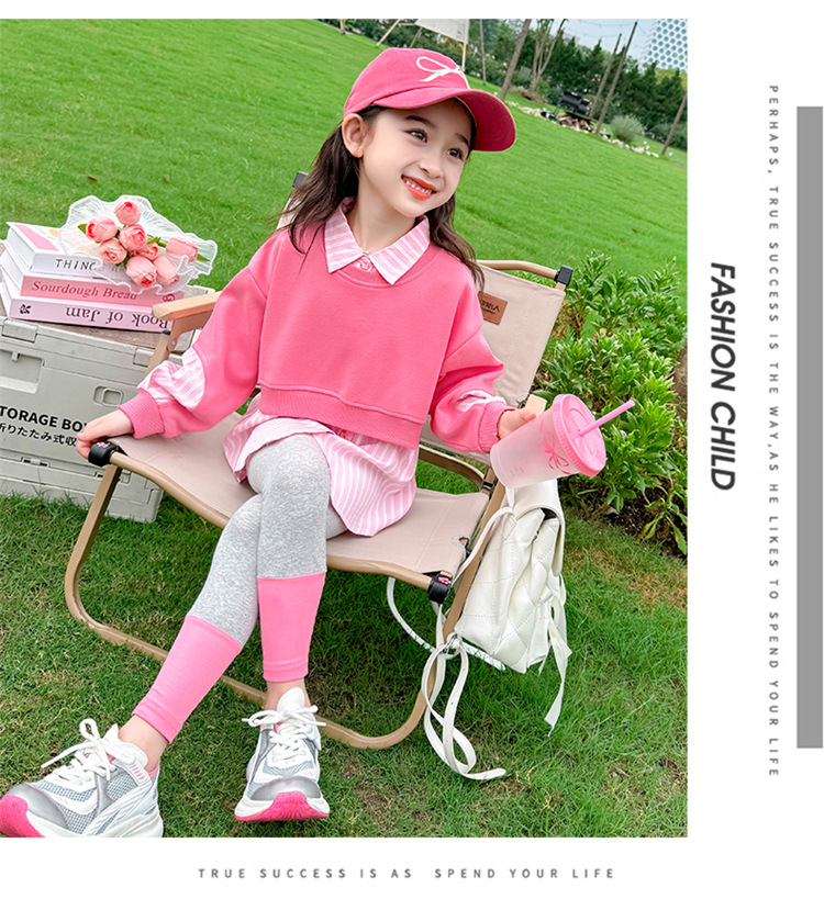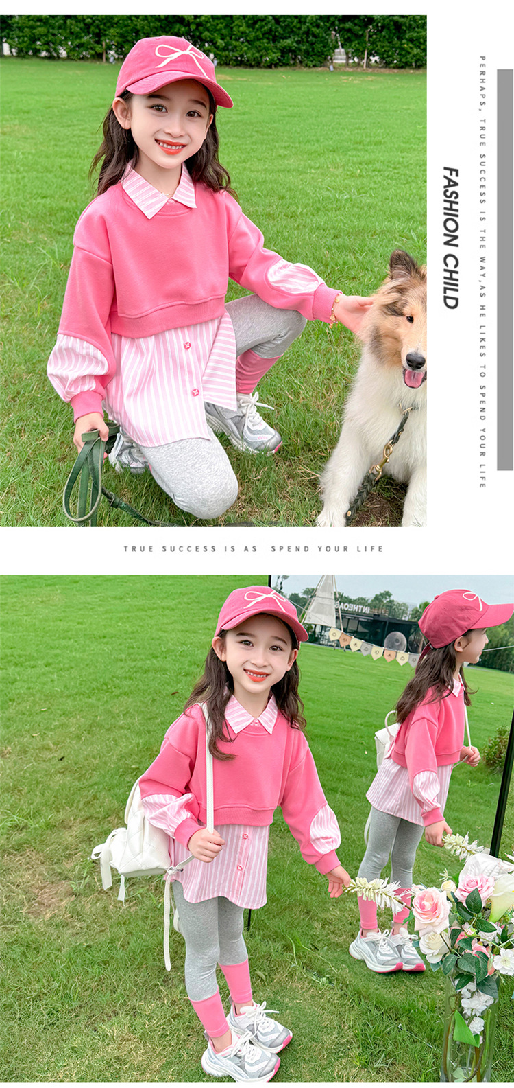 소녀 세트 봄과 가을 2024 새로운 패션 어린 소녀 스포츠 다시 활 가짜 두 조각 세트스토어 가기