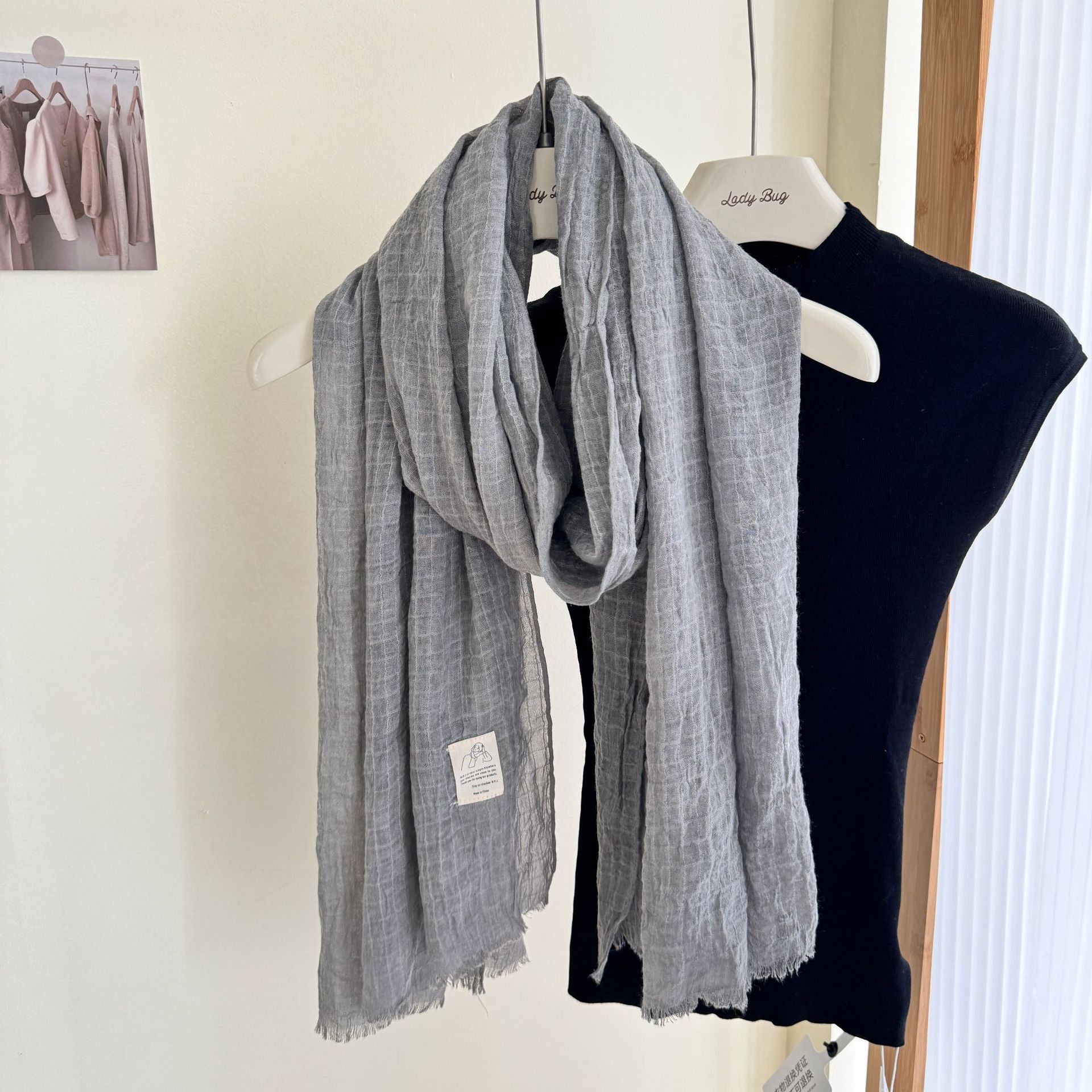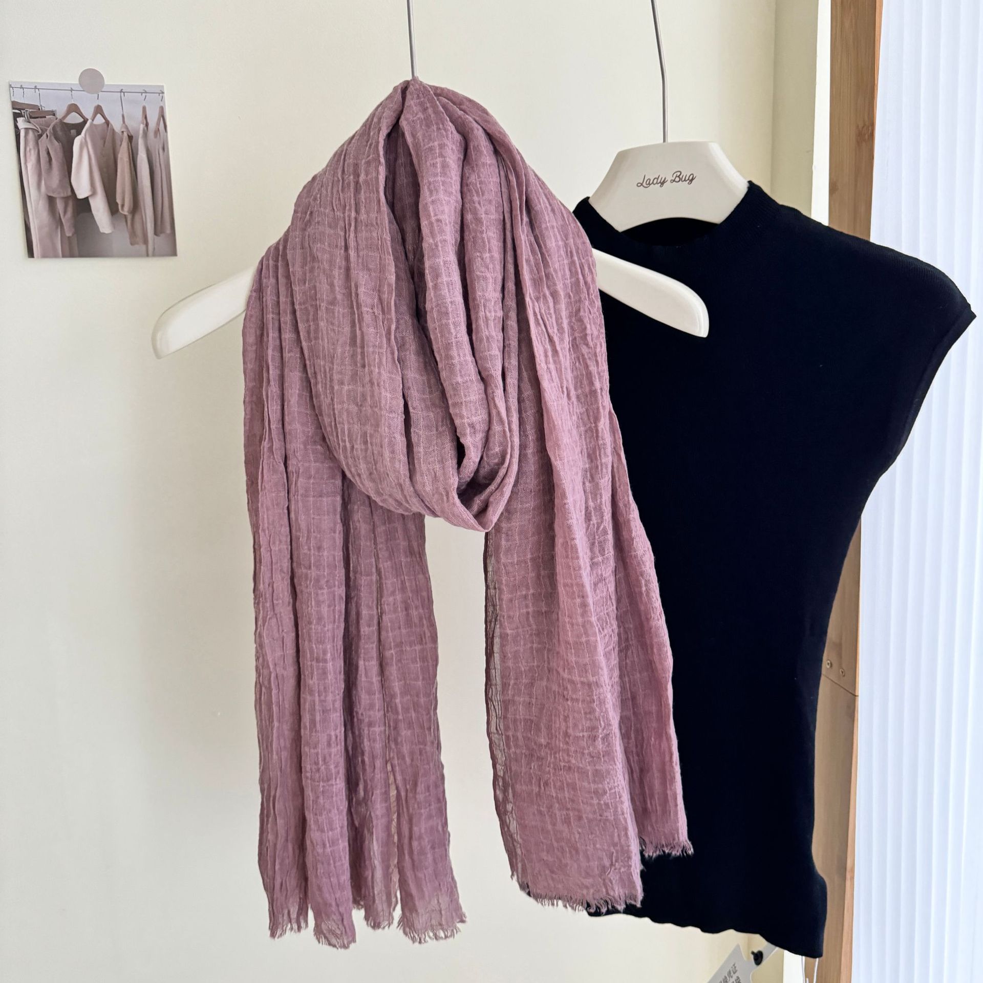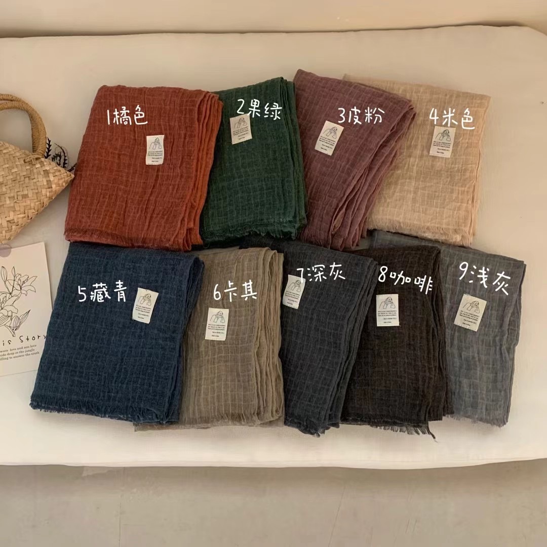 주름 와플 질감 면화와 리넨 스카프 여성의 봄과 가을 얇은 단색 면 거즈 목도리 이중 목적 긴 겨울스토어 가기