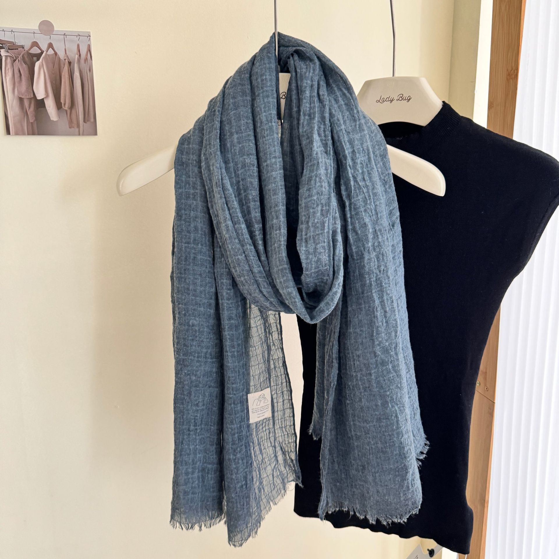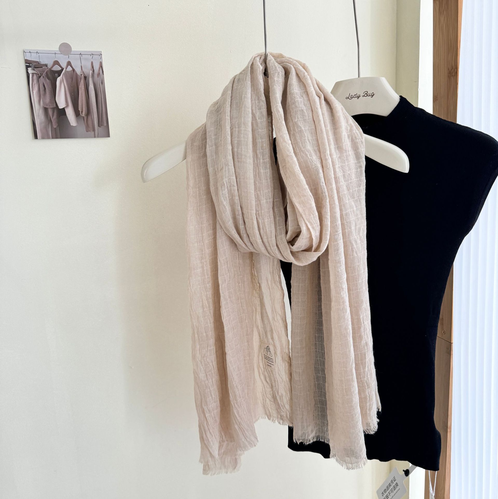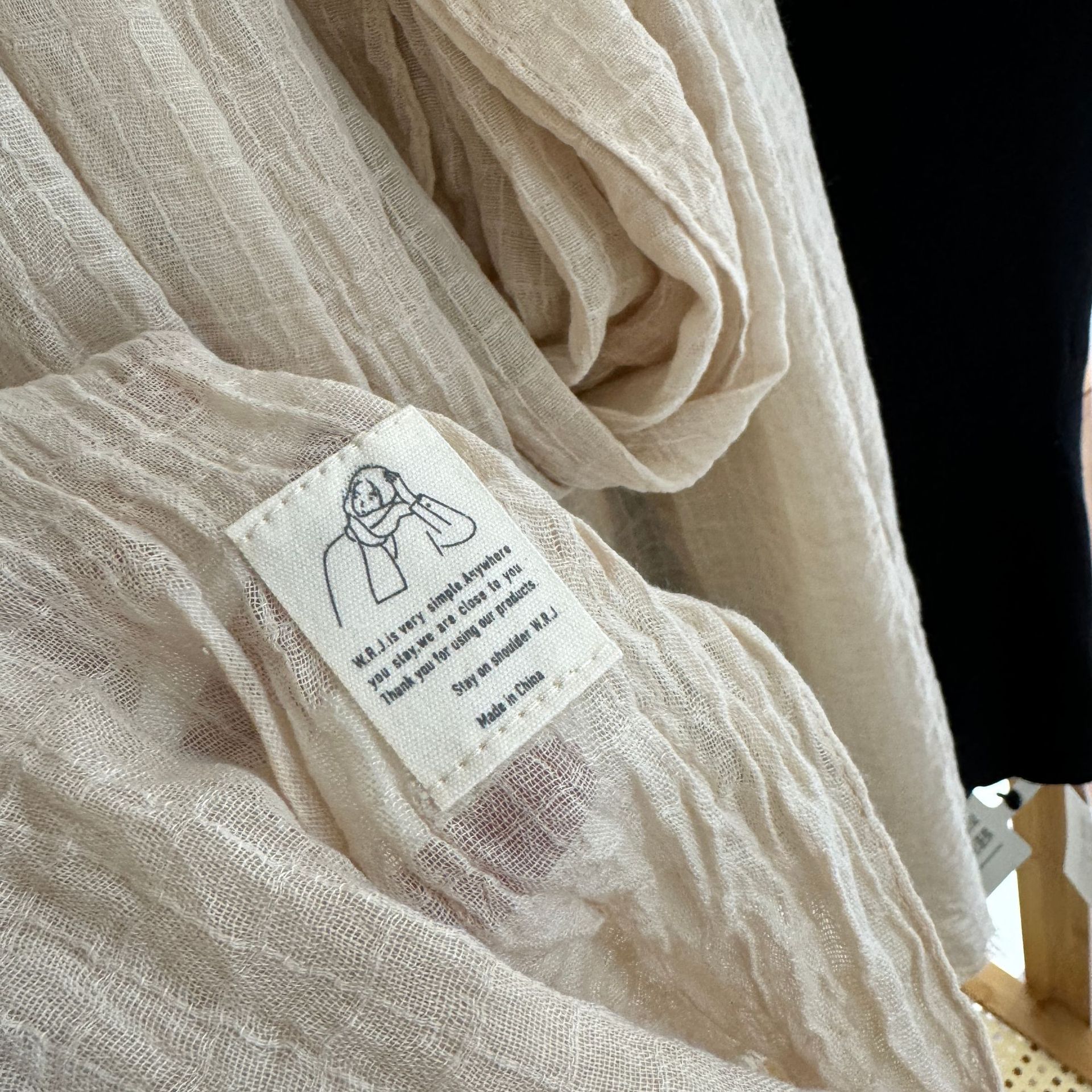 주름 와플 질감 면화와 리넨 스카프 여성의 봄과 가을 얇은 단색 면 거즈 목도리 이중 목적 긴 겨울스토어 가기