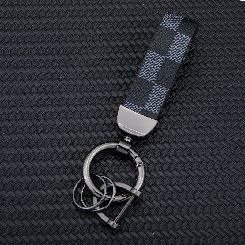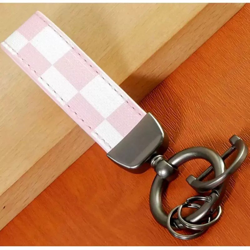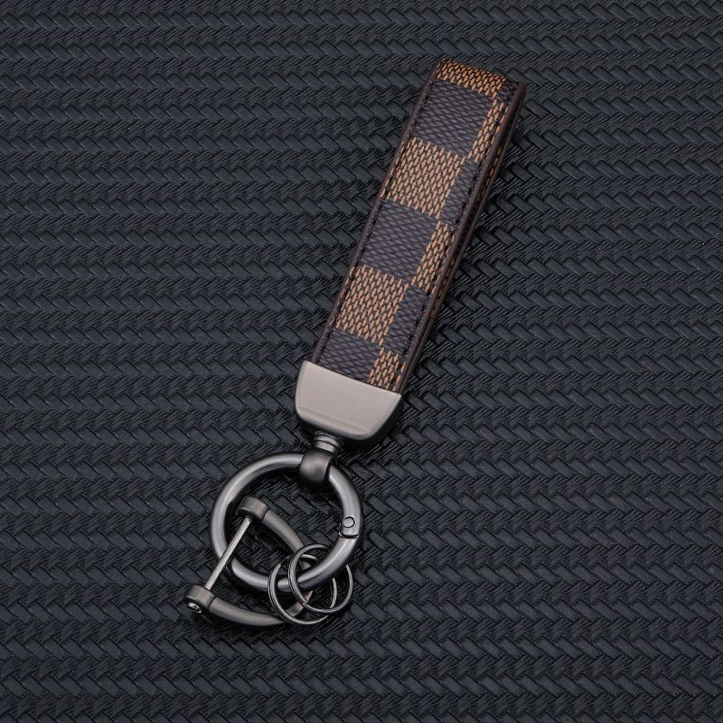 자동차 키 체인 가죽 체크 무늬 패턴 가죽 창조적 인 패션 남성과 여성 가죽 로프 강한 키 체인 펜던트 도매