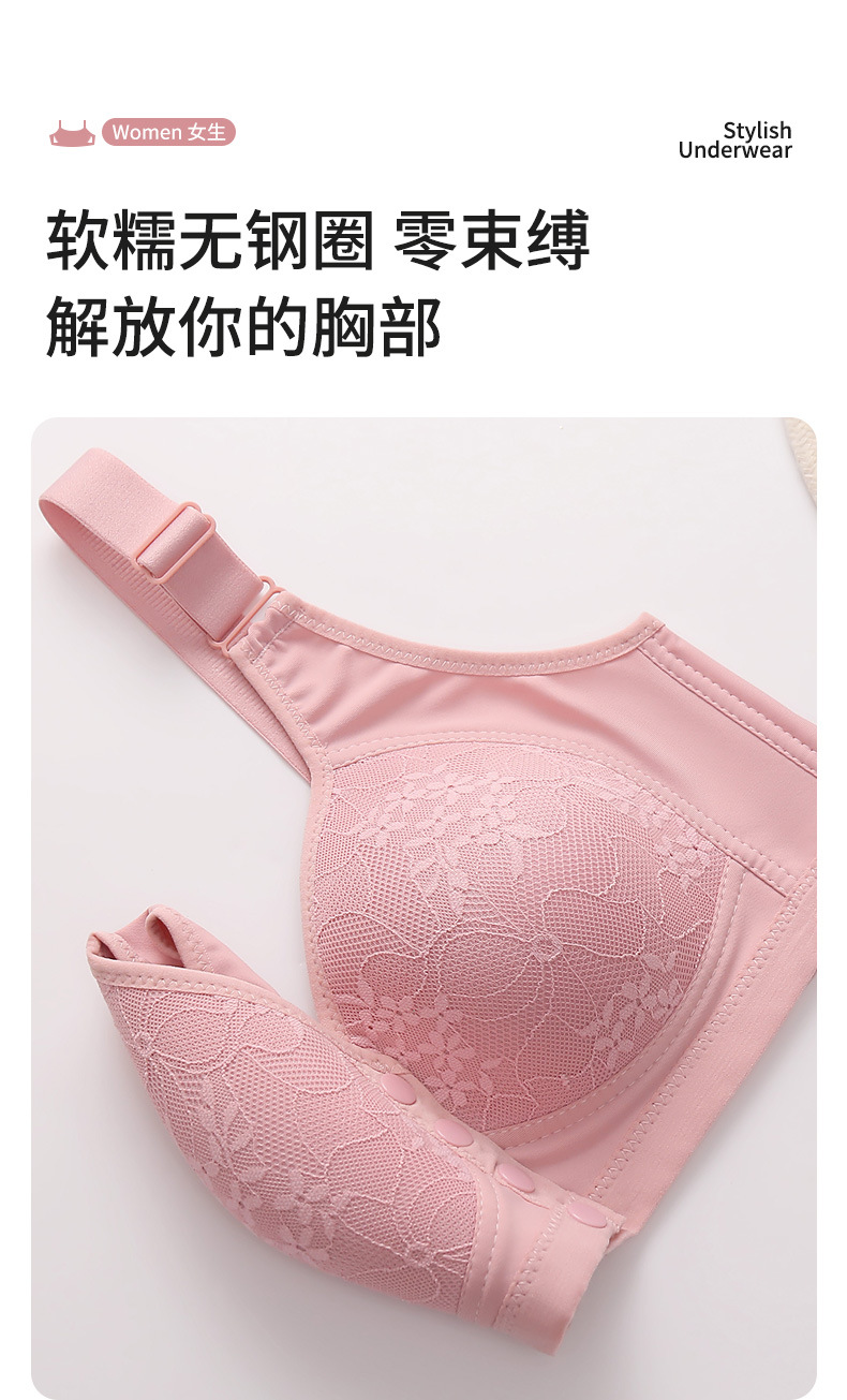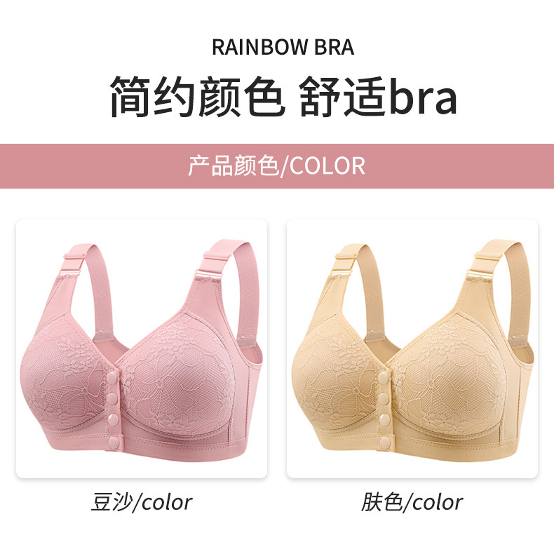 새로운 고정 컵 프론트 오픈 버클 브라 중년 및 노인 어머니의 아름다운 등 반지가없는 처짐 방지 여성용 브래지어
