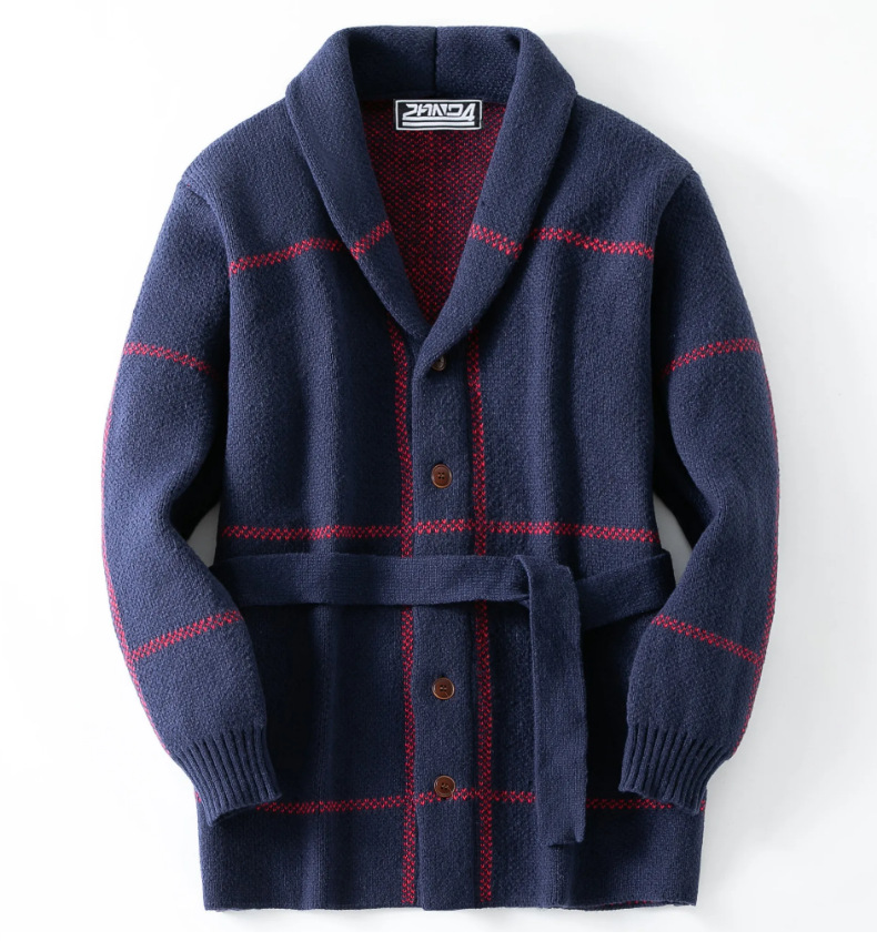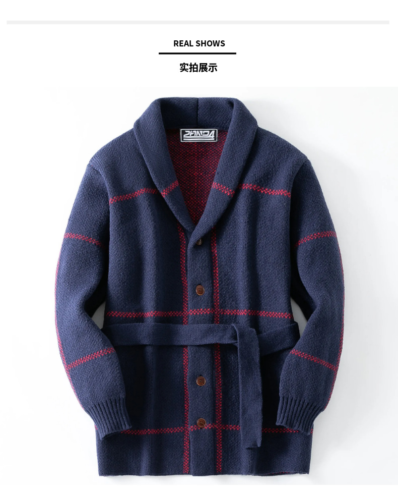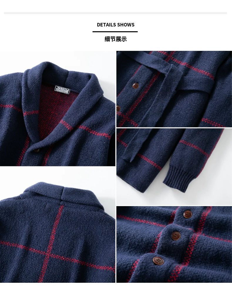 크로스보더 남성복 유럽 및 미국 스타일 레트로 라인 자카드 니트 중간 길이 두꺼운 가디건 스웨터 SY0026