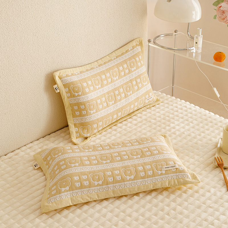 优点:三层纱 (三层夹棉织造、蓬松柔软、清薄透气、吸湿性好)