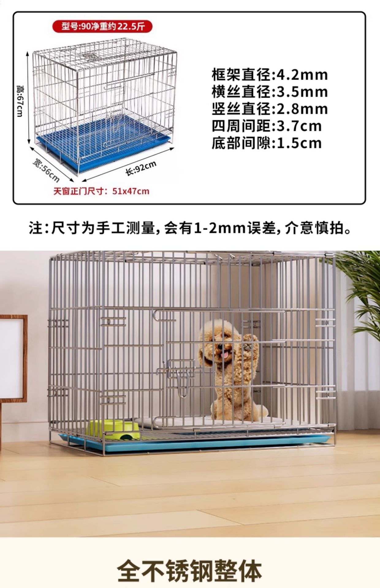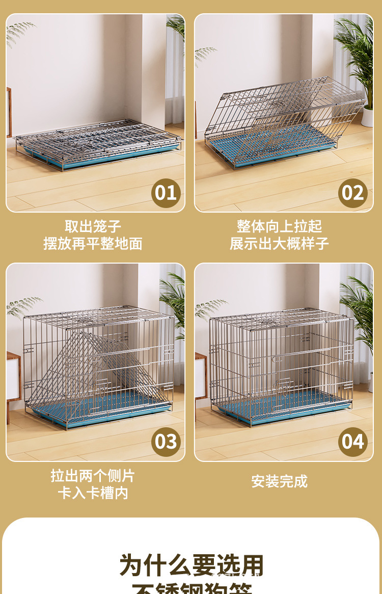 304 스테인레스 스틸 접이식 애완 동물 개 케이지 실내 대담한 암호화 트레이 소형 및 중형 화장실 테디 Bixiong Bo스토어 가기