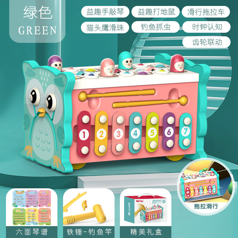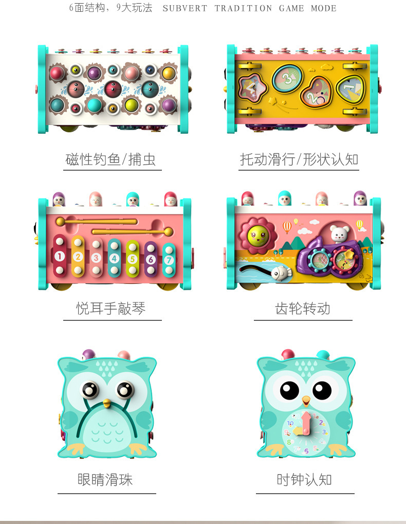 국경을 넘는 어린이 조기 교육용 올빼미 낚시, 두더지 잡기 게임, 타악기, 다기능 6면체 인터랙티브 장난감, 음악스토어 가기
