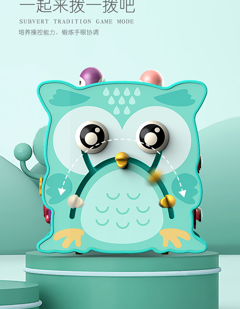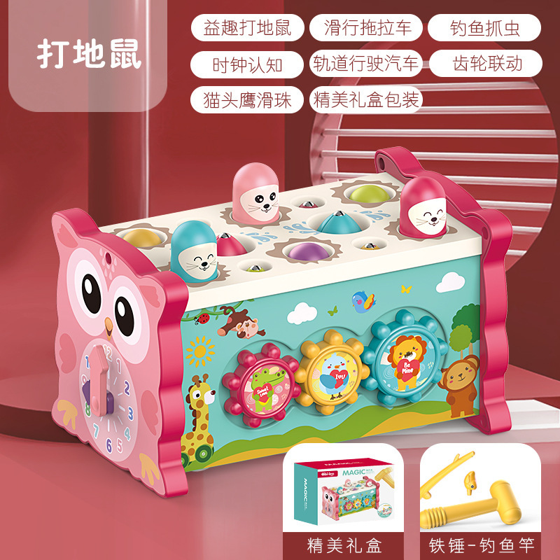 국경을 넘는 어린이 조기 교육용 올빼미 낚시, 두더지 잡기 게임, 타악기, 다기능 6면체 인터랙티브 장난감, 음악