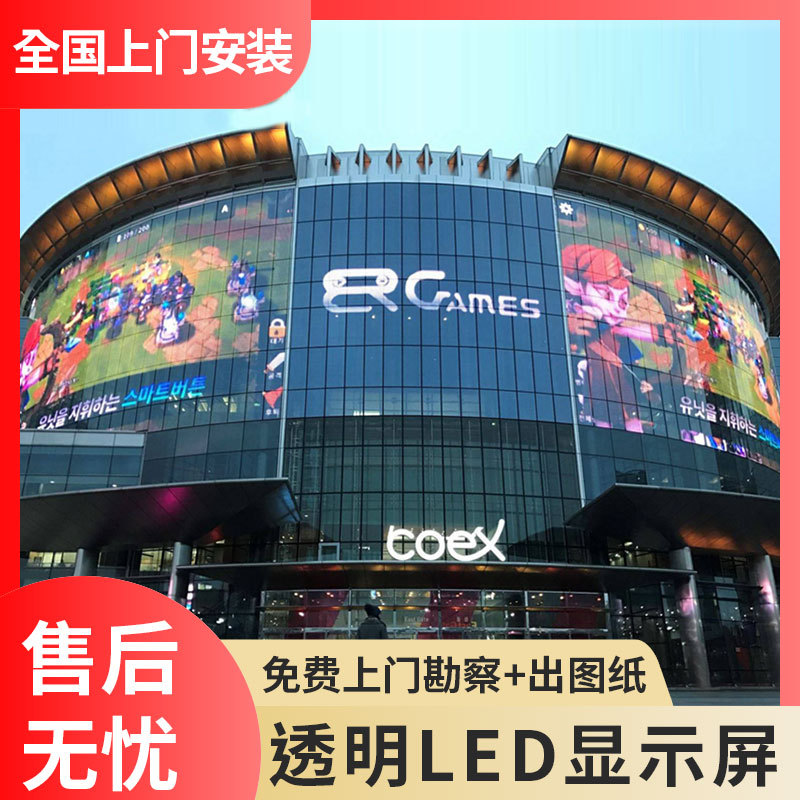 LED 투명 스크린 풀 컬러 유리 커튼 월 스크린 고화질 크리스탈 필름 스크린 투명 창 접합 방수 야외 그리드 화면스토어 가기