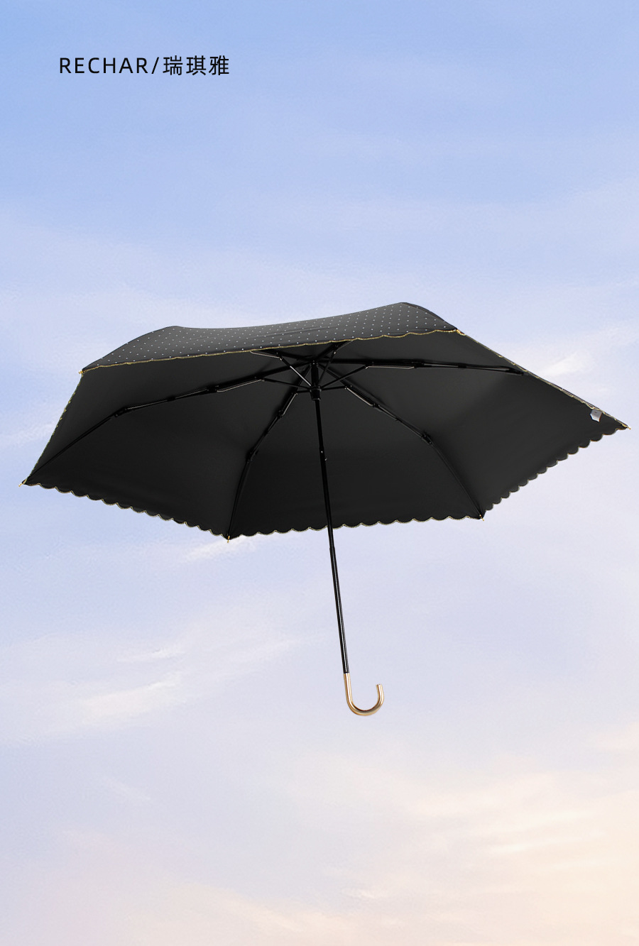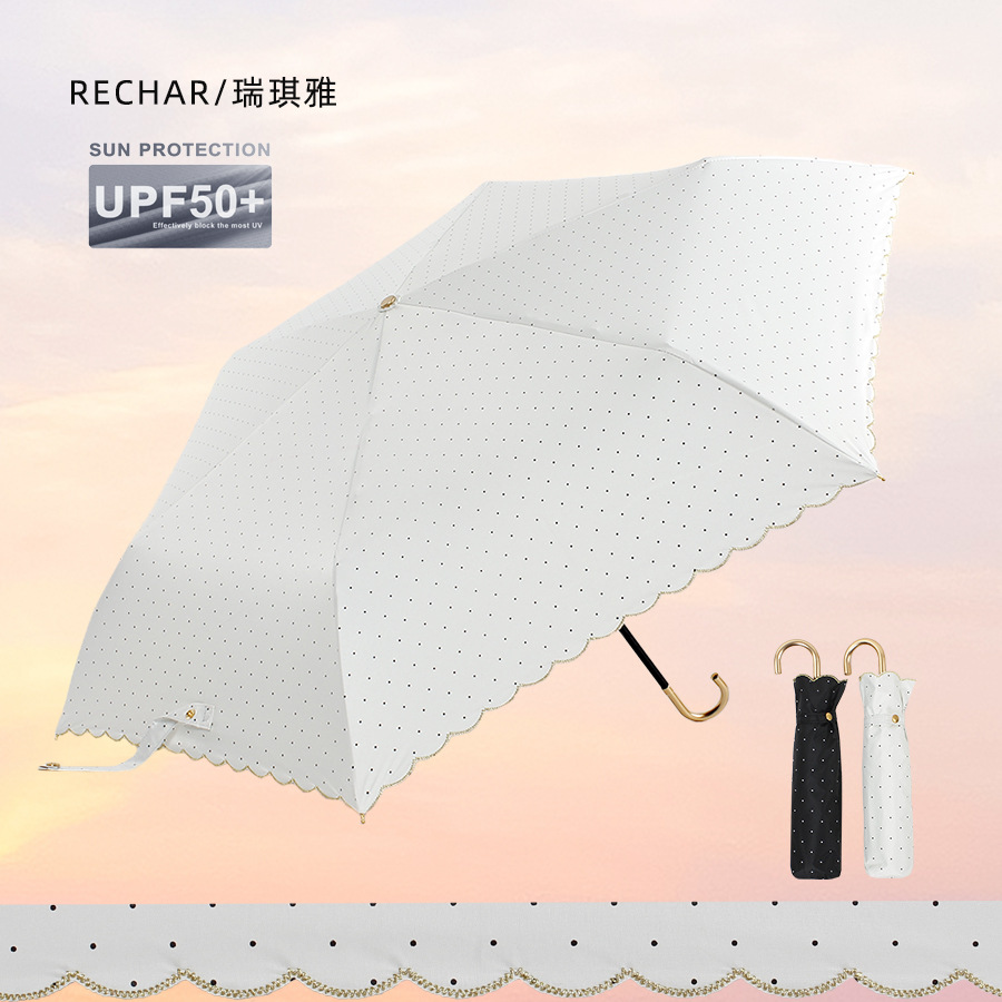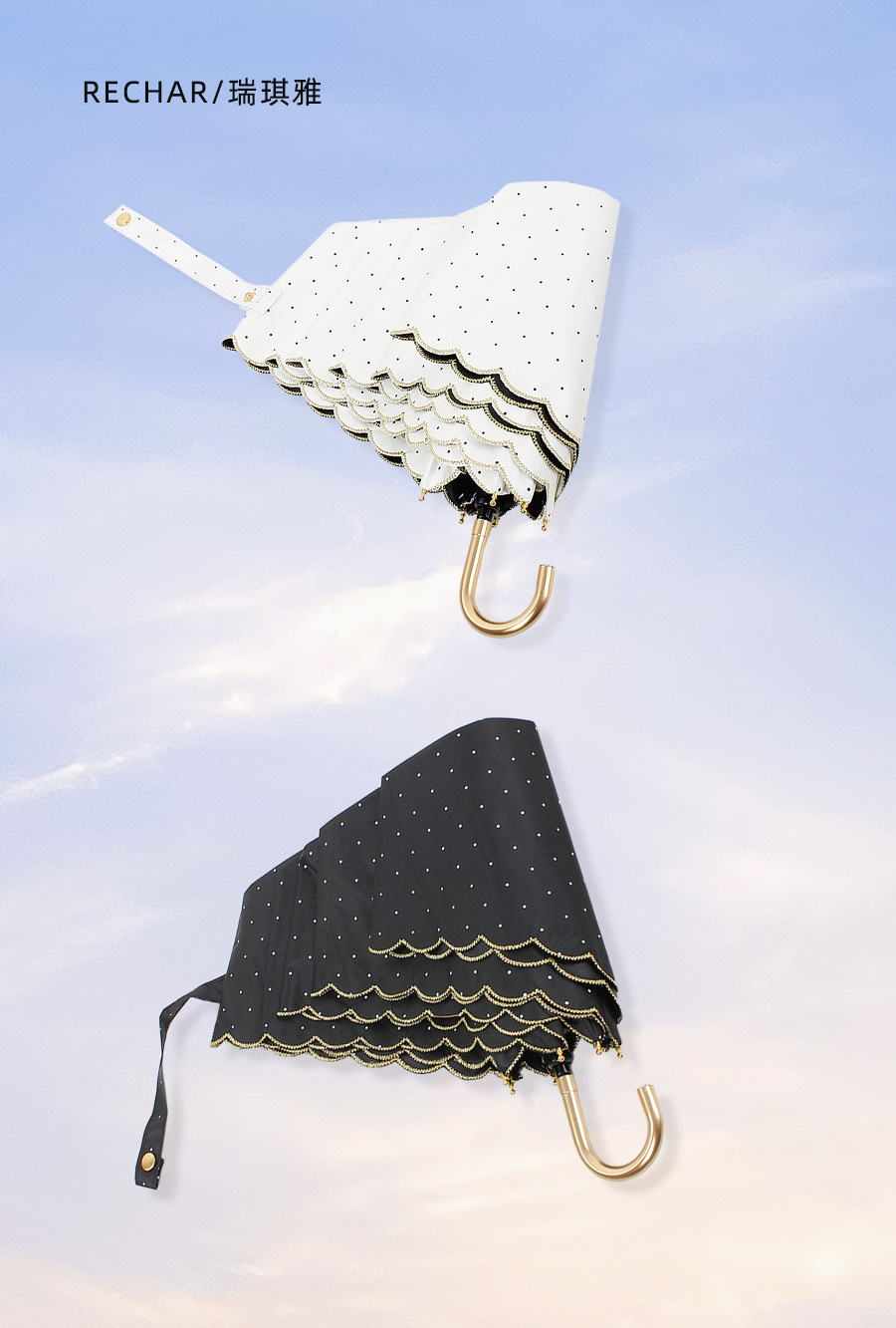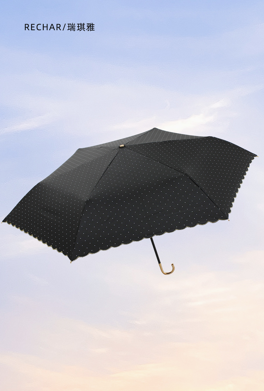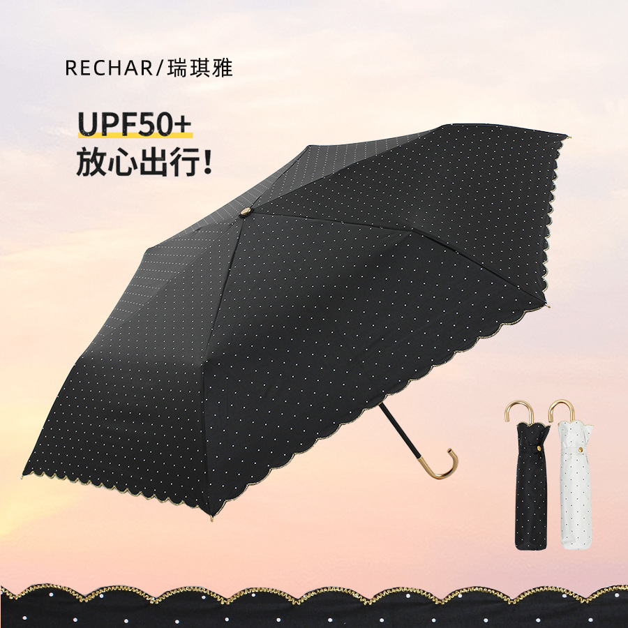 일본식 슈퍼 라이트 포인트 자수 곡선 핸들 우산 블랙 접착제 안티-자외선 미니 우산 선 스크린 이중 목적 양산 우산스토어 가기