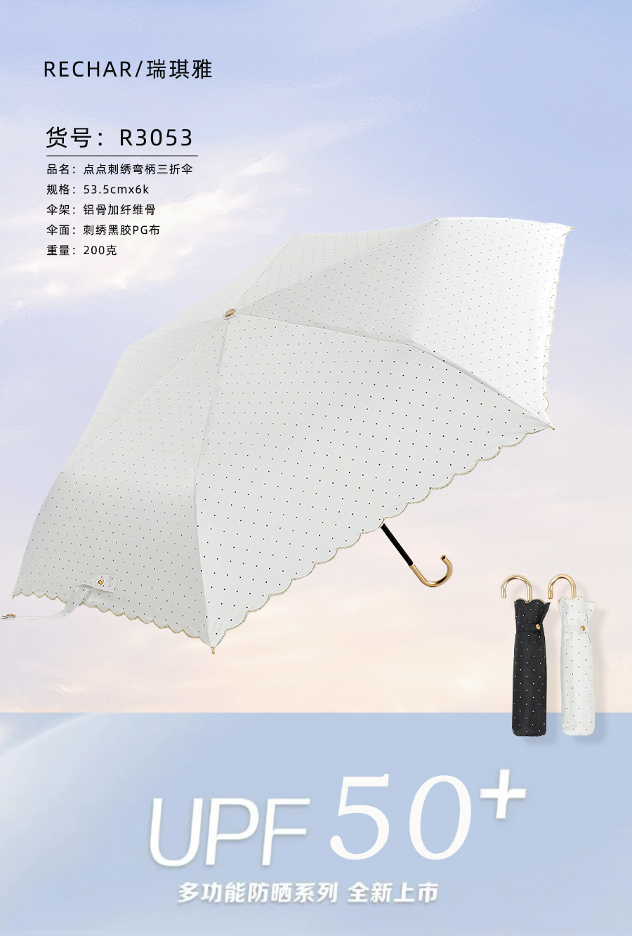 일본식 슈퍼 라이트 포인트 자수 곡선 핸들 우산 블랙 접착제 안티-자외선 미니 우산 선 스크린 이중 목적 양산 우산