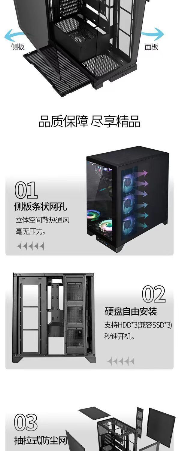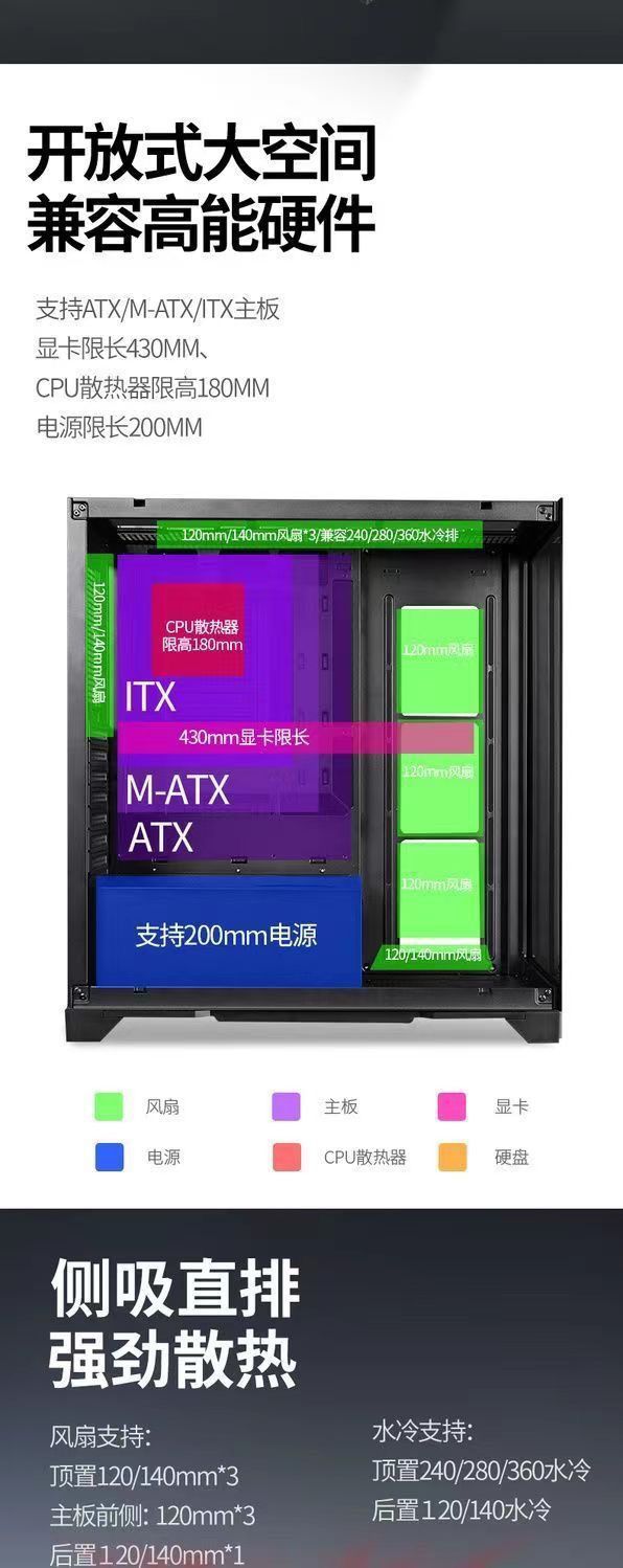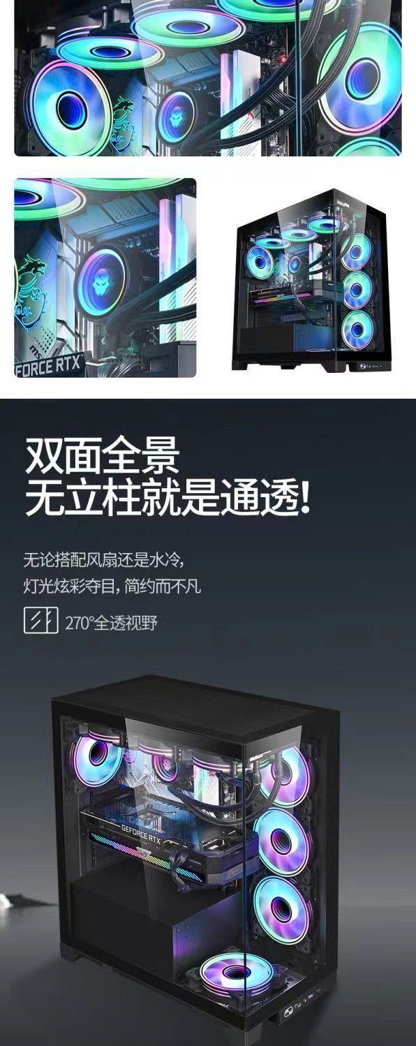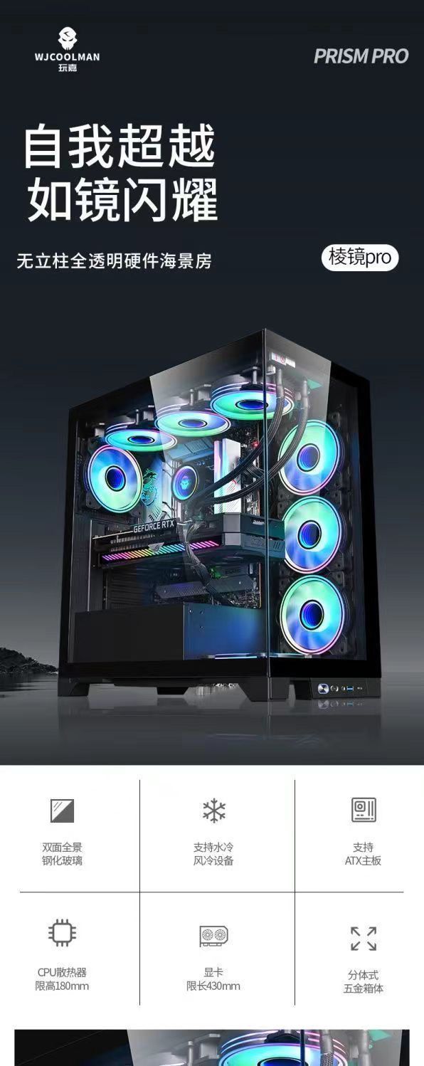 棱镜PRO海景房机箱无立柱MATX全景侧透240/360水冷台式电脑主机箱
