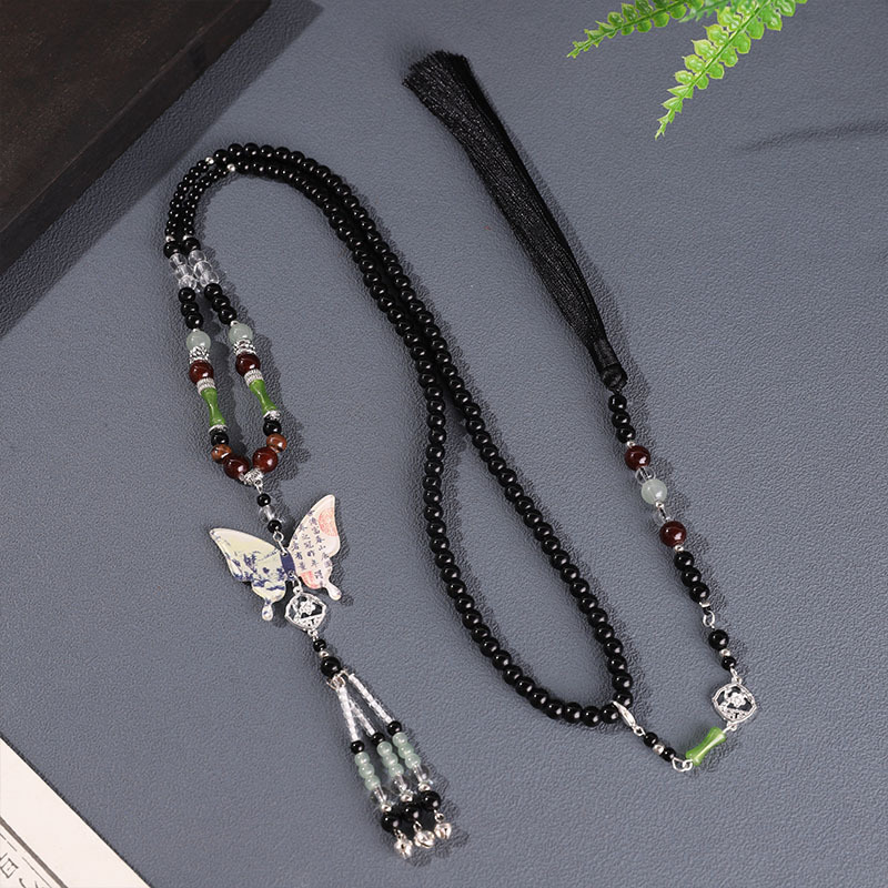 • 검은 구슬 나비 목걸이 + 구름 뒤에
