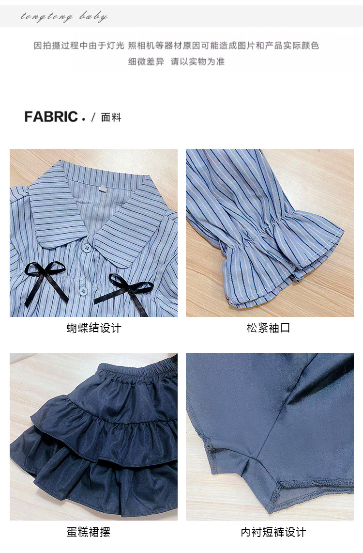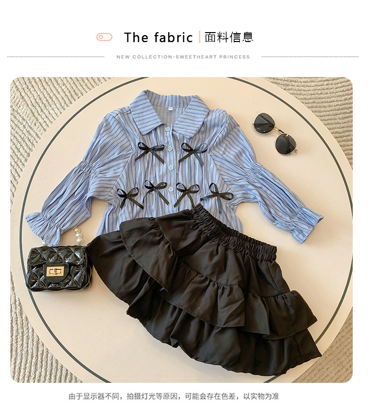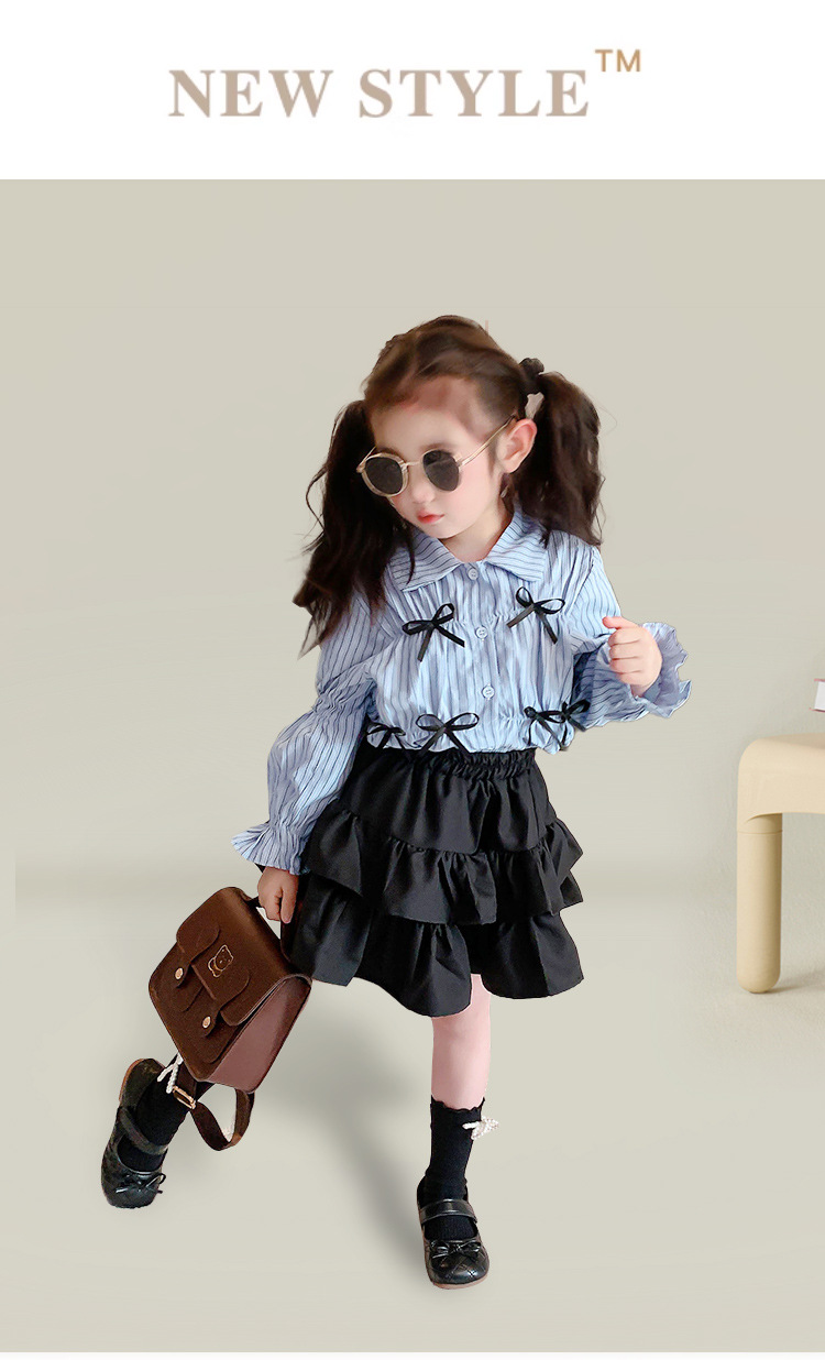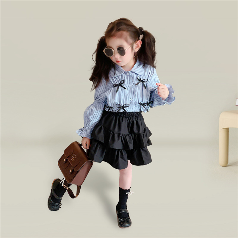 • 블랙 2겹 스커트 + 블루 스트라이프 나비 셔츠