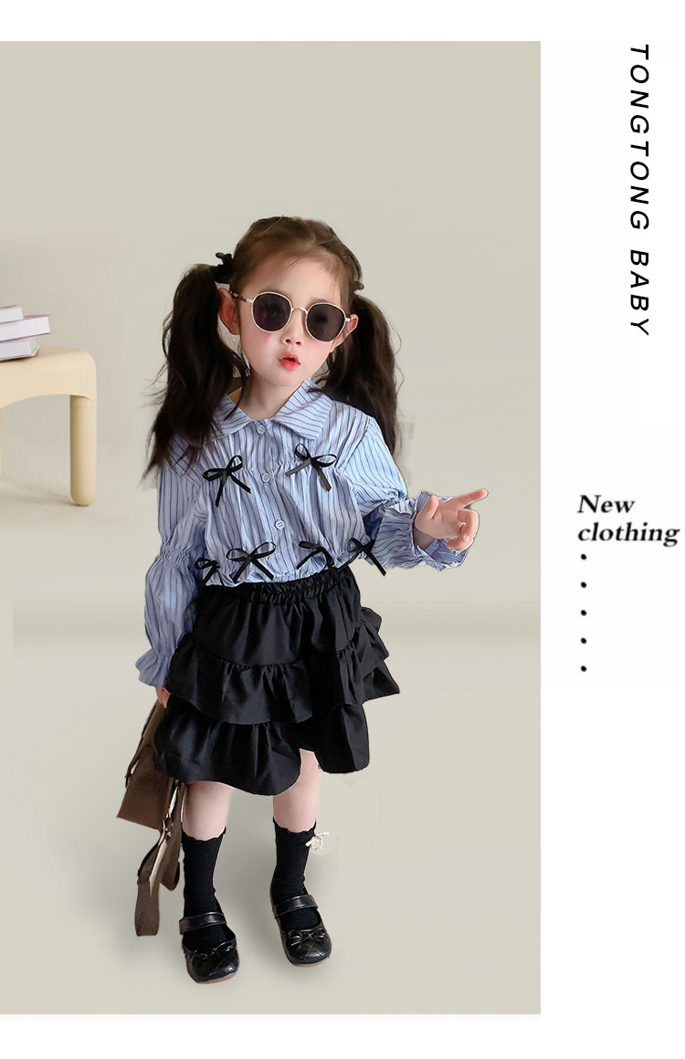 2024년 신상 유행 여아 셔츠 세트 긴팔 아동 봄 가을 셔츠 패셔너블 상의 가을 트렌드