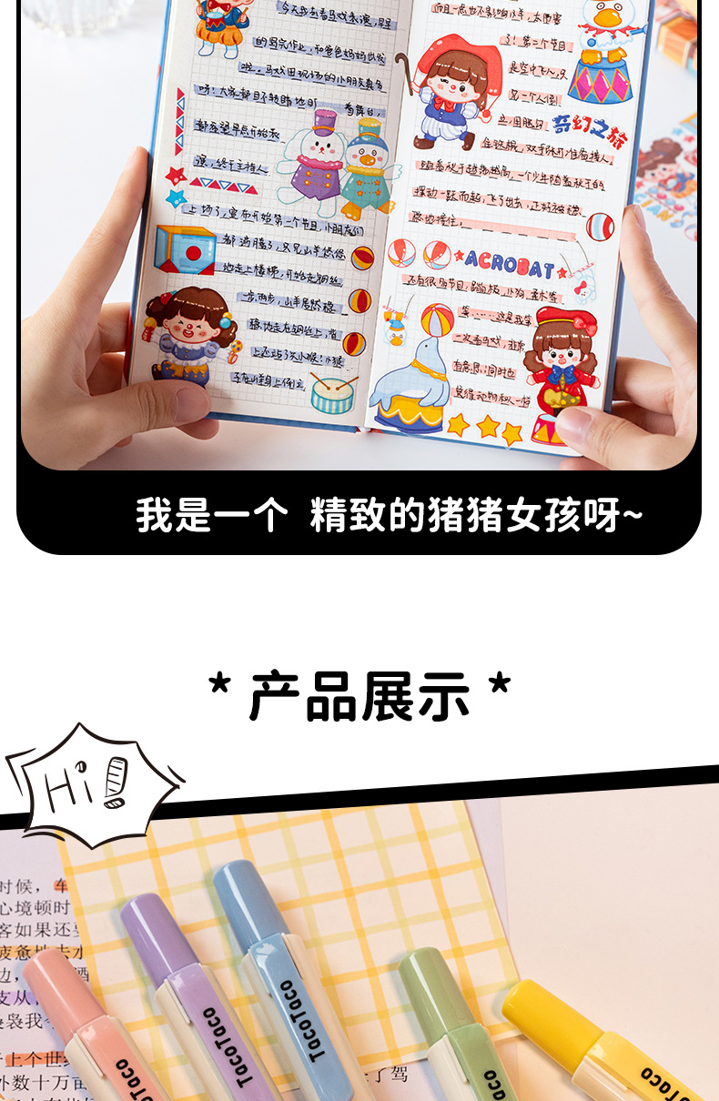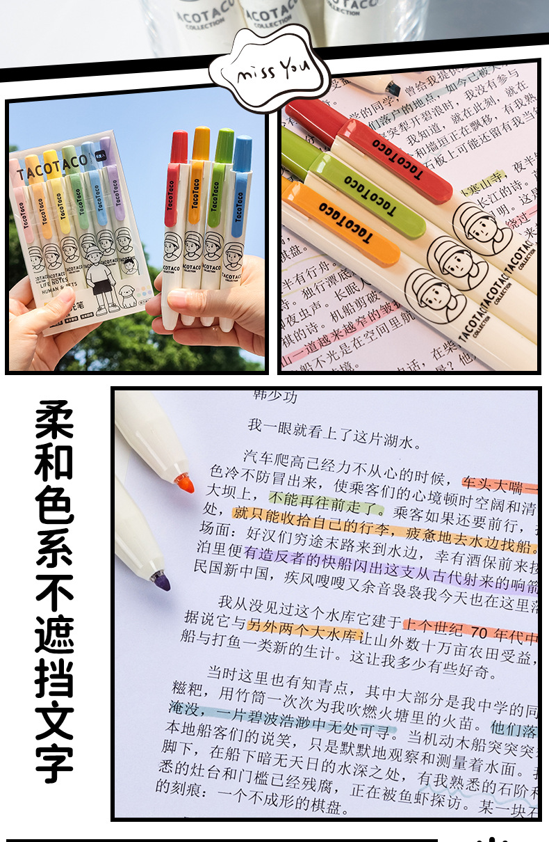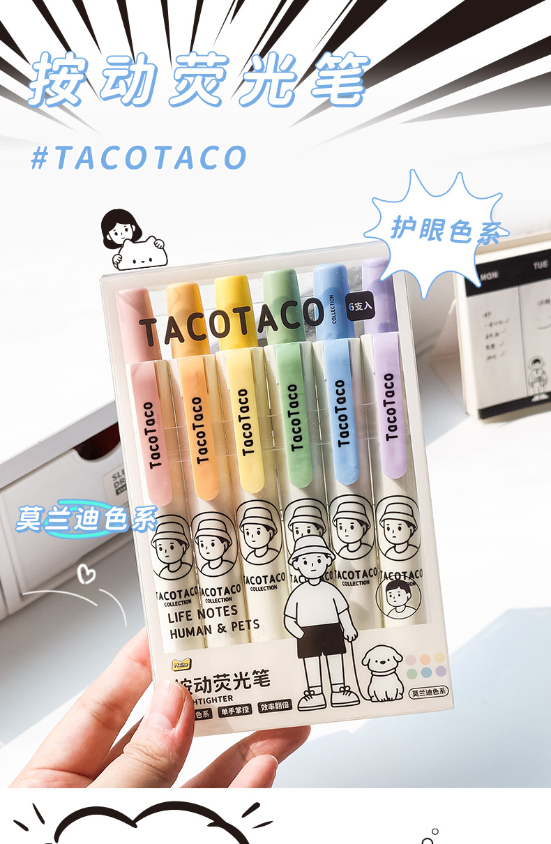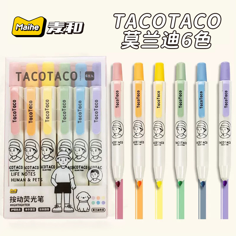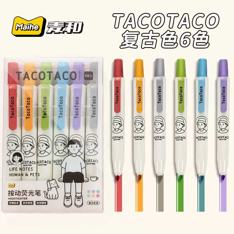TacoTaco Press 하이라이트 눈 보호 Morandi Retro 컬러 부서 학생들은 키 마크 손 계정 컬러 펜을 사용합니다.스토어 가기