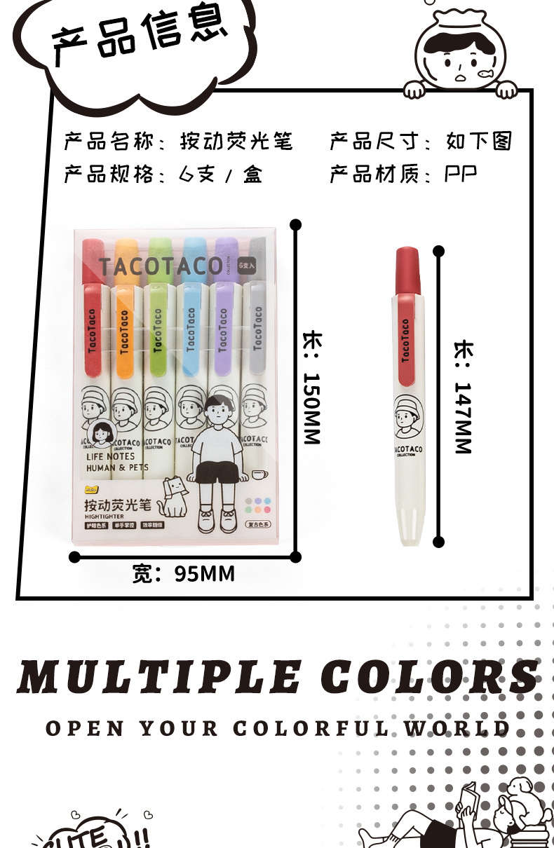 TacoTaco Press 하이라이트 눈 보호 Morandi Retro 컬러 부서 학생들은 키 마크 손 계정 컬러 펜을 사용합니다.