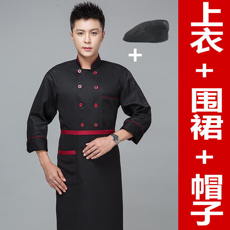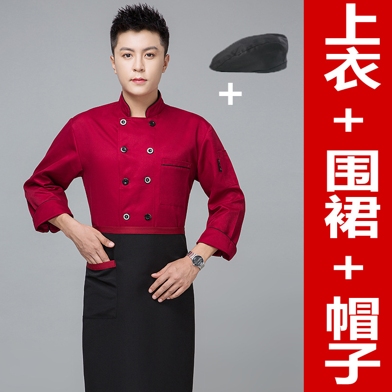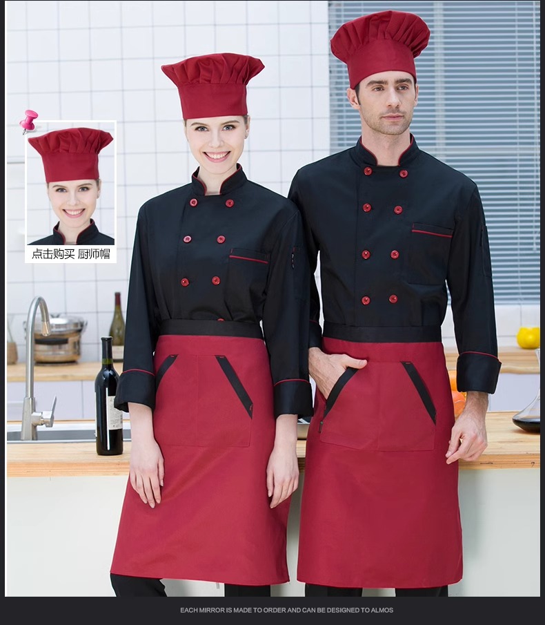 • 빨간색 검정색 테두리가 있는 긴 소매 + 앞치마 + 모자